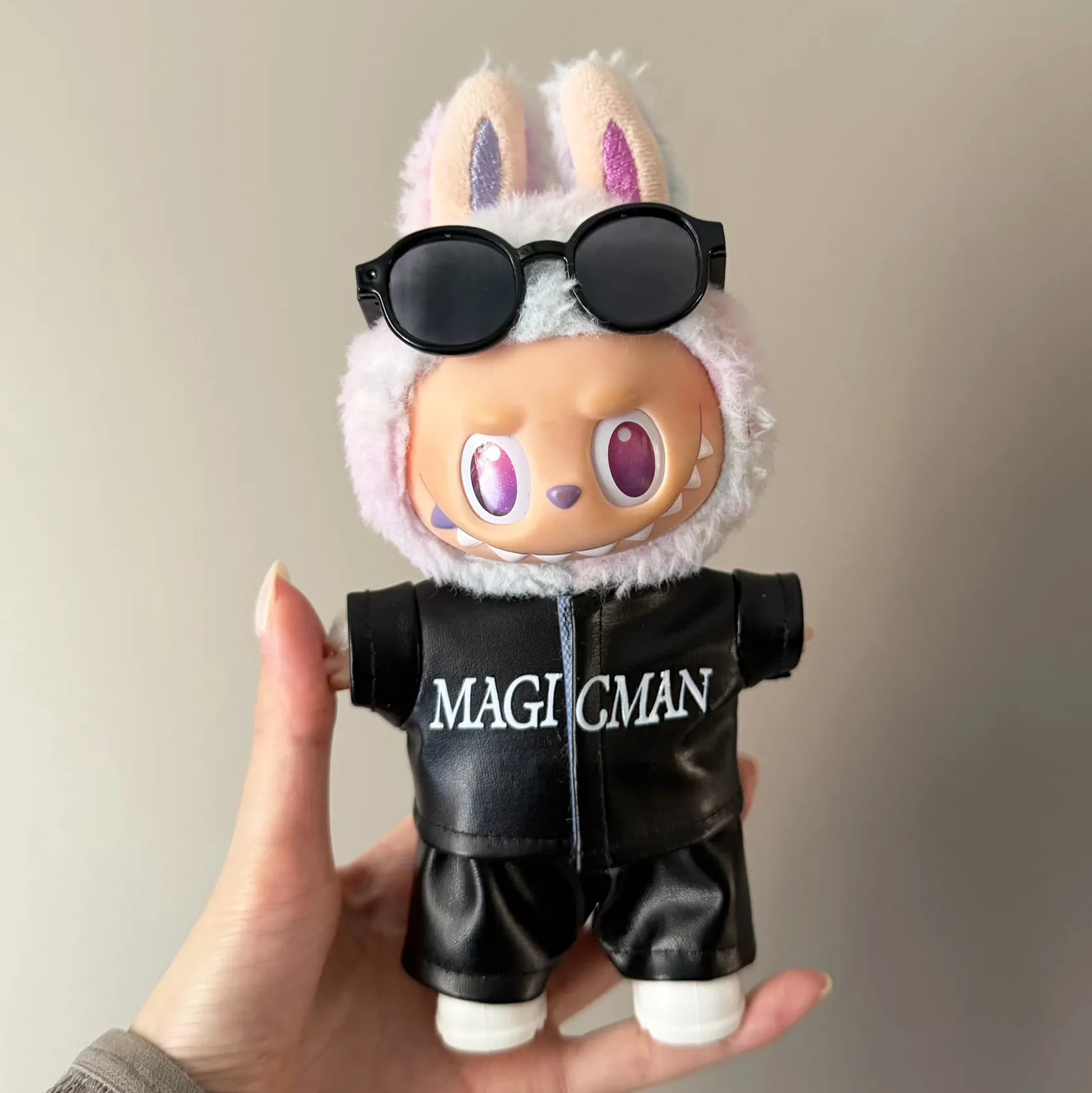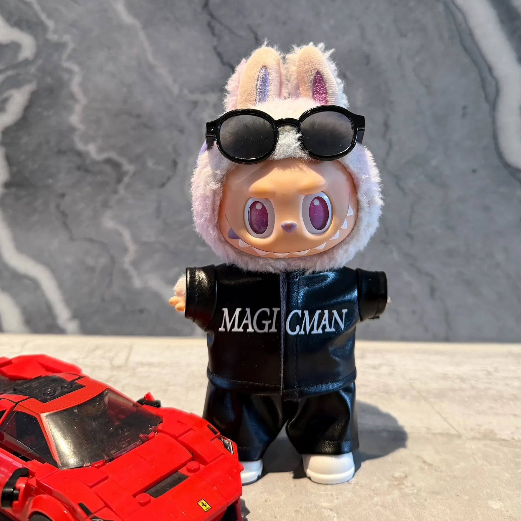 超かっこいい!Jackson Wangライク labubu ラブブ レザーセットアップ 17cm ジャケット+パンツ+サングラス+シューズ 本格派アイドルルック ストリート系 アイドル風