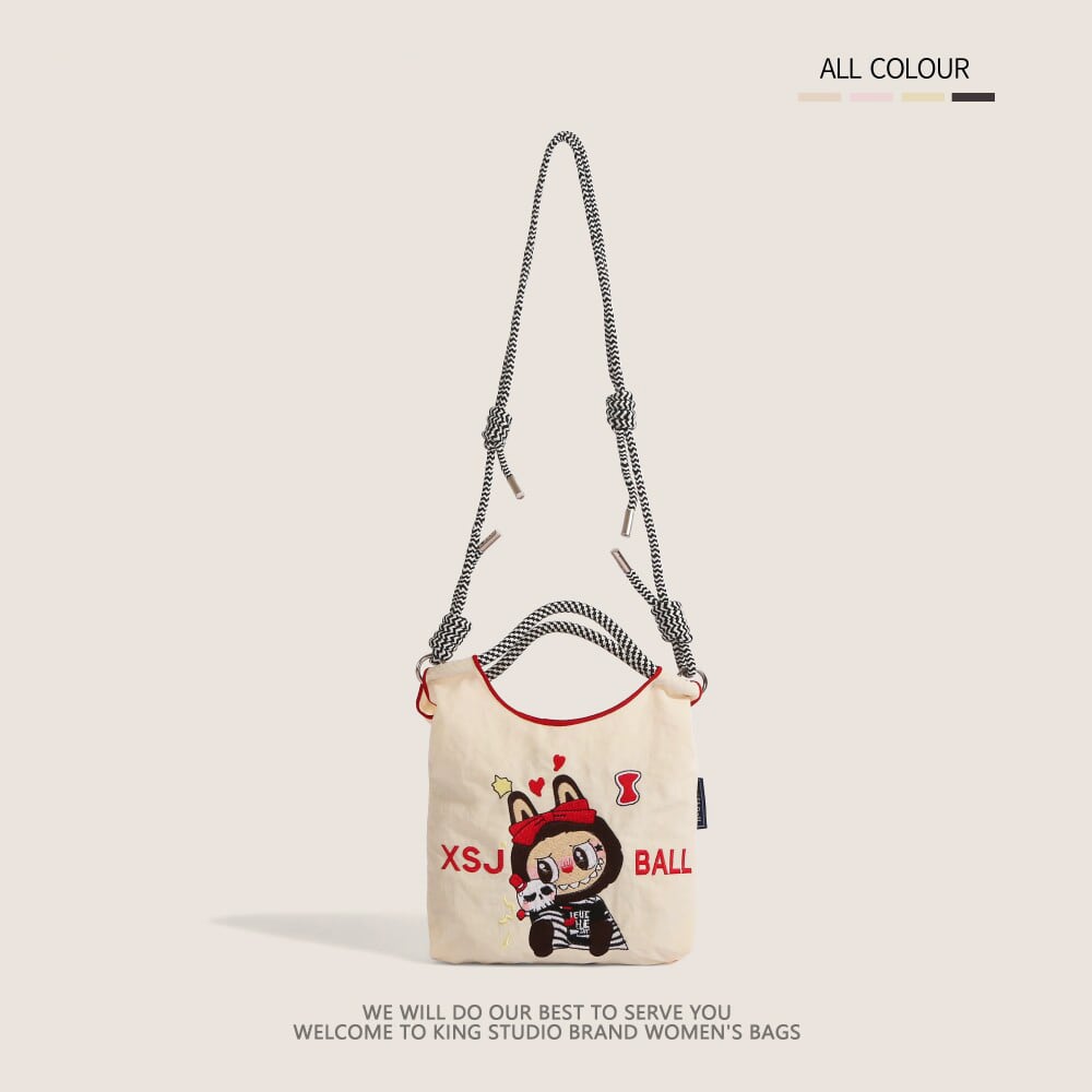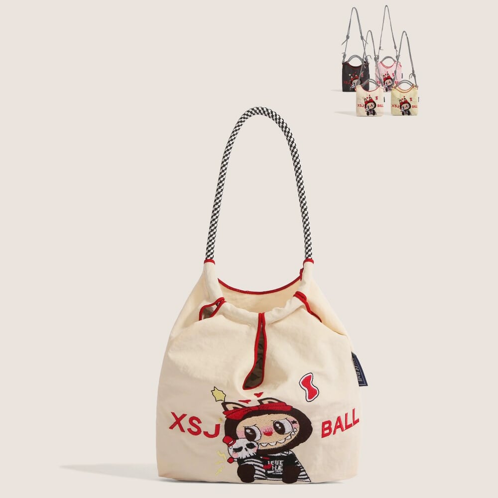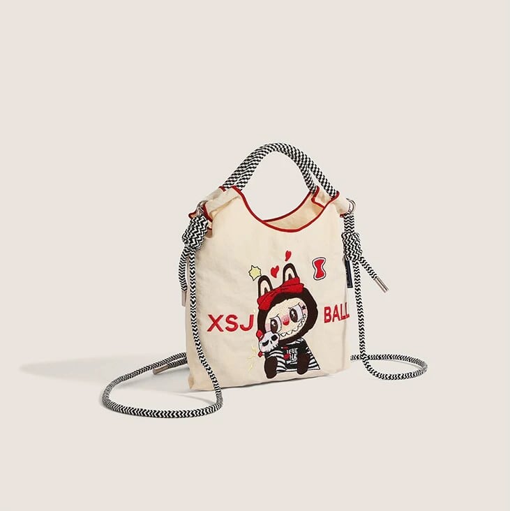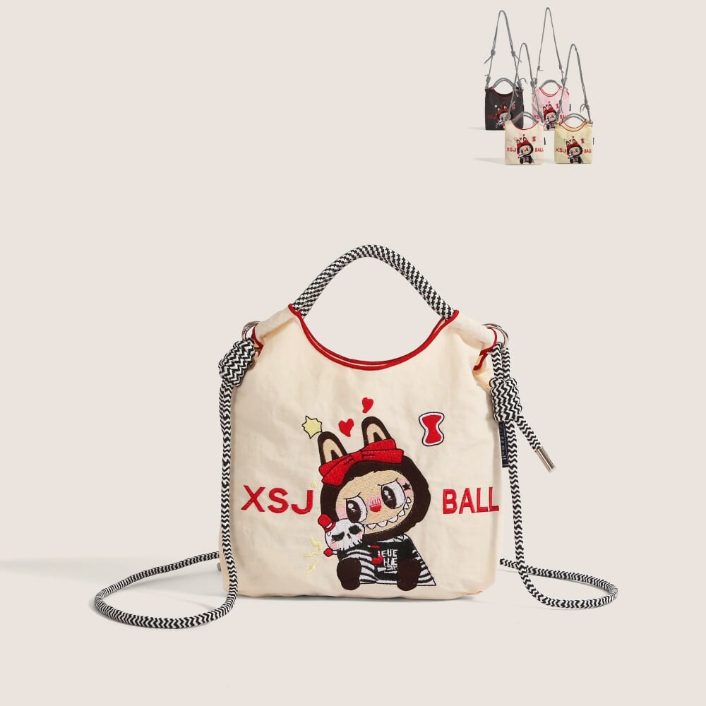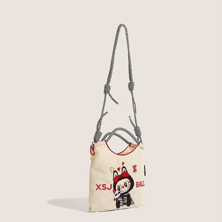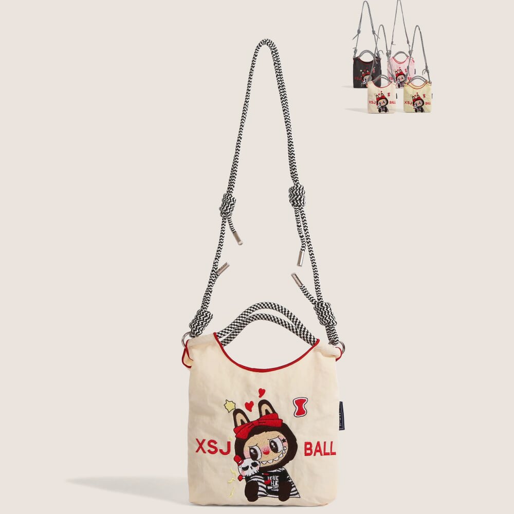 かわいいラブブ刺繍がポイント!エコバッグ 軽量で4色から選べる 手提げにも斜めがけにもなる便利な2WAY仕様 スマホも入る