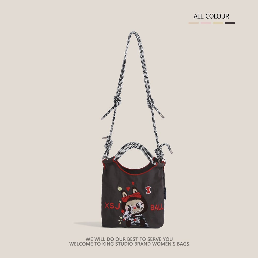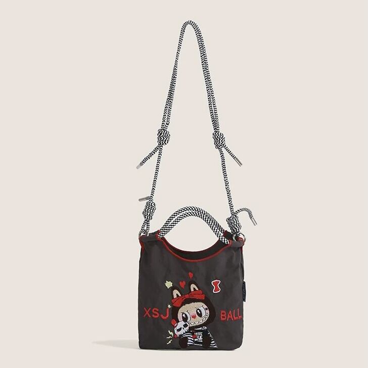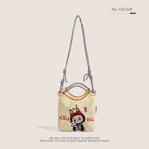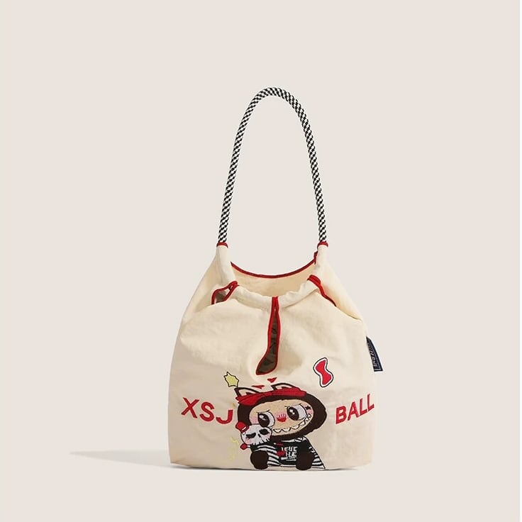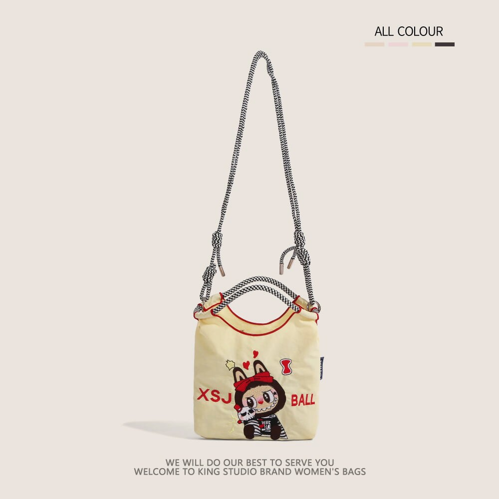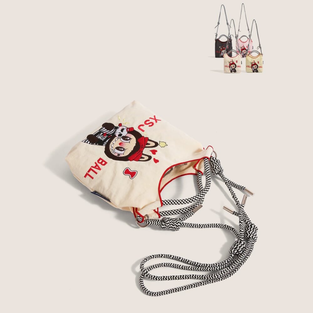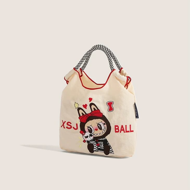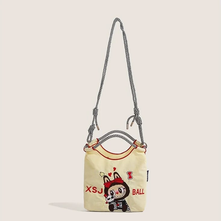 かわいいラブブ刺繍がポイント!エコバッグ 軽量で4色から選べる 手提げにも斜めがけにもなる便利な2WAY仕様 スマホも入る