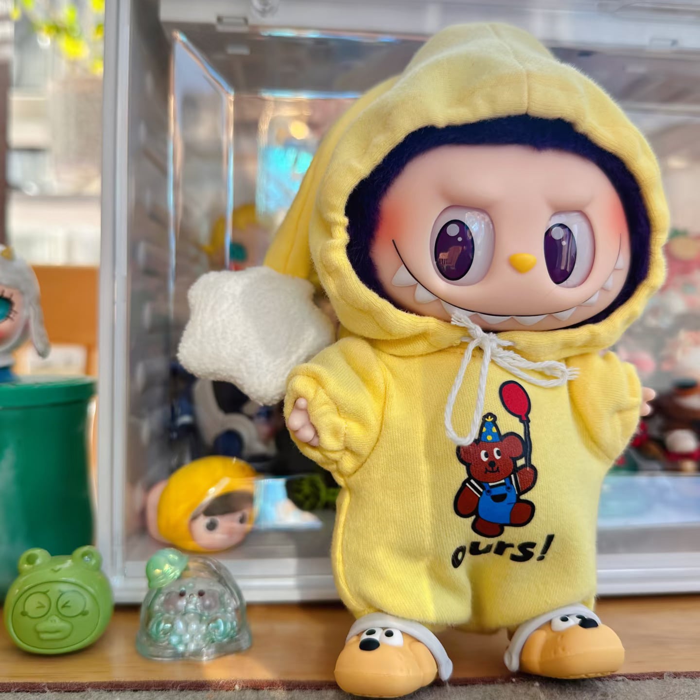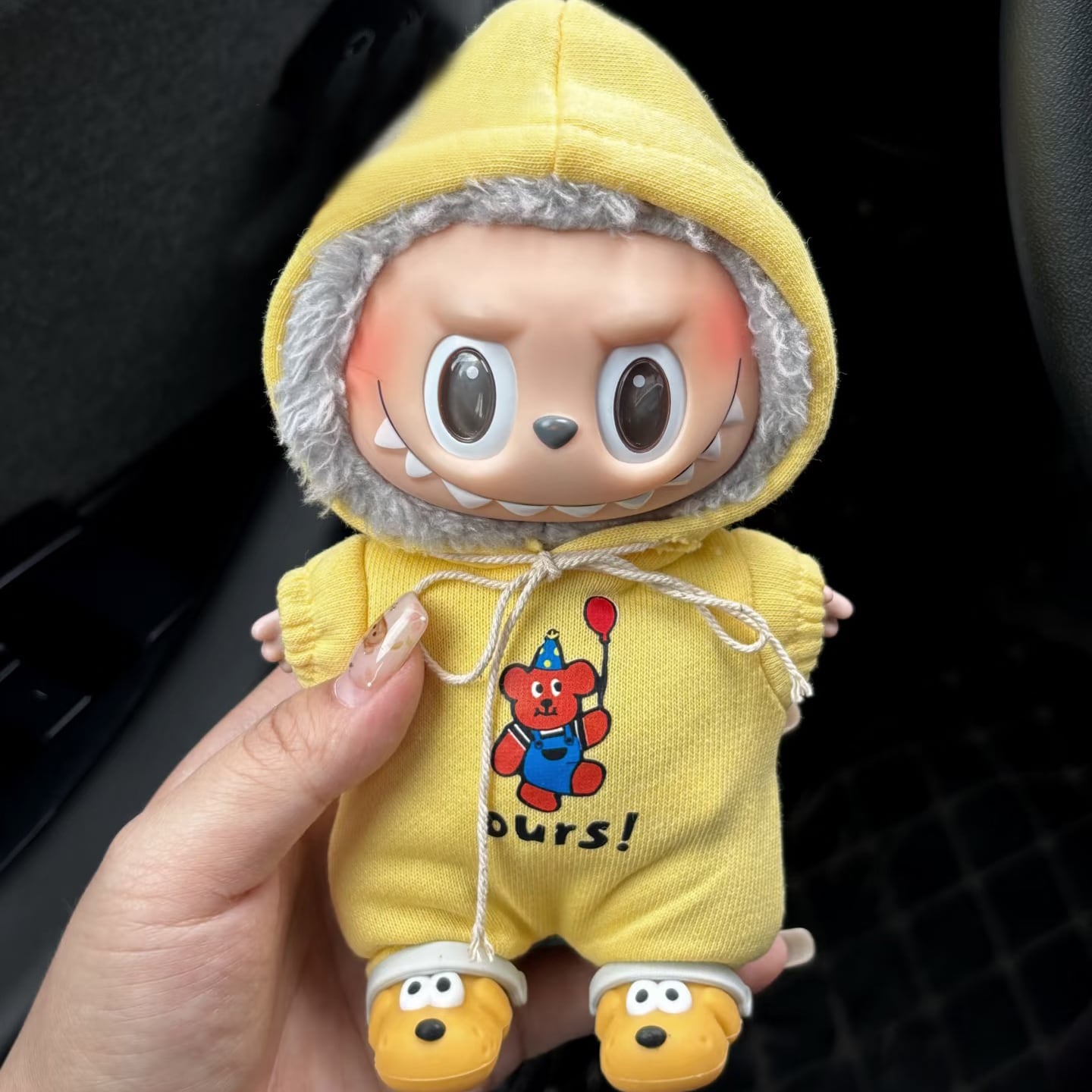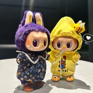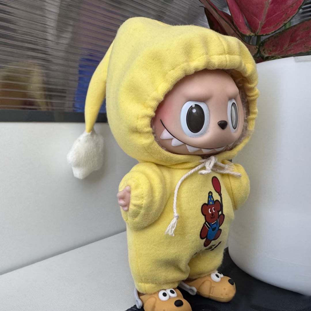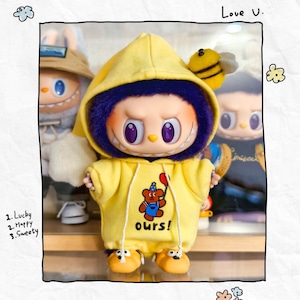 全身おやすみコーデ 可愛すぎる♡labubu ラブブ17cm 用 くまさんフードつなぎセット ハチのヘアアクセ&シューズ付き 星 全身すっぽり 可愛い ドール服