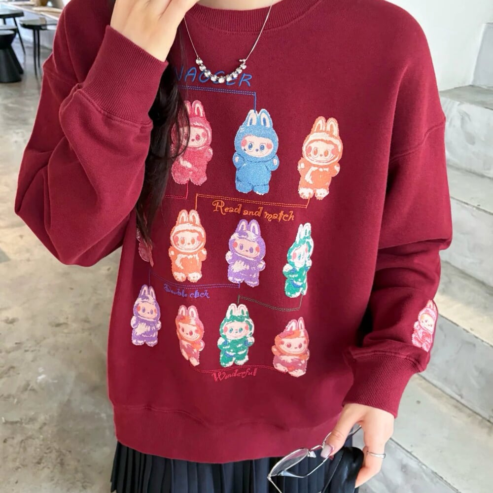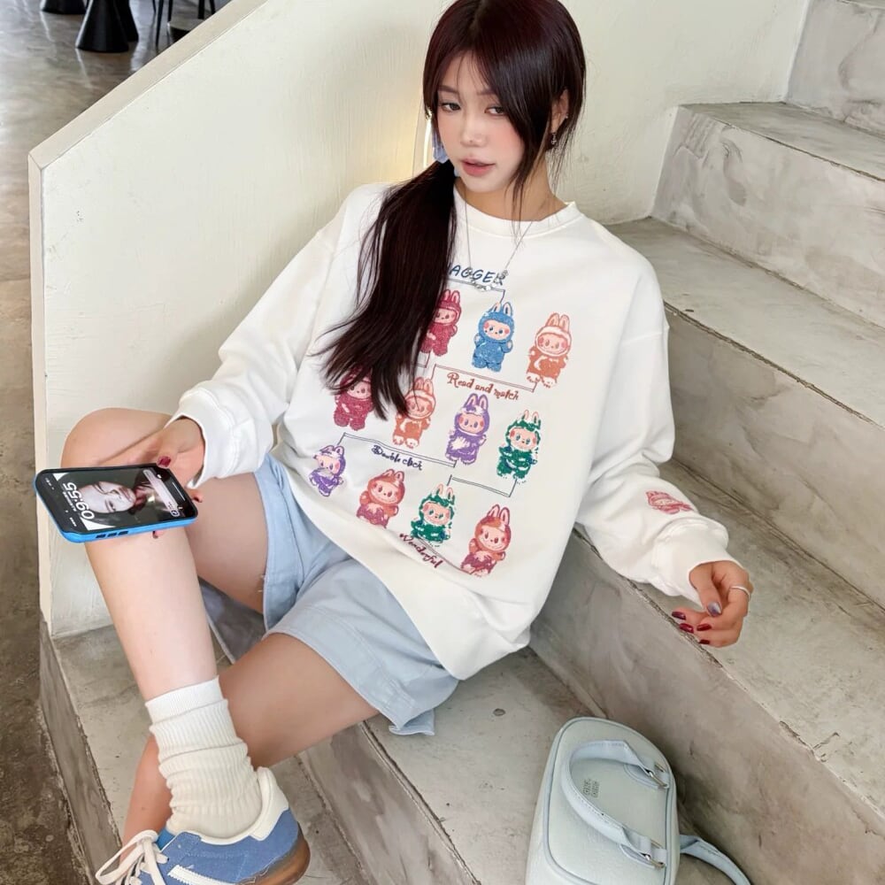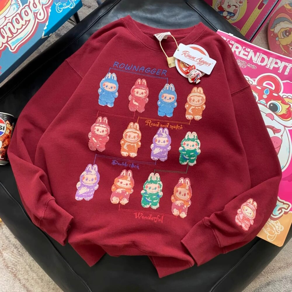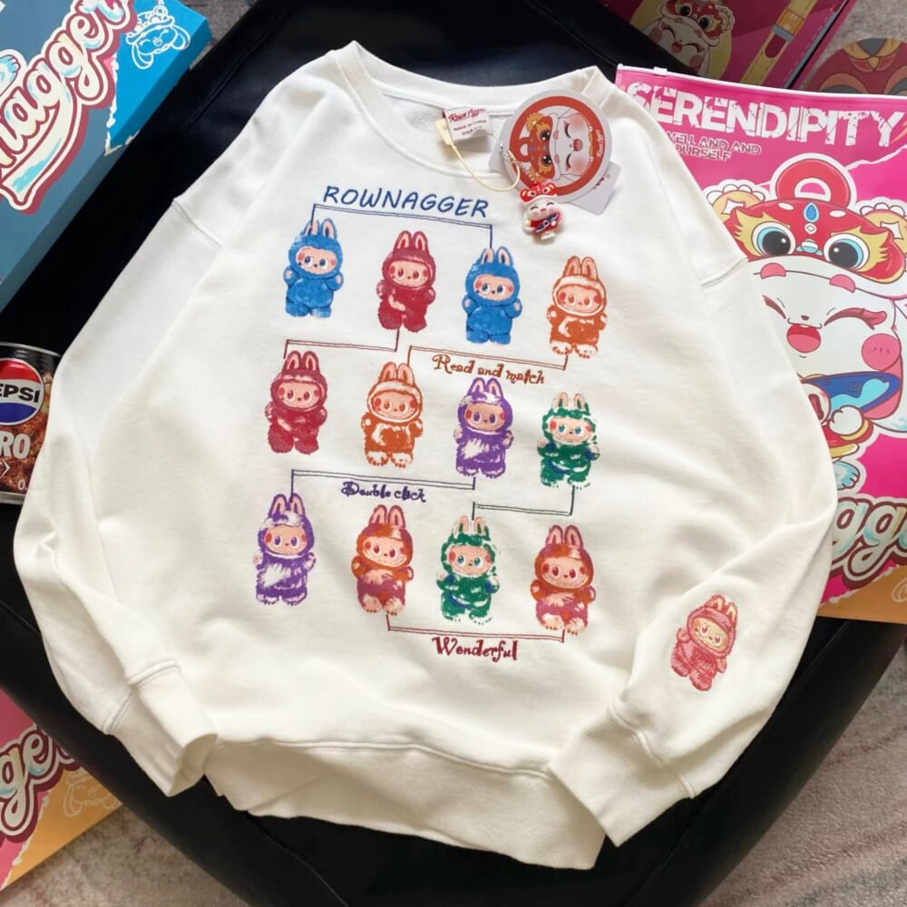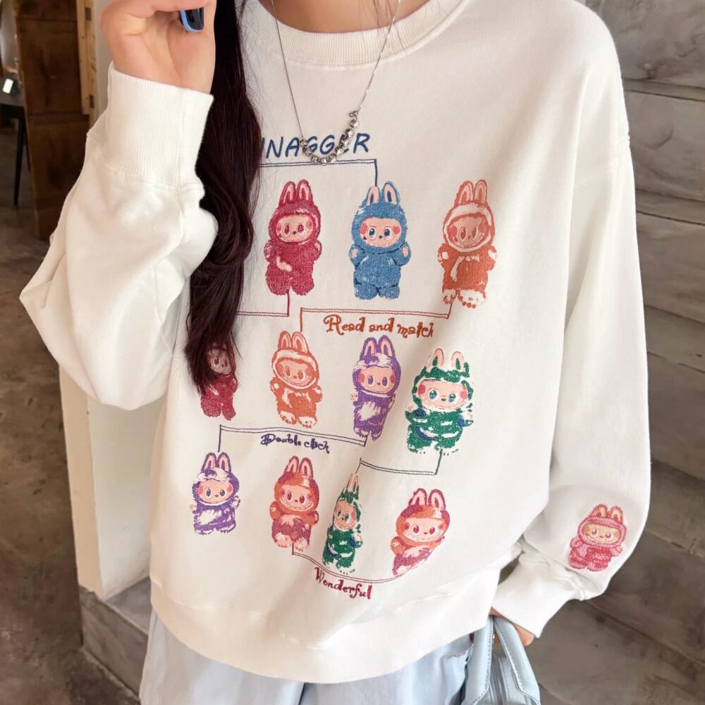 Labubu スウェット 可愛いのにオシャレ!Rownaggerコラボ 320g 厚手 綿100% パイル ユニセックス ドロップショルダー ビッグシルエット ストレスフリー 着心地抜群