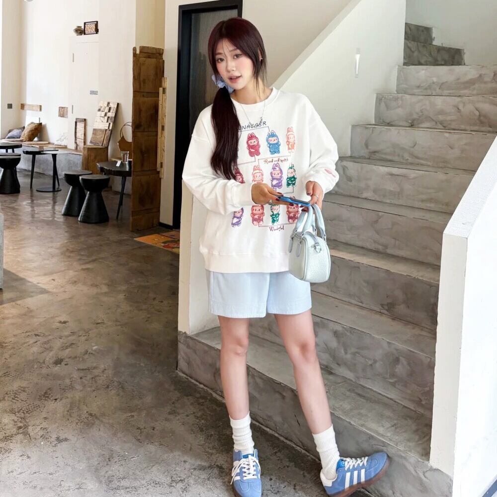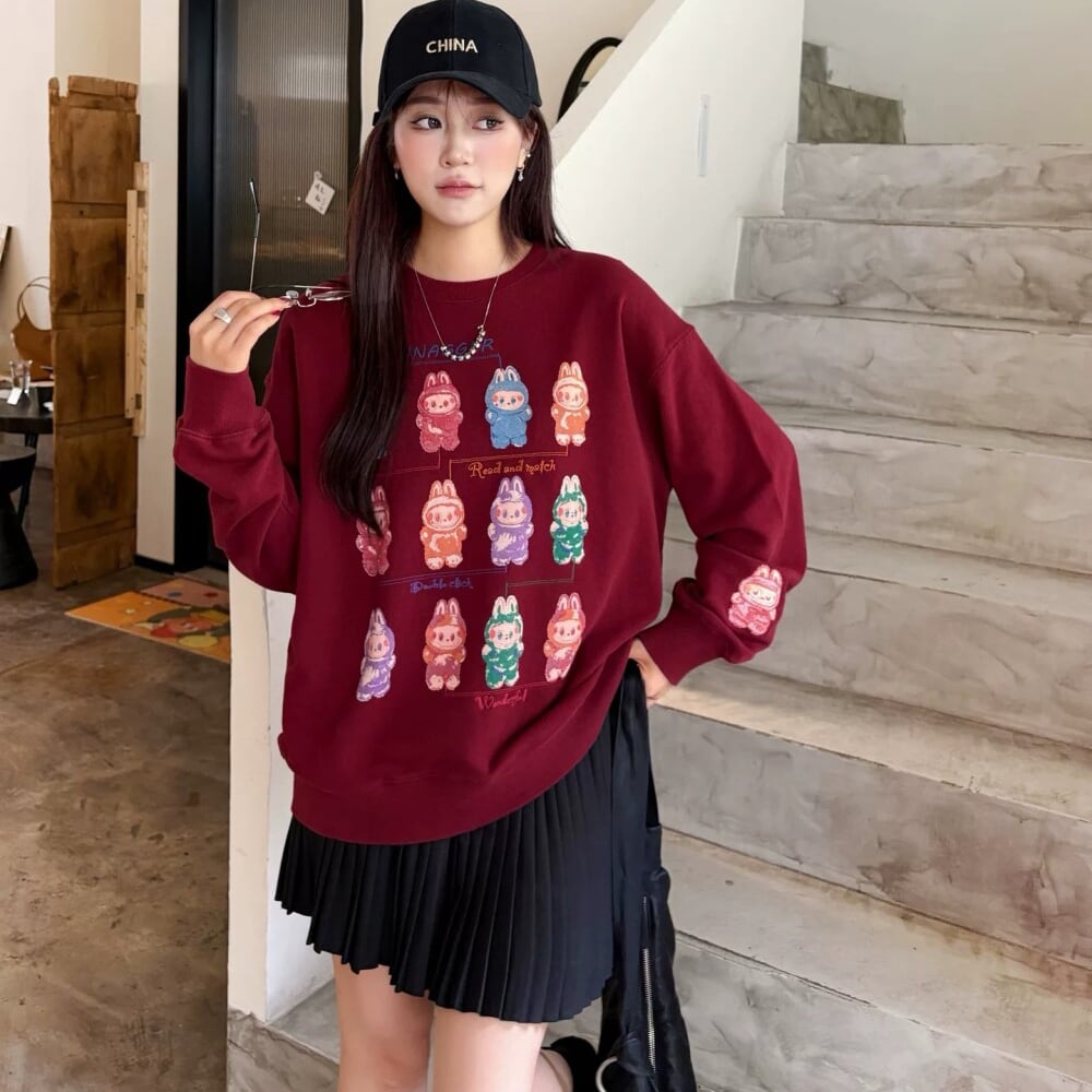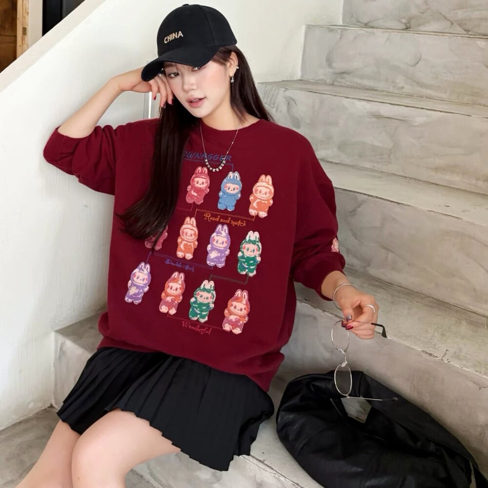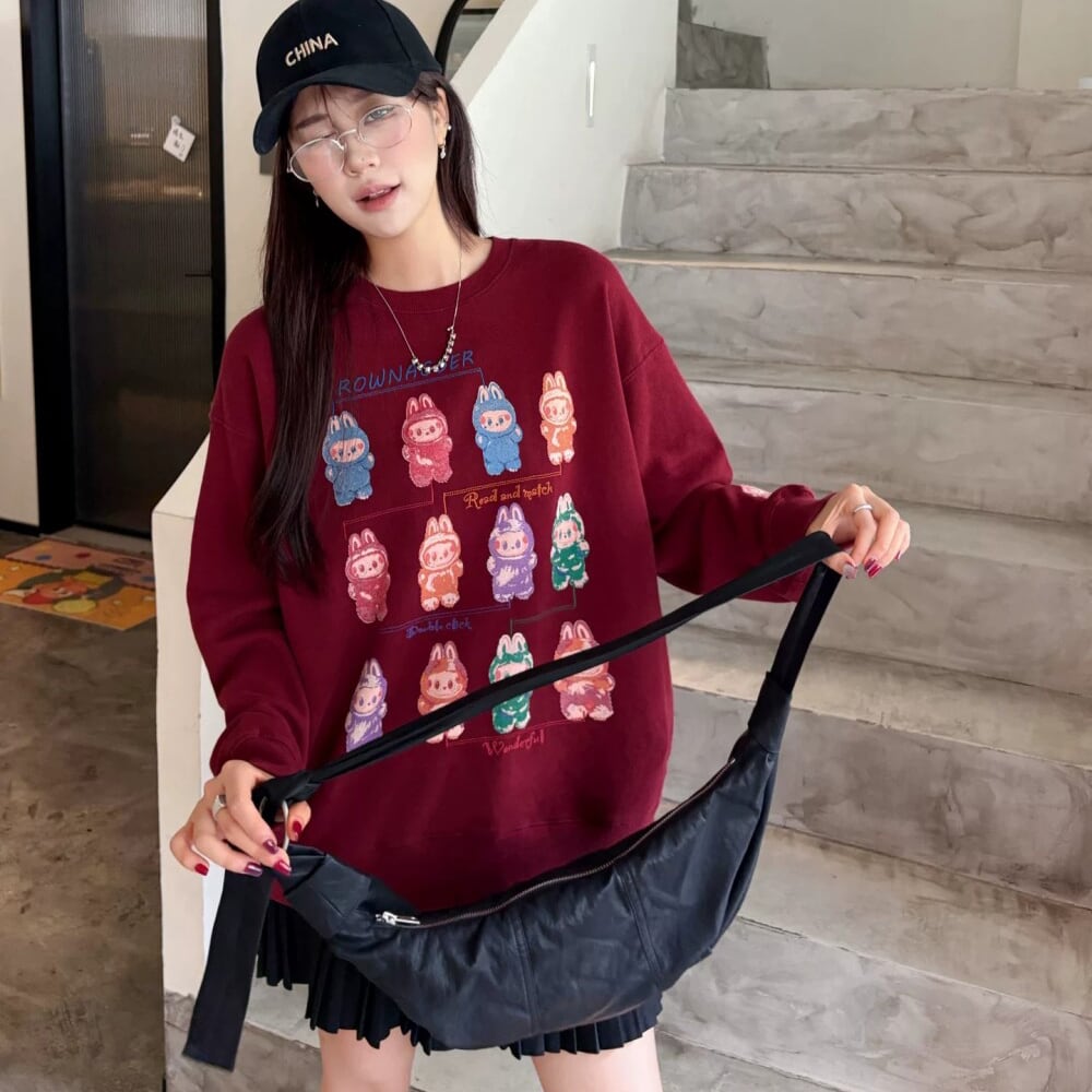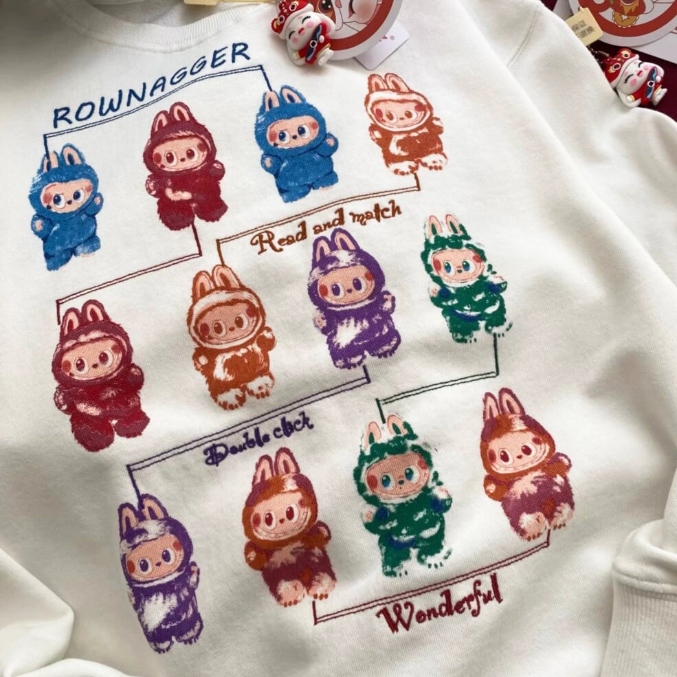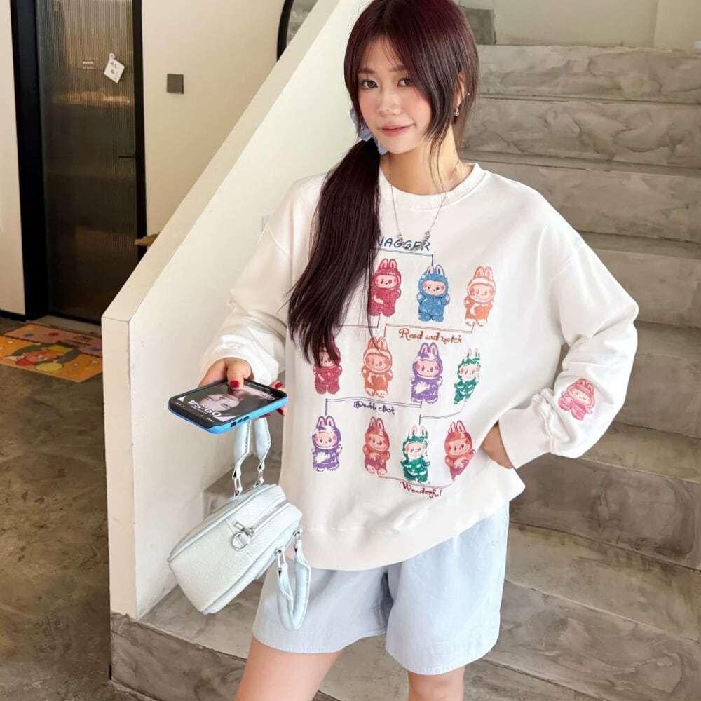 Labubu スウェット 可愛いのにオシャレ!Rownaggerコラボ 320g 厚手 綿100% パイル ユニセックス ドロップショルダー ビッグシルエット ストレスフリー 着心地抜群