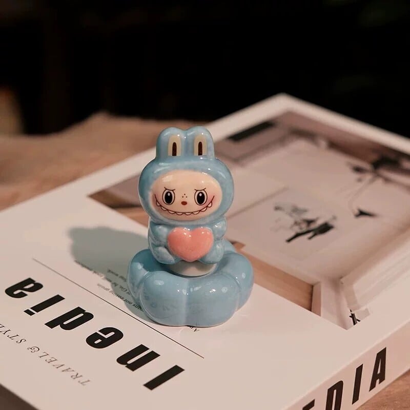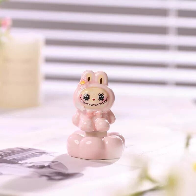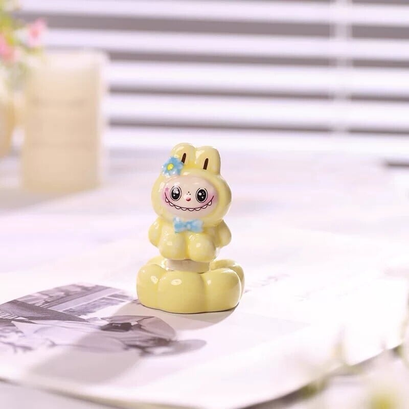 くるくる回って癒される♡ 景徳鎮焼のラブブ回転置物 陶器製 オフィスや書斎にぴったりな陶器製フィギュア なめらかで上質な手触り プレゼントにも