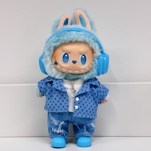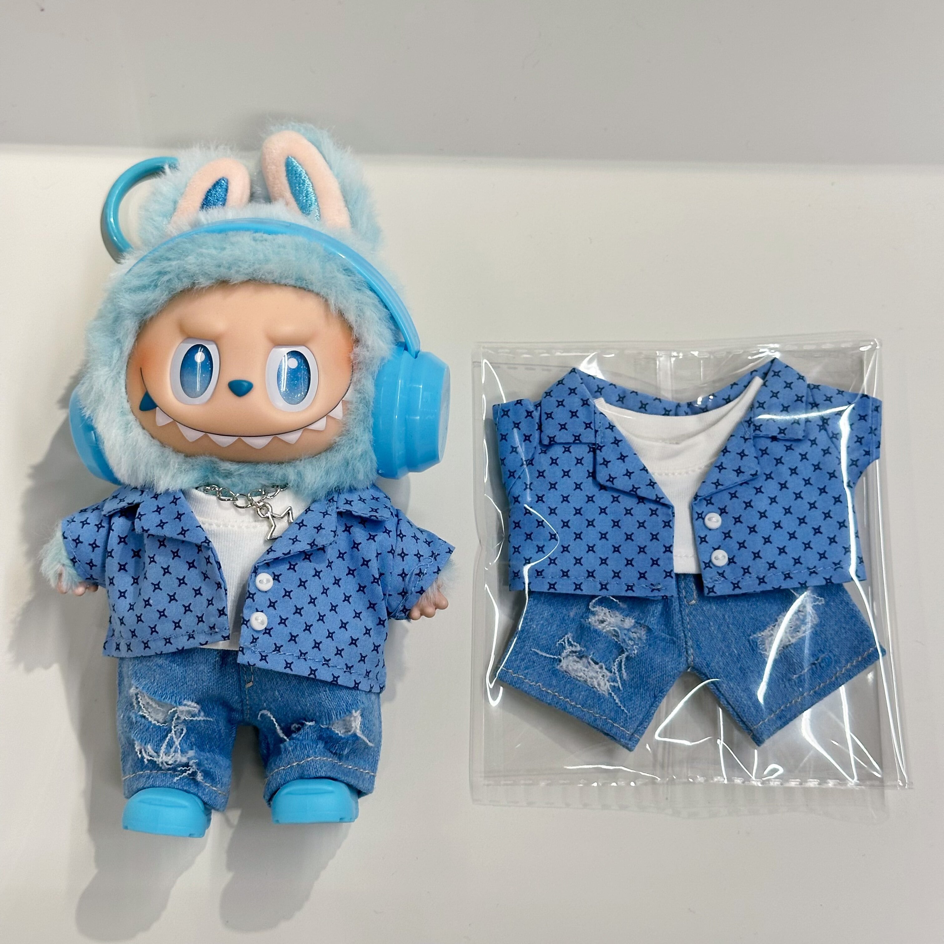 星のラッキーブルーが可愛い☆ the monsters 17cmラブブのためのラッキーブルーコーデ スター柄フルセット 靴&ネックレス込み カジュアルだけどスタイリッシュな着せ替え衣装