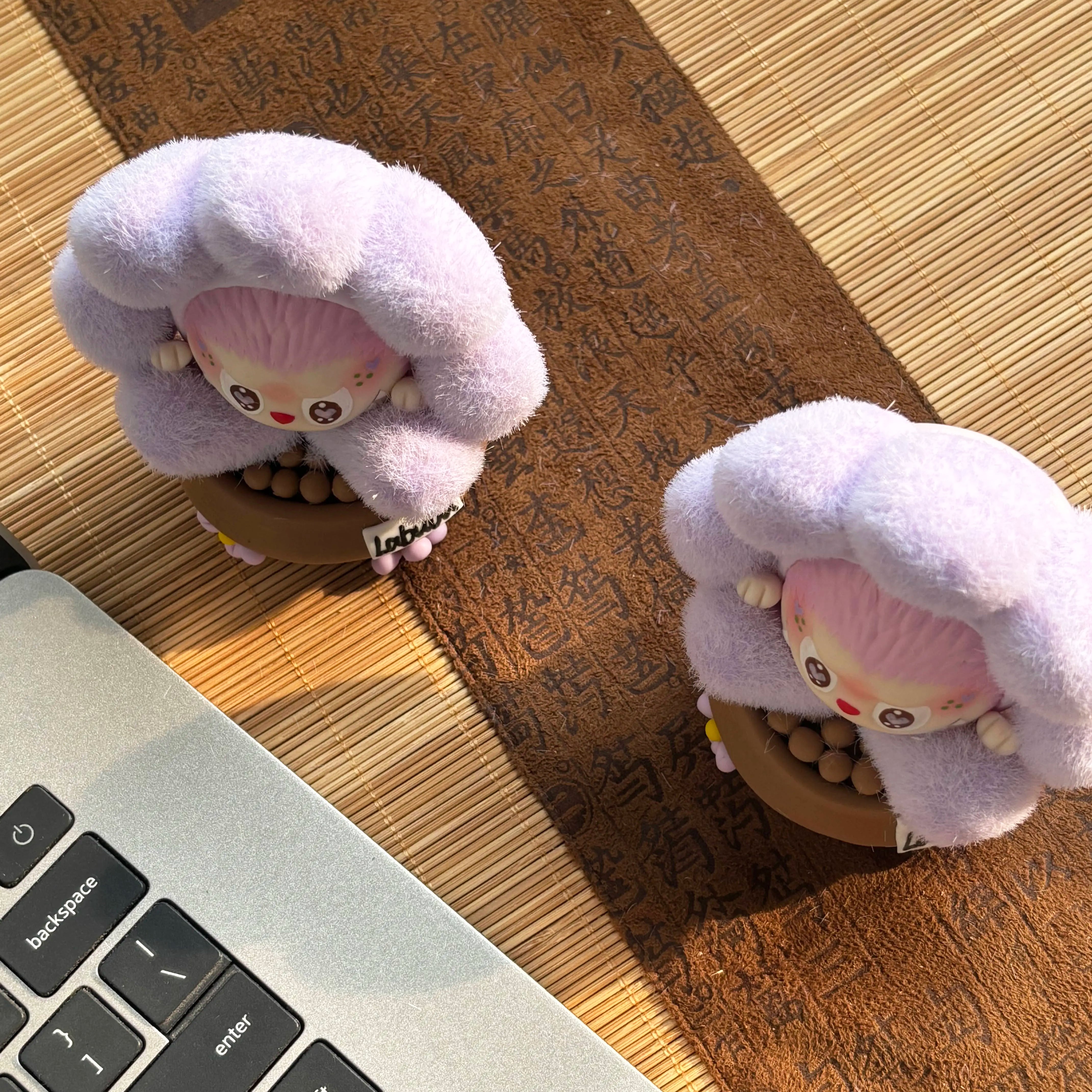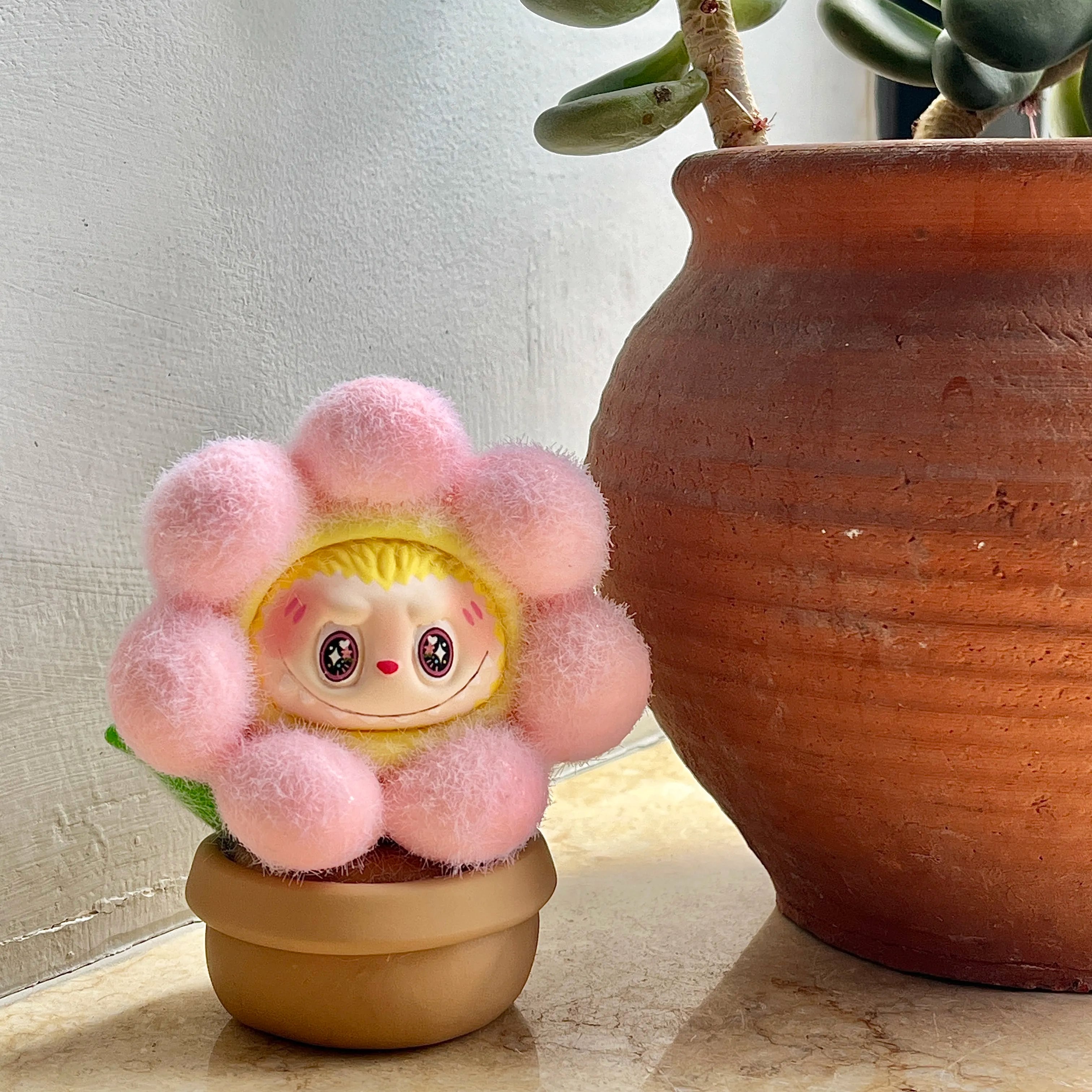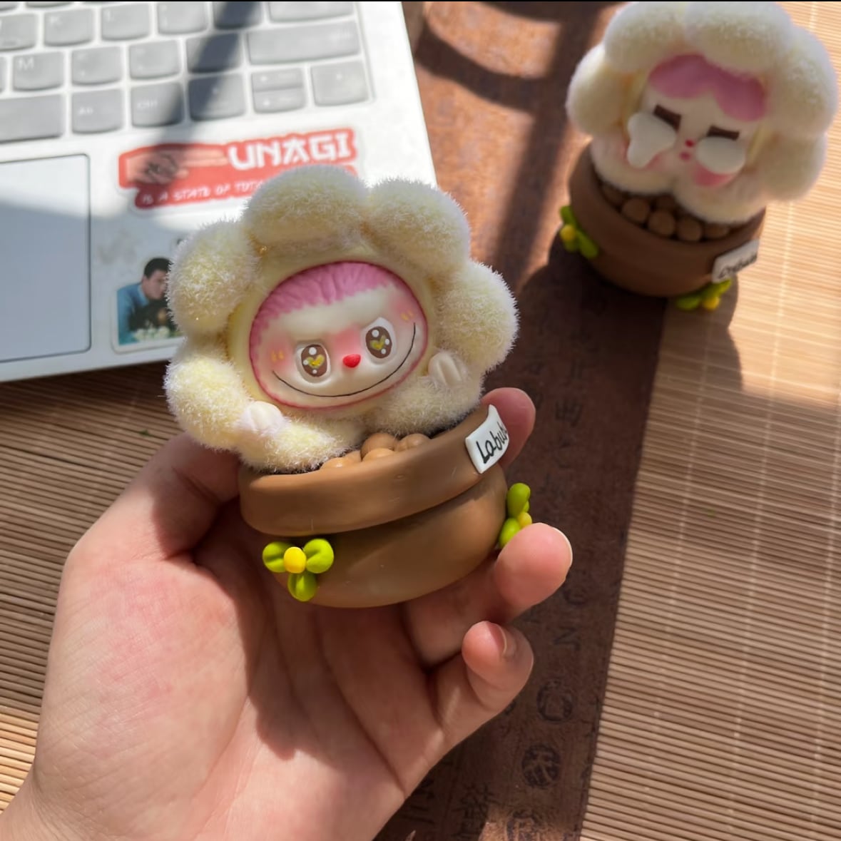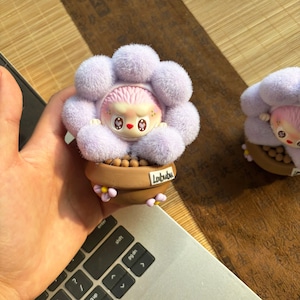 思わず触りたくなる!超可愛い 癒し系 labubu ラブブ 植毛 ポットフィギュア もこもこ質感 癒しのミニ観葉風 可愛いインテリア 4色展開 一点もの
