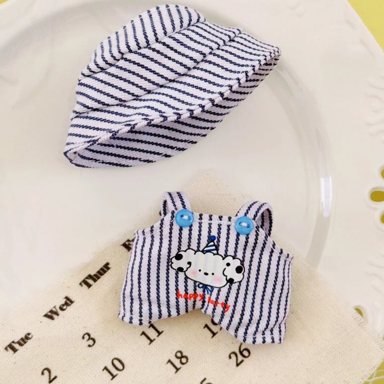 【予約販売】爽やか 涼しげ 可愛い 春夏コーデにぴったり!4.0 ミニラブブ ドール服 10cm 晴れ空ストライプ わんちゃん サロペットセット 爽やか 可愛い 着せ替え衣装