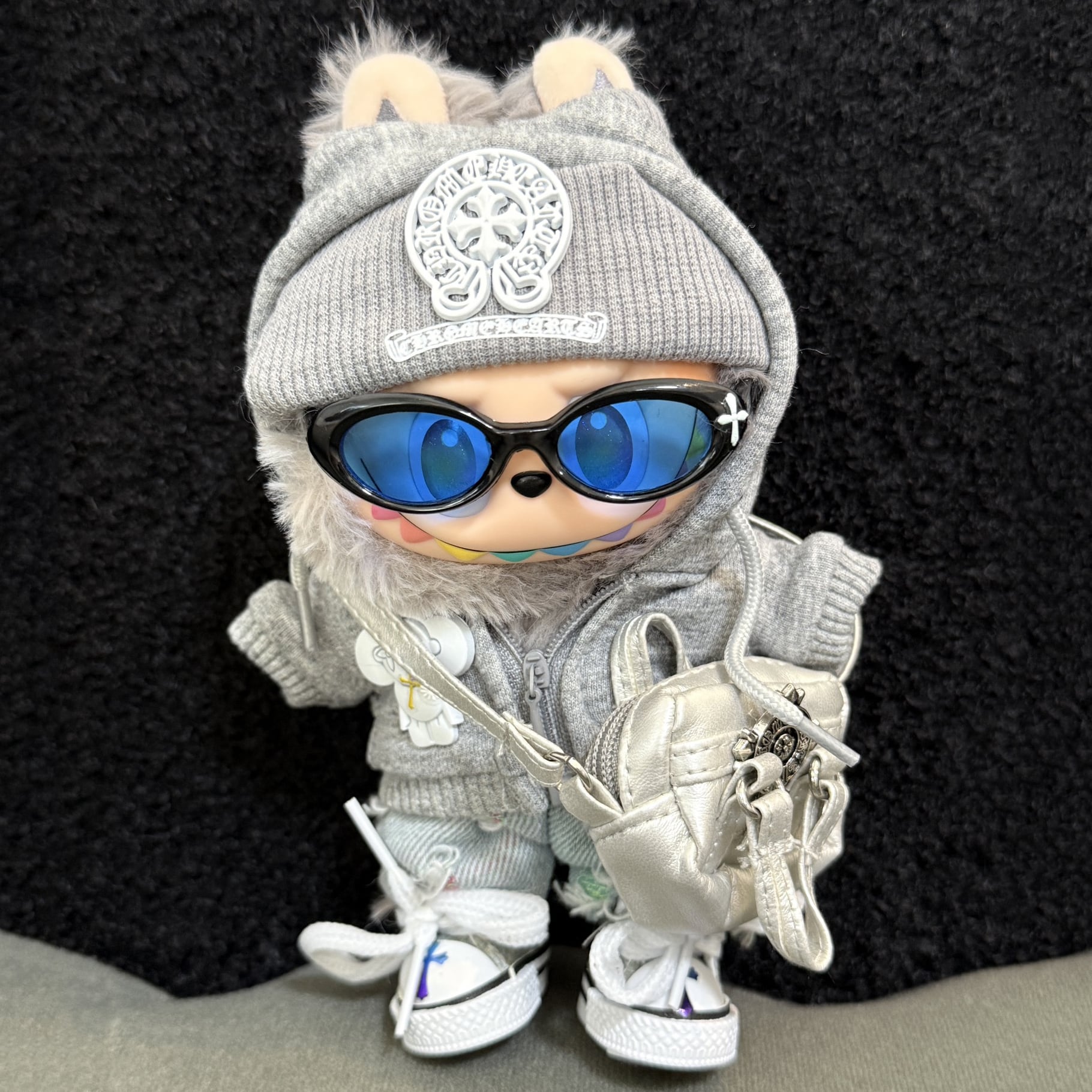 グレー系 カジュアルスタイル!おしゃれさんにぴったり 17cmラブブ専用 グレーカジュアルコーデ バッグ付きフルセット こだわりの品質