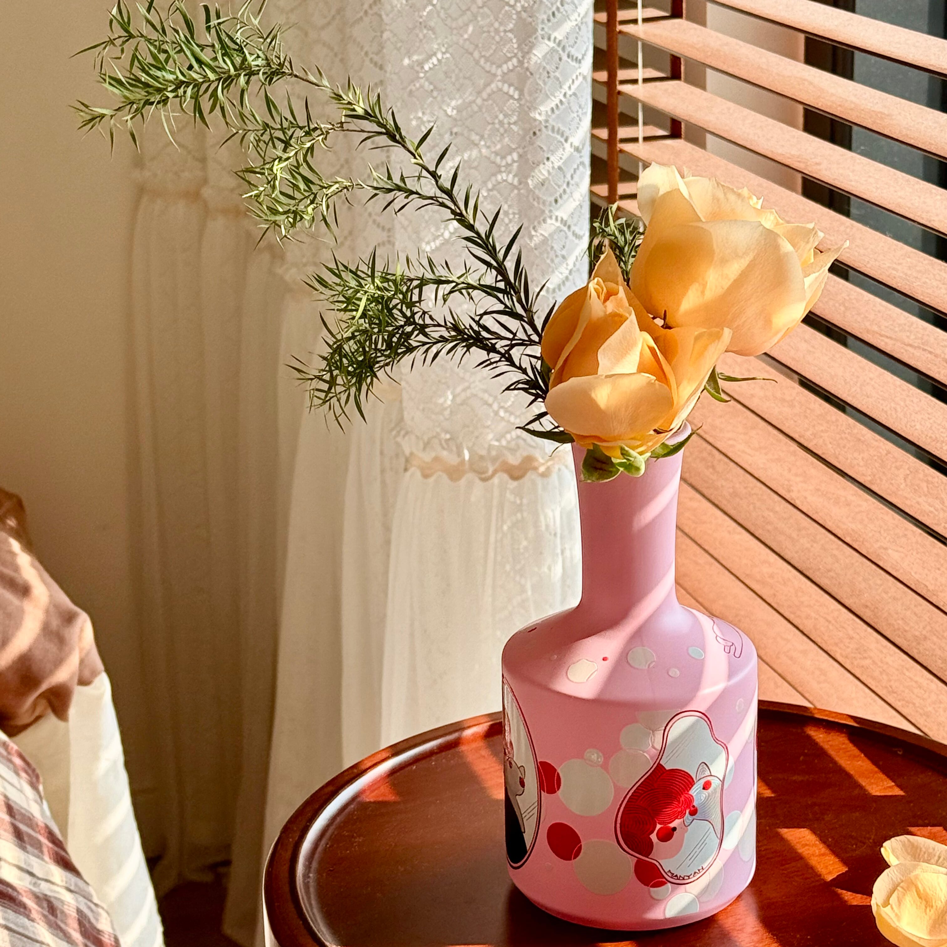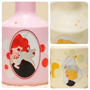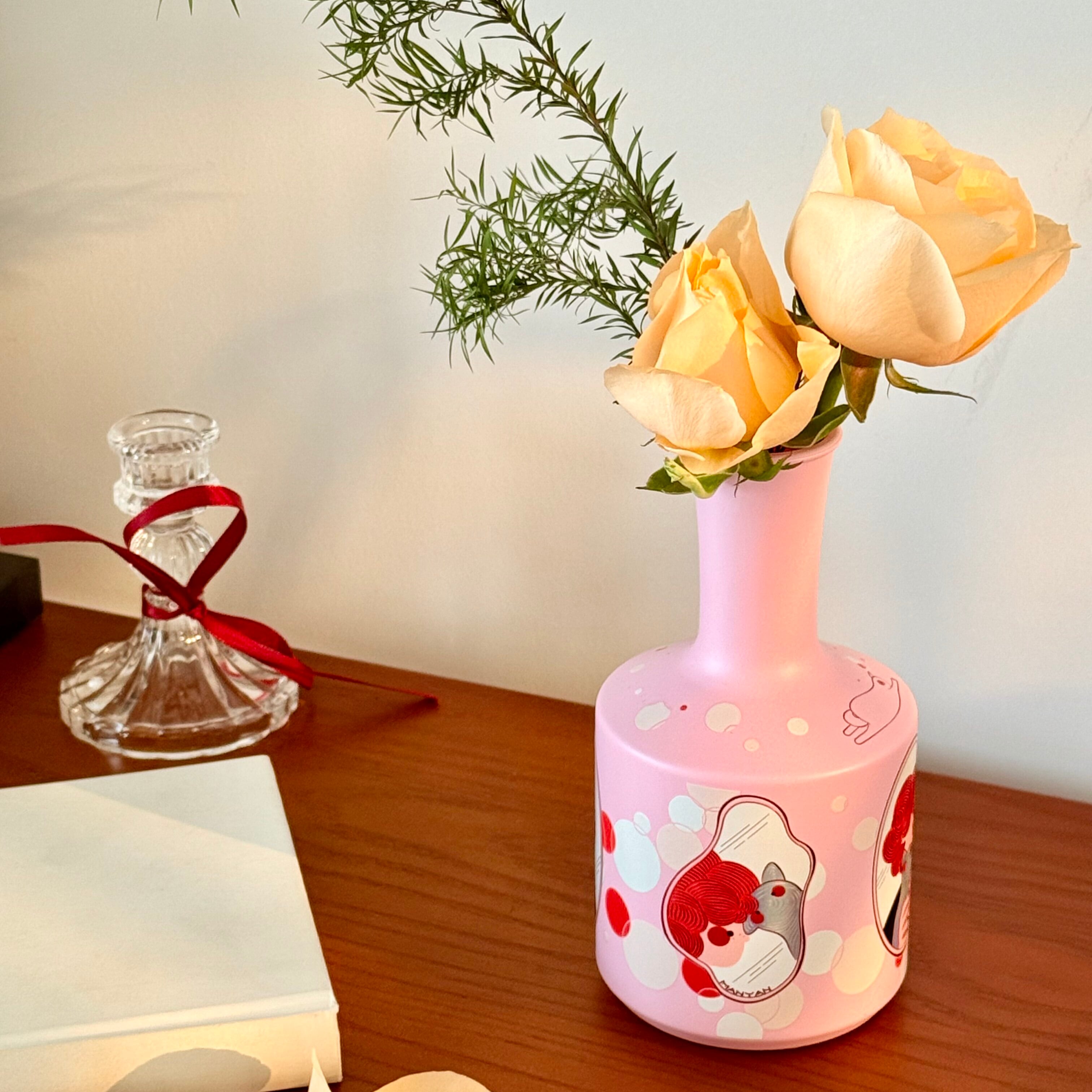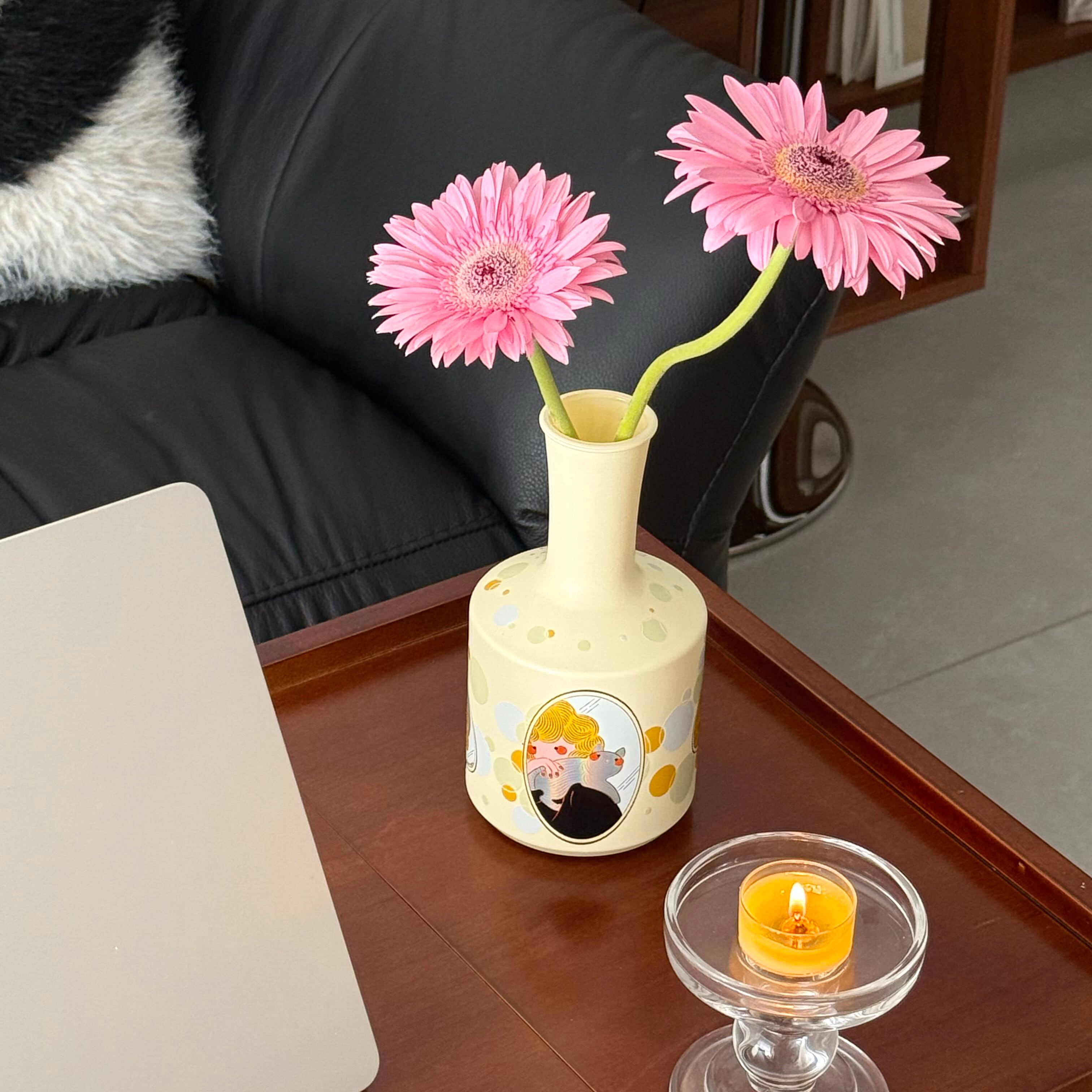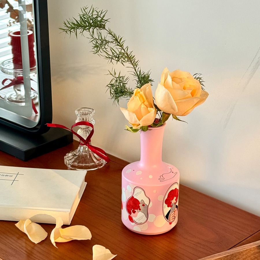 【商品名】アーティストデザイン 猫と花瓶のイラストアート おしゃれで可愛い陶器 花瓶