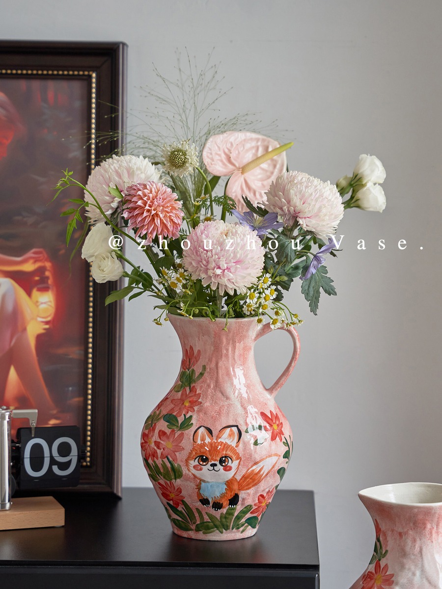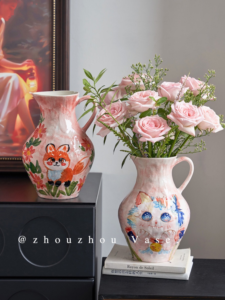 インスタ映えする可愛い動物花瓶♪ 景德鎮手描き 癒し系萌えペット陶器 リビング・ダイニングのアクセントに
