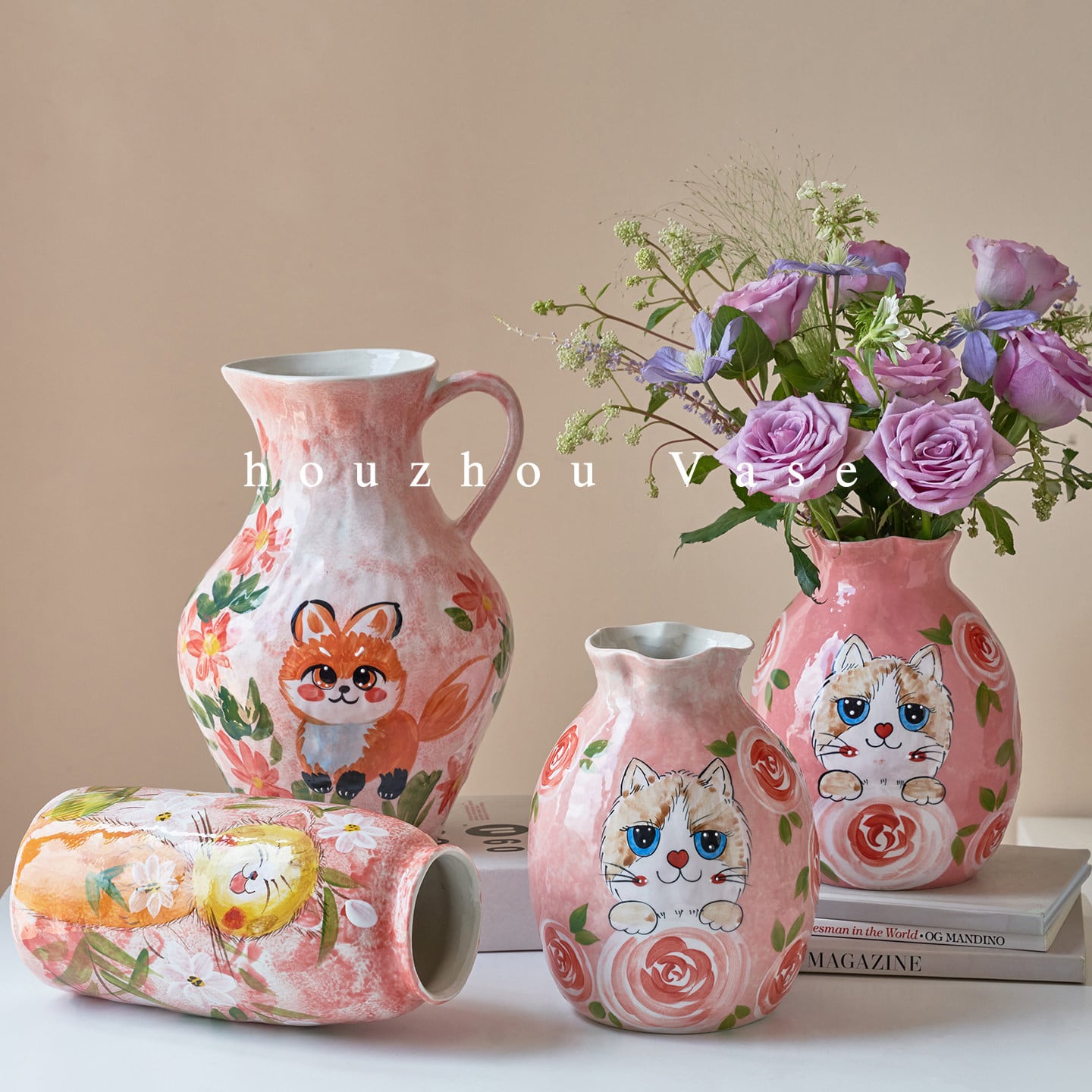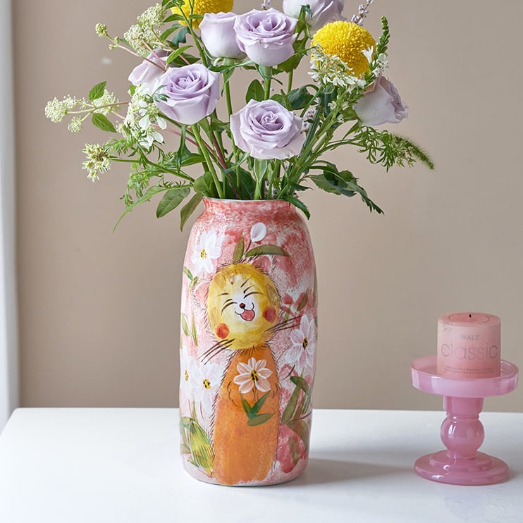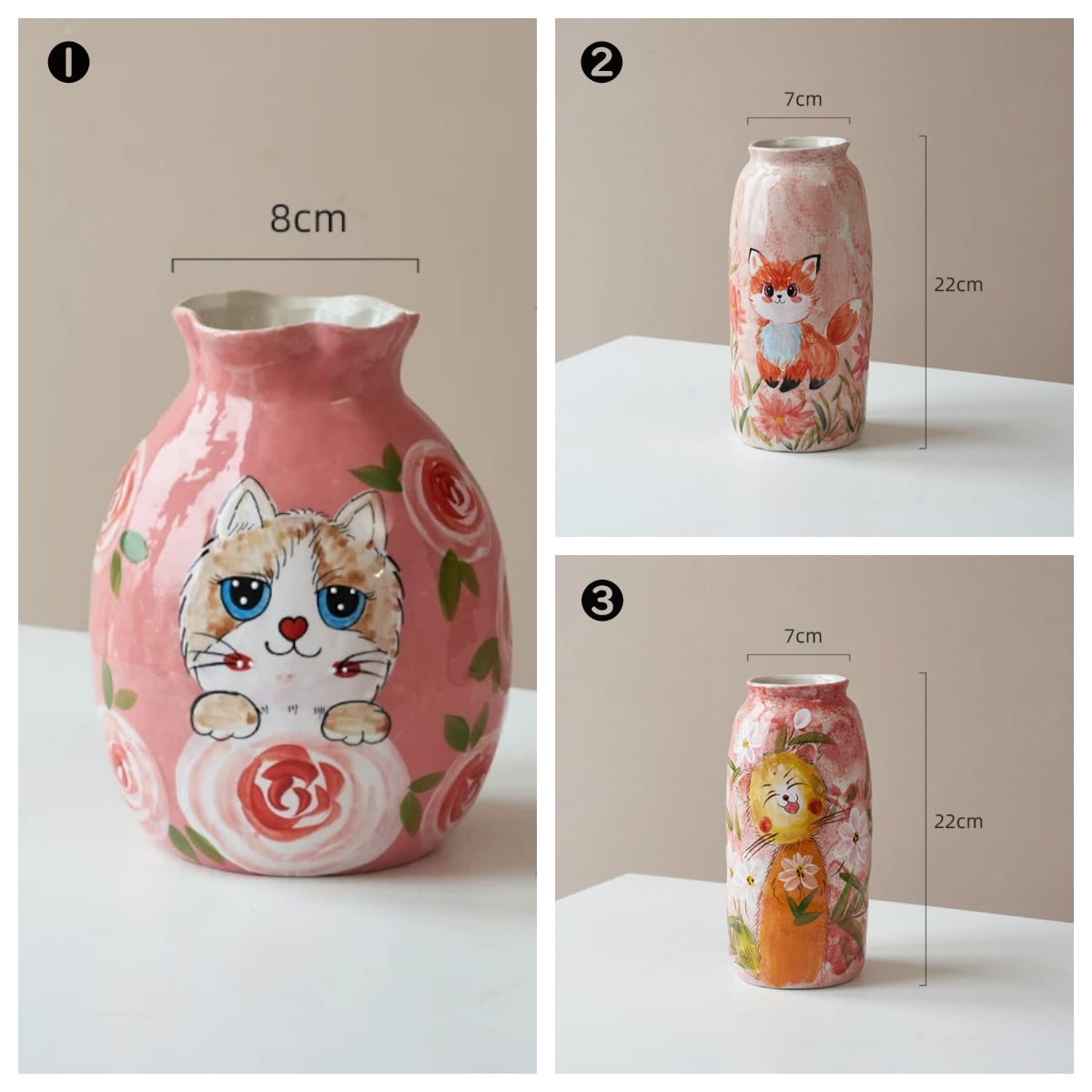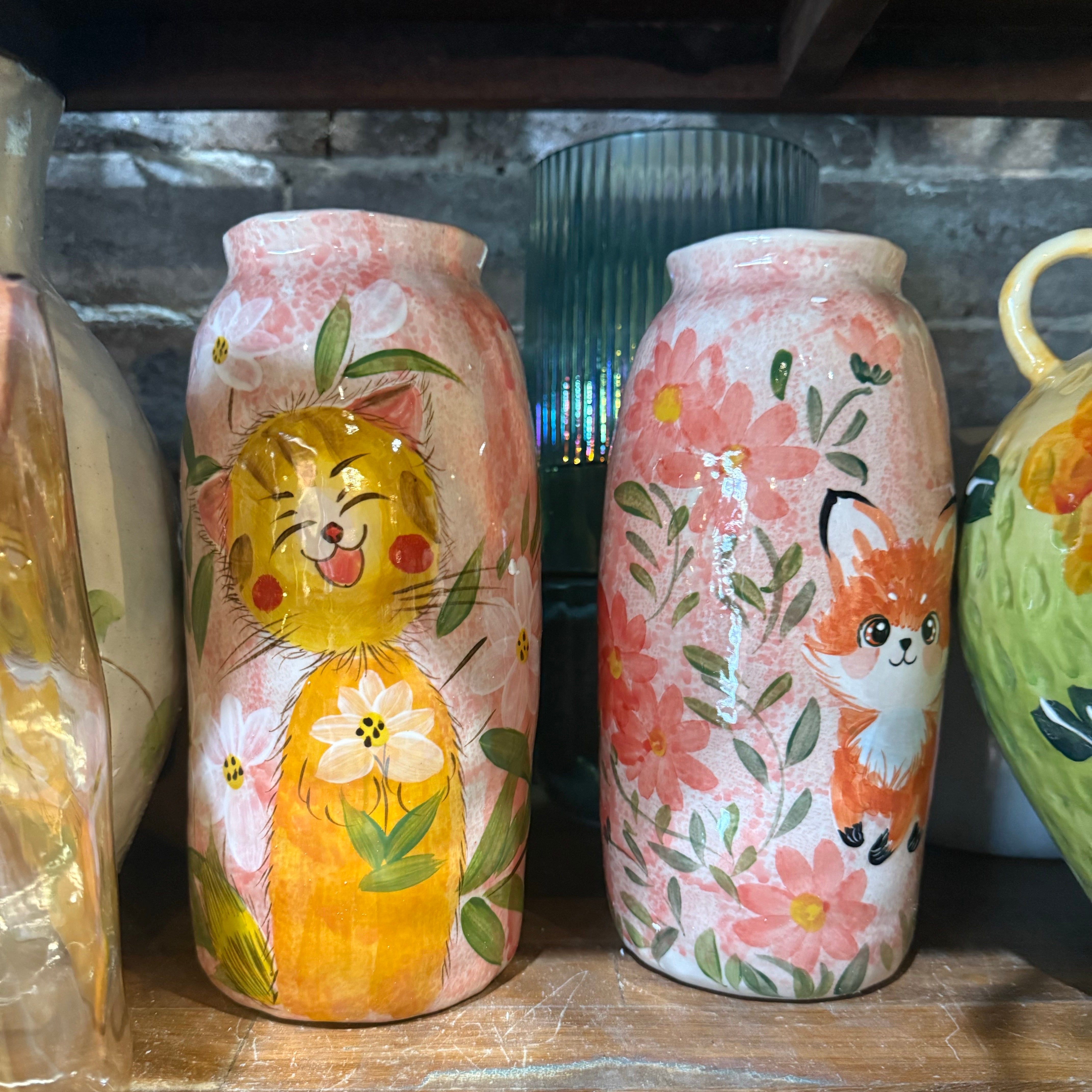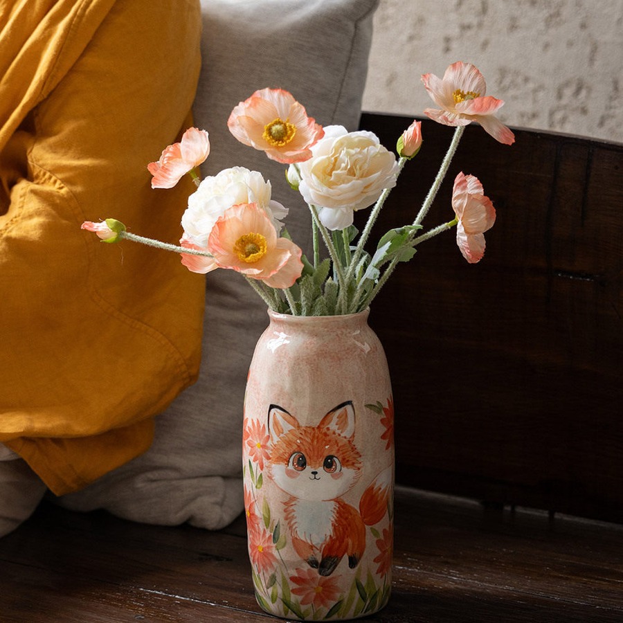 中国・景德鎮の職人技が光る、手描きの動物モチーフ陶器花瓶。ふんわりと優しいタッチで描かれた犬や猫、うさぎなどの萌えペットデザインが、見るたびに心を和ませてくれます。全3種類の可愛いフォルムから、お好みのスタイルをお選びいただけます。