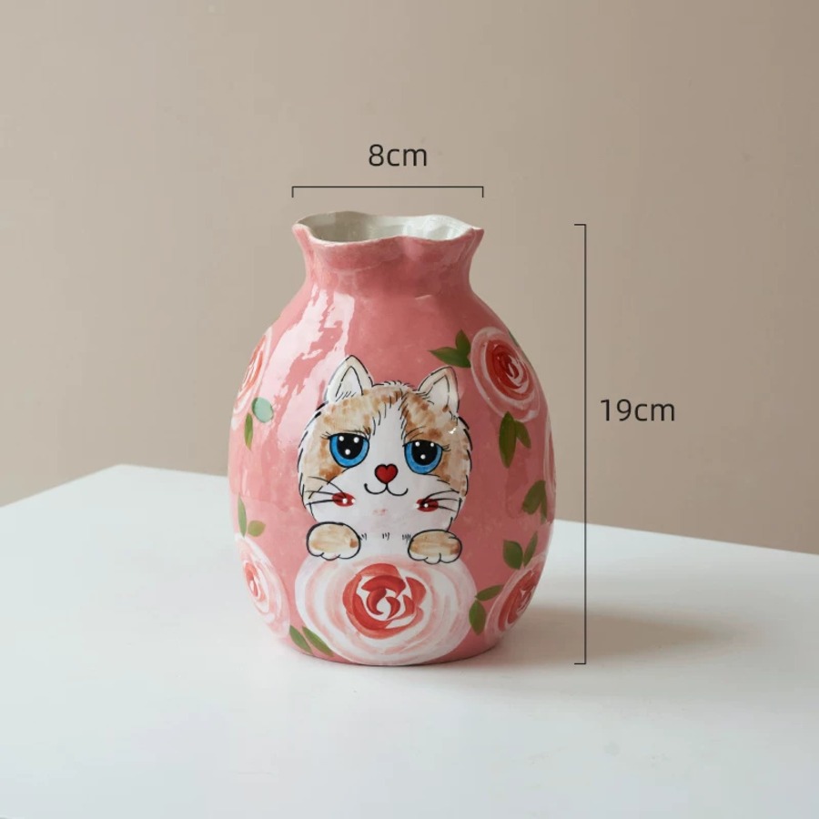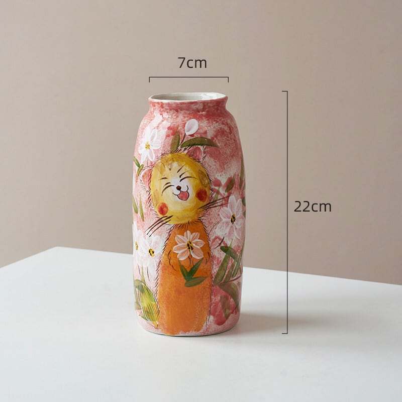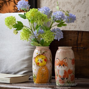 癒しの可愛さ!【猫・景德鎮手描き】3種展開 癒し系どうぶつ陶器花瓶 カワイイ萌えペットデザイン 生け花 飾り