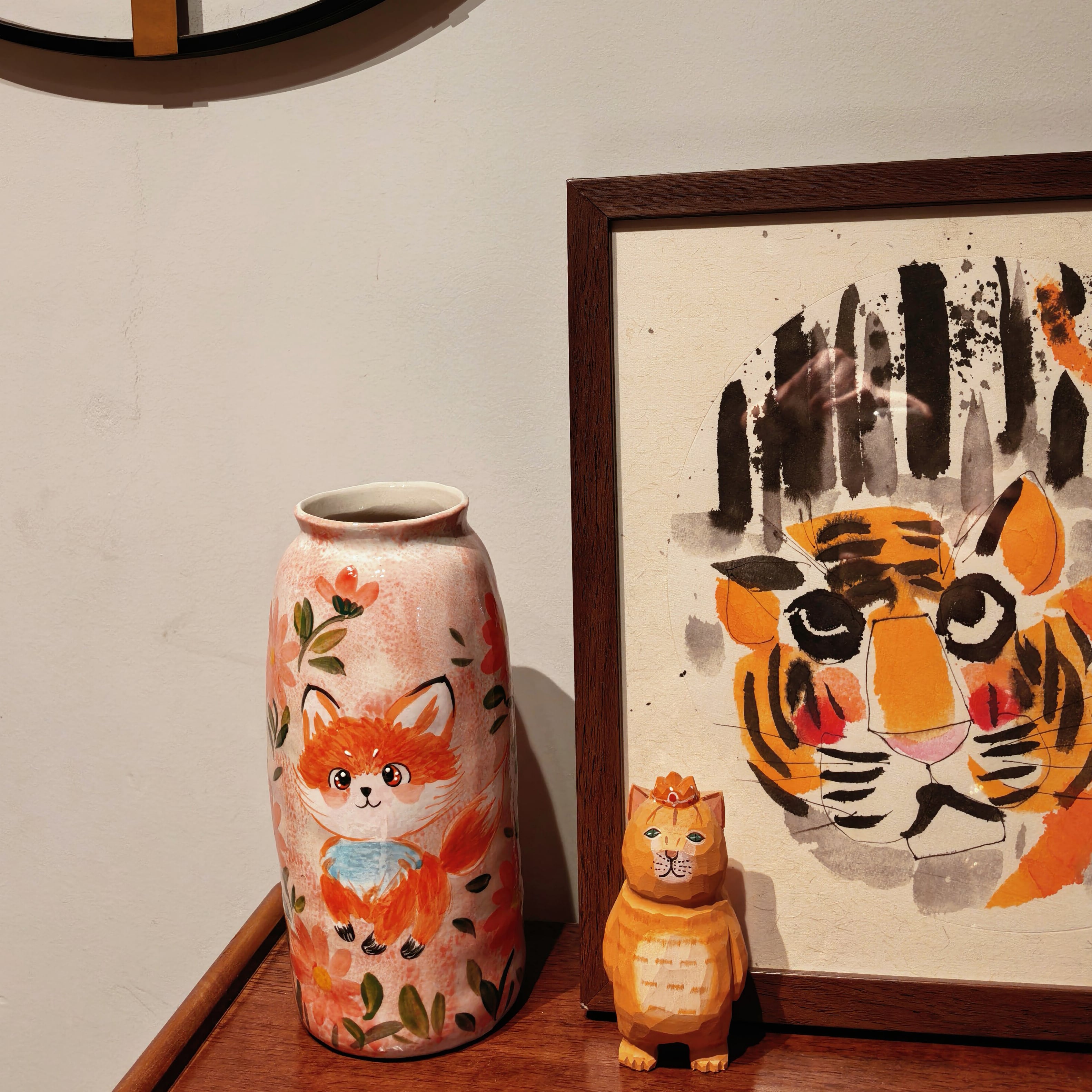 心癒される、景德鎮手描きの動物陶器花瓶
