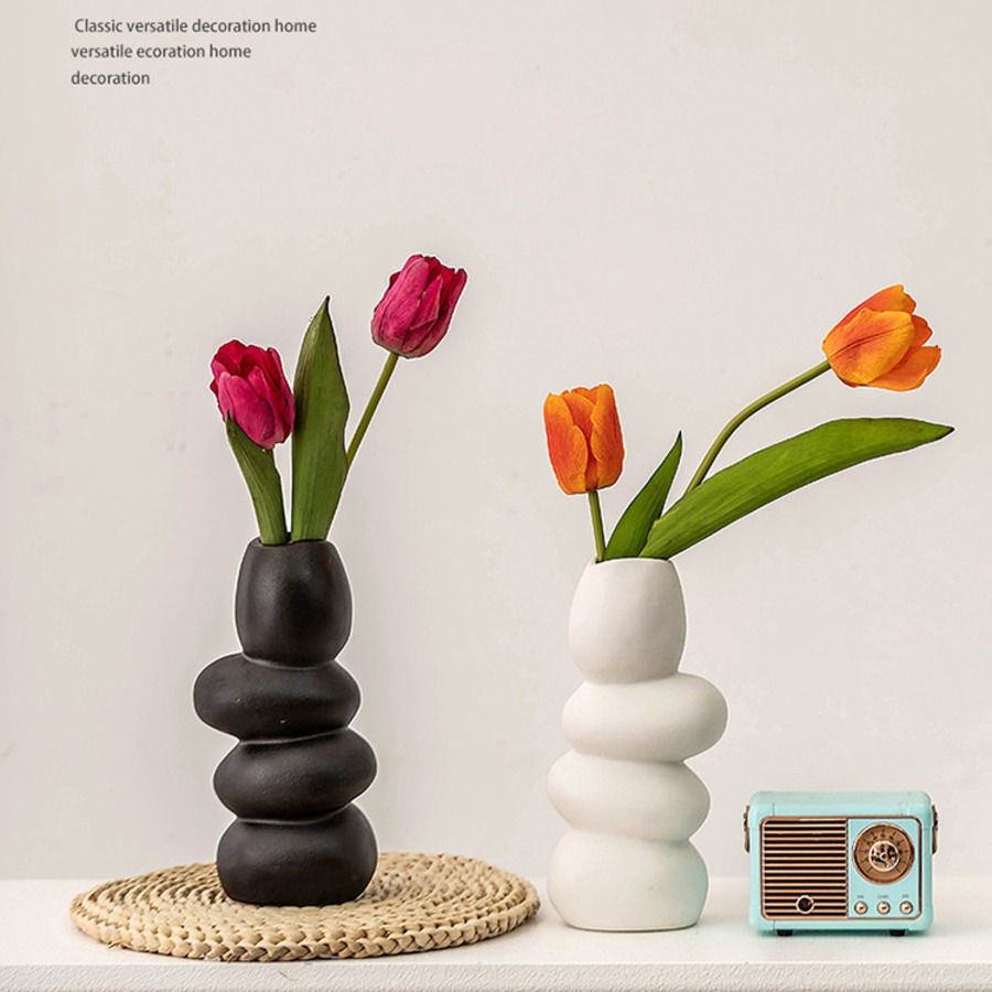 【アートな石のような陶器フラワーベース】クリエイティブな観賞用花瓶 リビング・玄関・テーブルに 生け花・ドライフラワー おしゃれなインテリア飾り