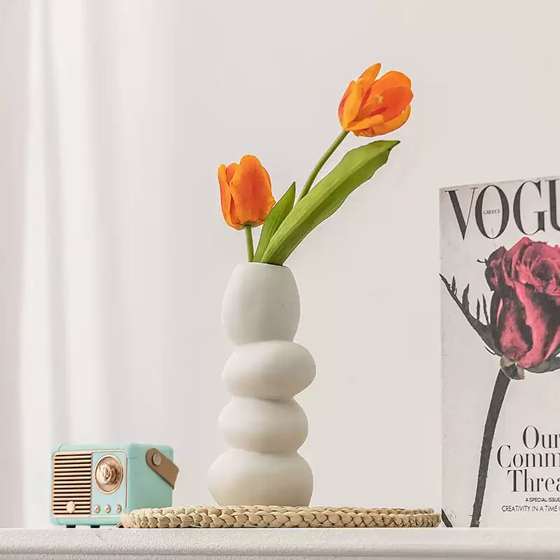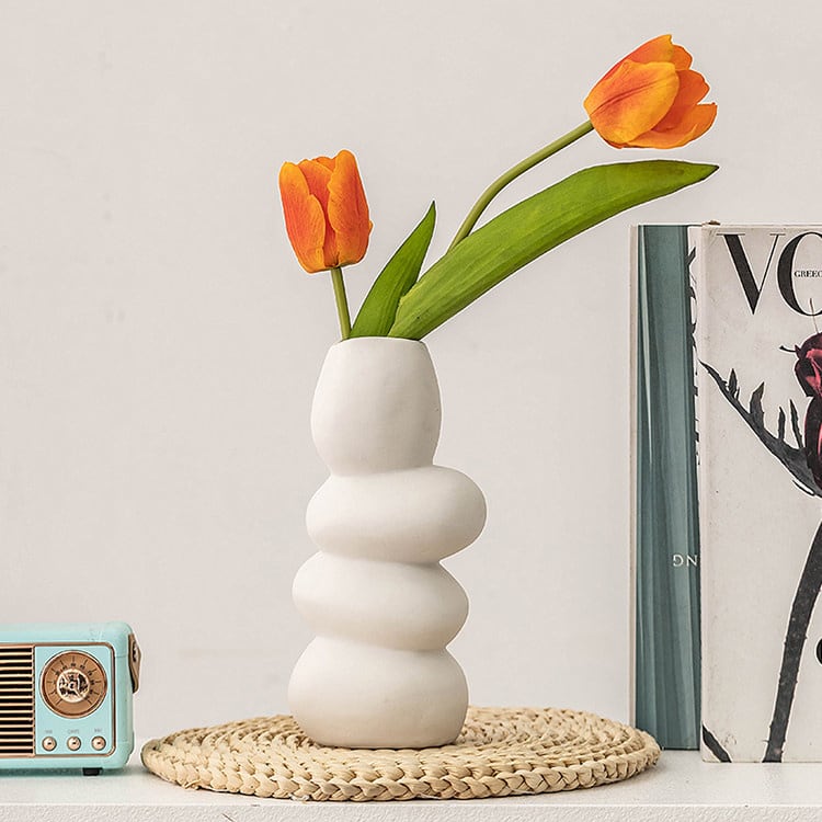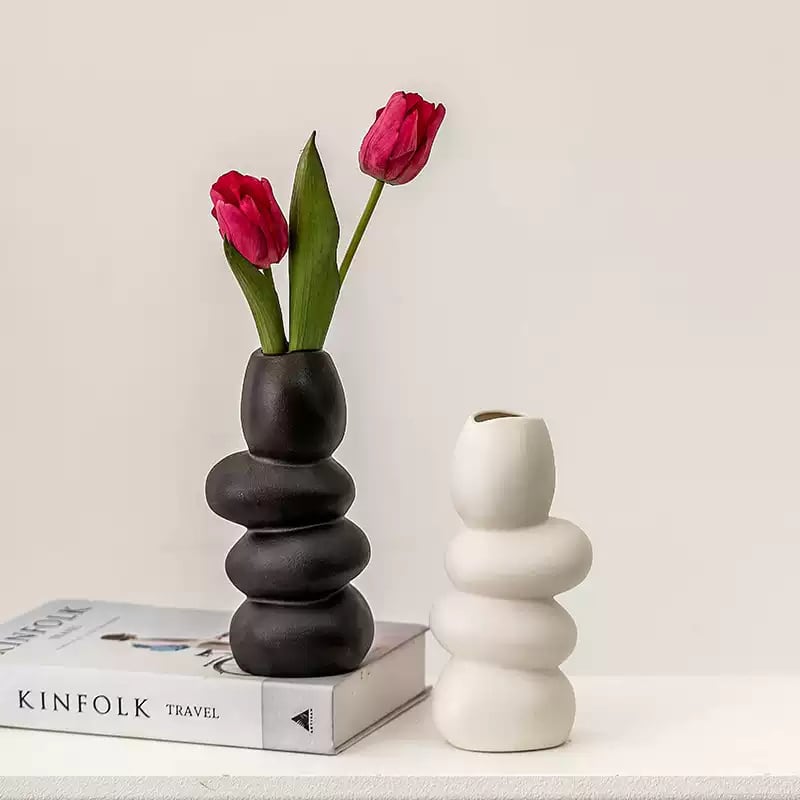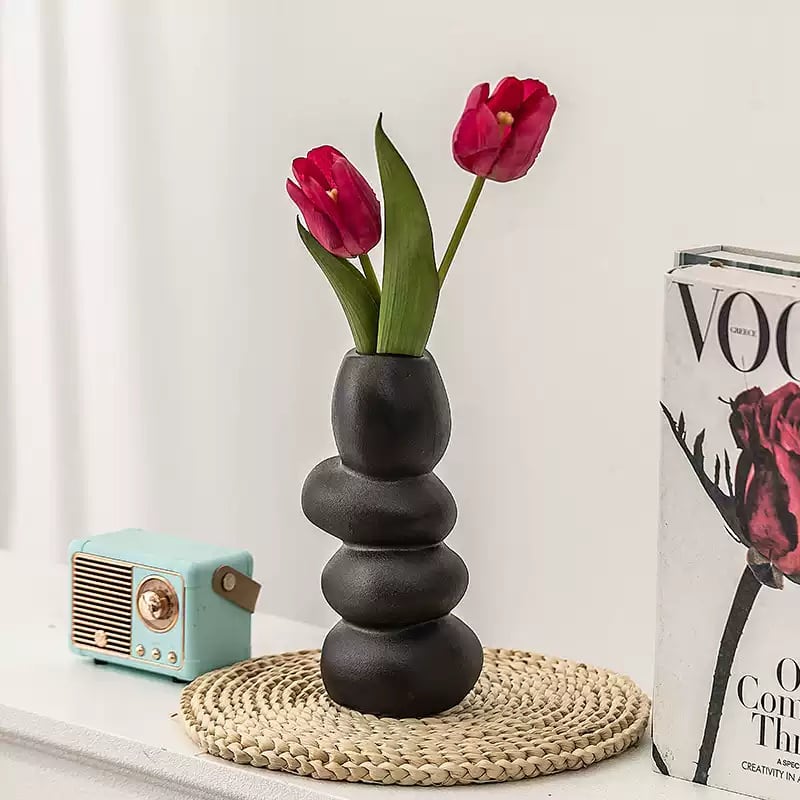 ナチュラルで温かみのある石のようなフォルムが魅力的な、クリエイティブな陶器花瓶です。リビングや玄関、テーブルの上など、どんな空間にもさりげなく馴染み、アートな雰囲気をプラスします。