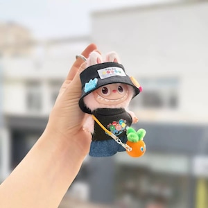 ラブブ コンサート応援コーデ♡斜めがけキャロット付き!labubu キャロットクロスバッグ仕様 10cmドール用 フルコーディネート