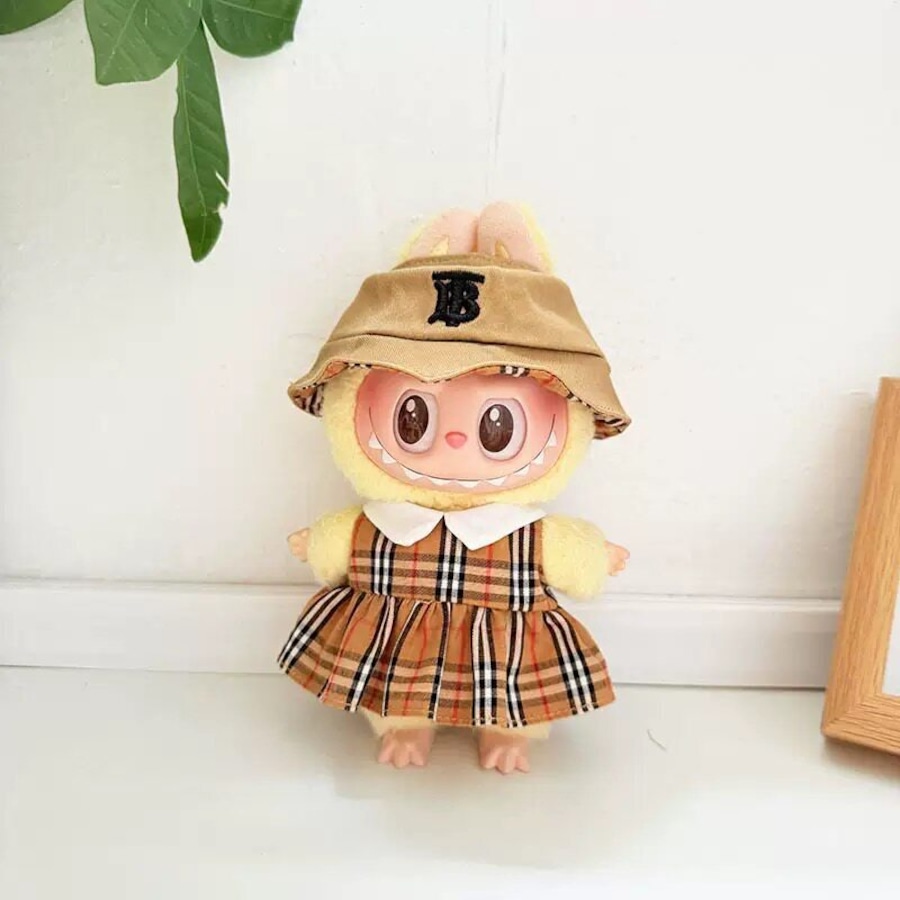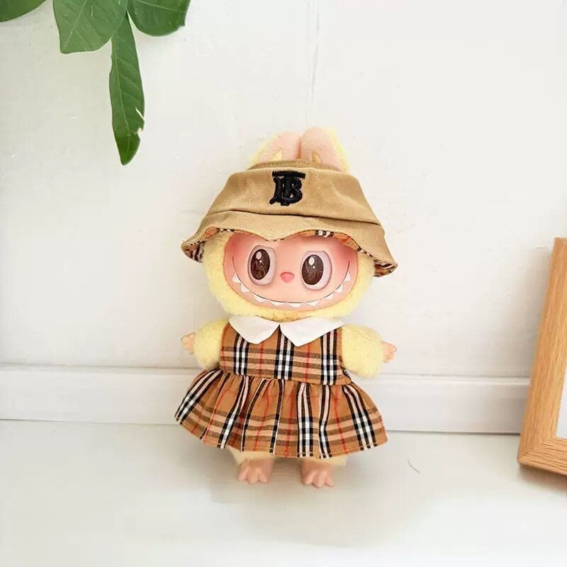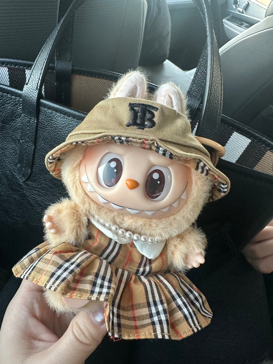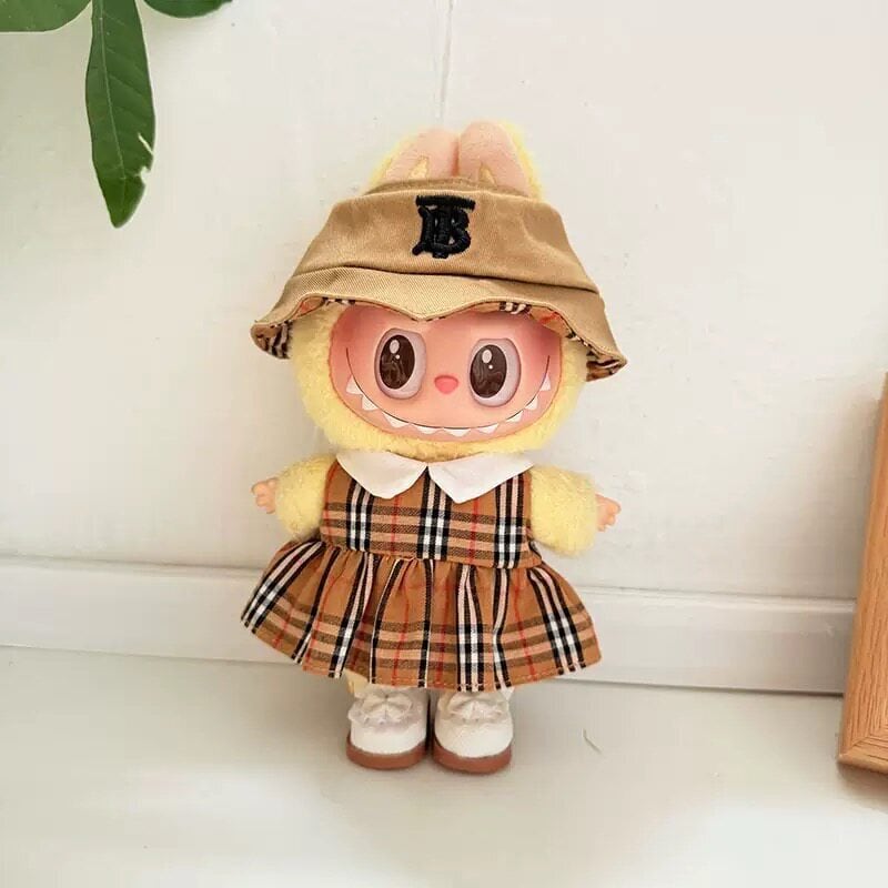 上品で高級感ある大人かわいい!クラシックモダン♡LABUBU チェック柄スカートコーデ 白シューズ&黒バッグ込み 17cmドール用