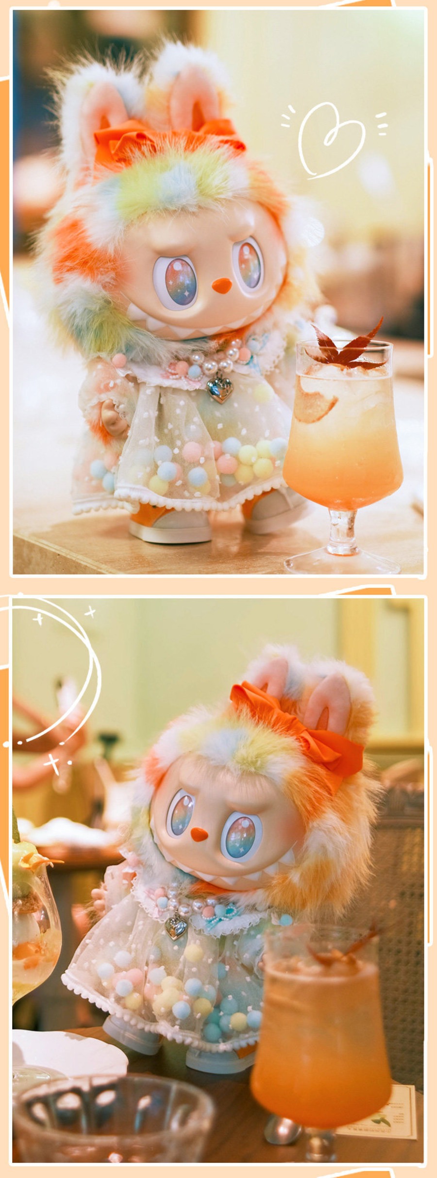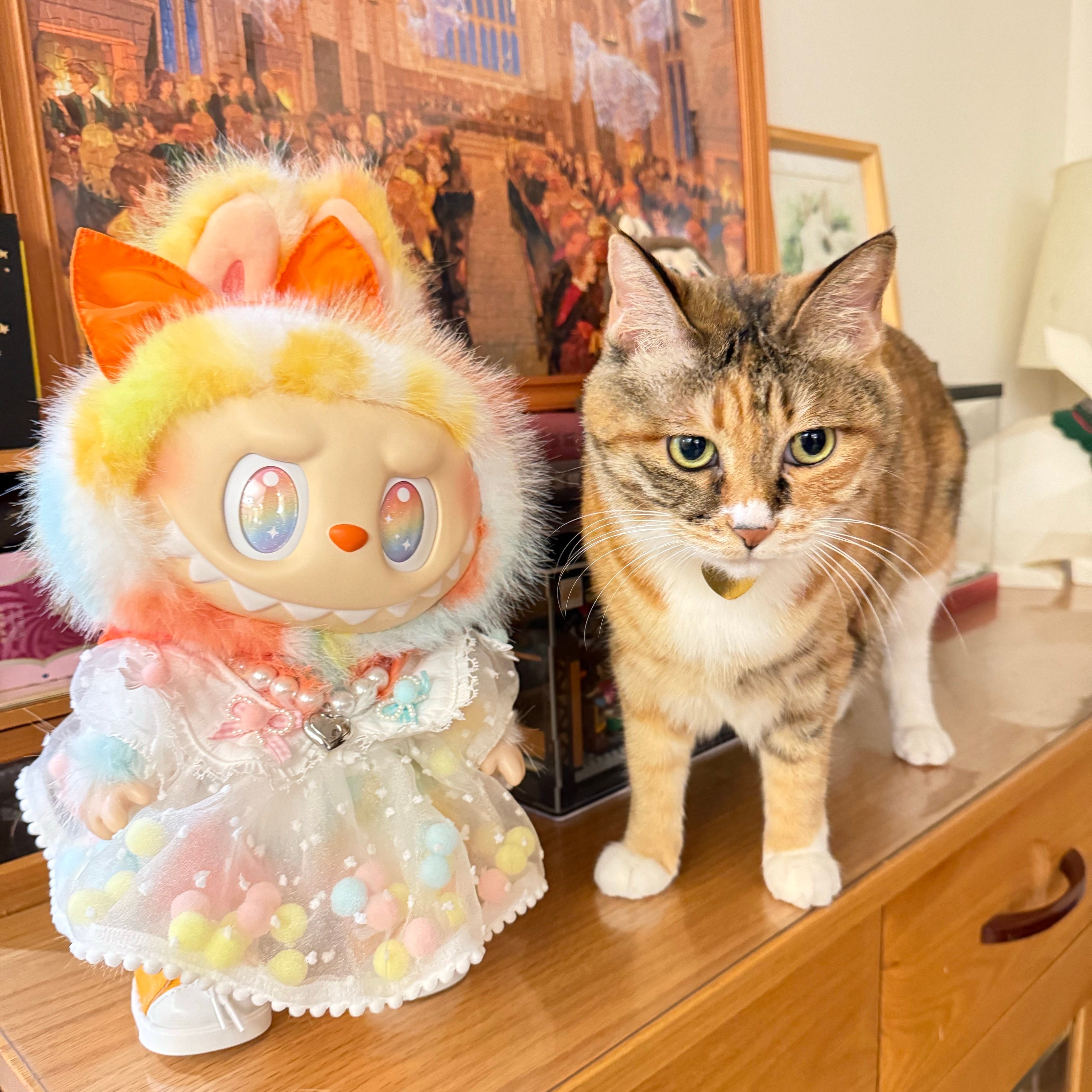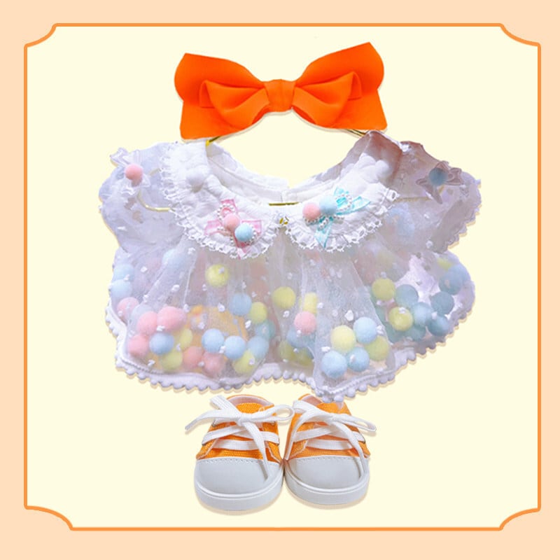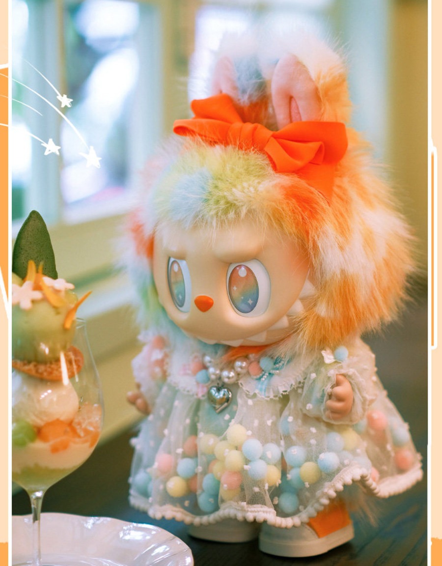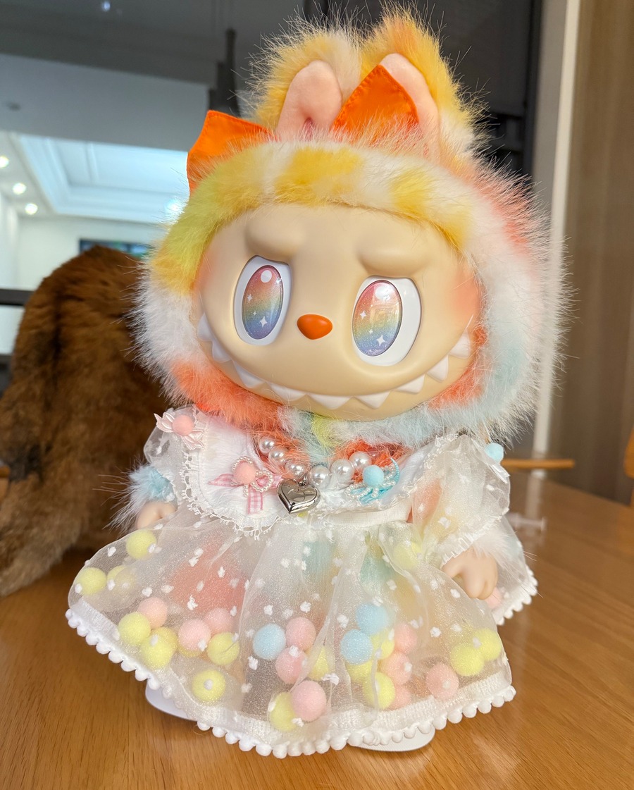 可愛くて華やかなドール服!labubu ラブブ38cm レインボーロックポンポンコーデ♡ パールネックレス&シューズ付き オリジナルフルセット