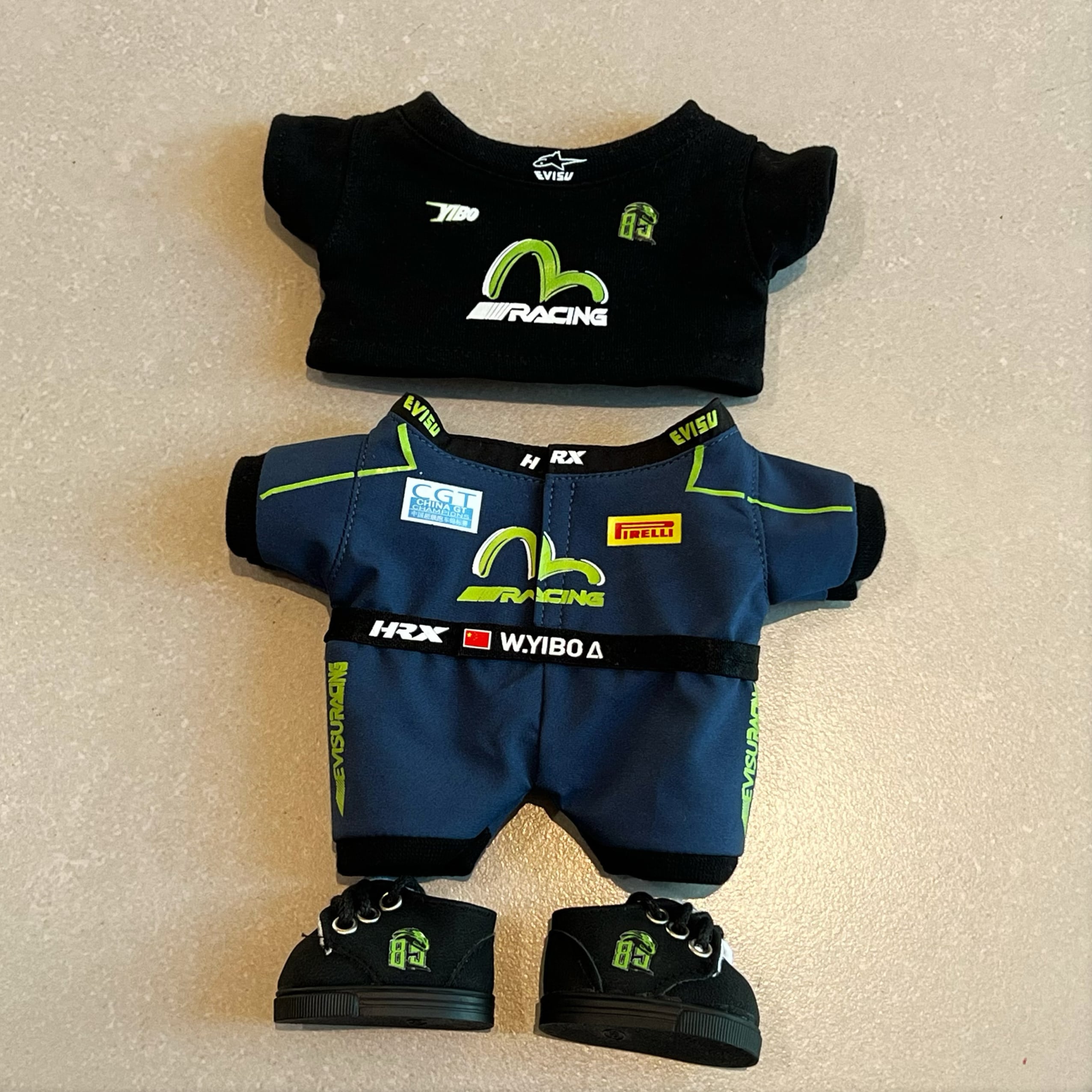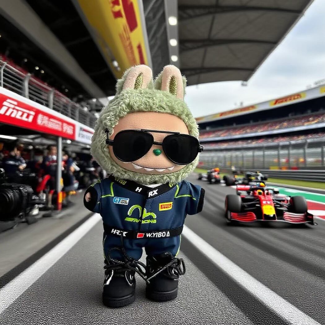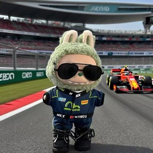 LABUBU 17cm レーシングコーデ♪帽子は4種から選べる! 高品質フルセット レーシングスーツ×Tシャツ×靴×帽子 かっこいいレーサー風