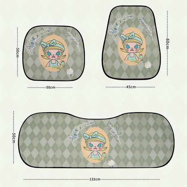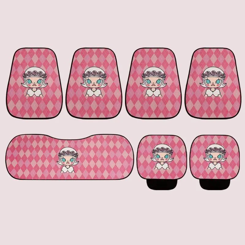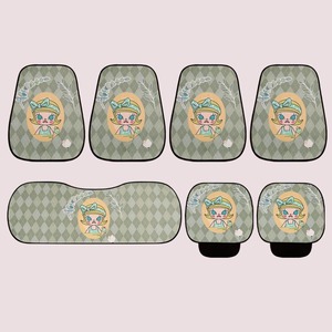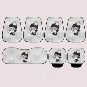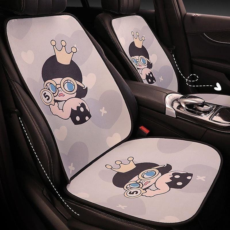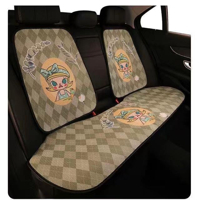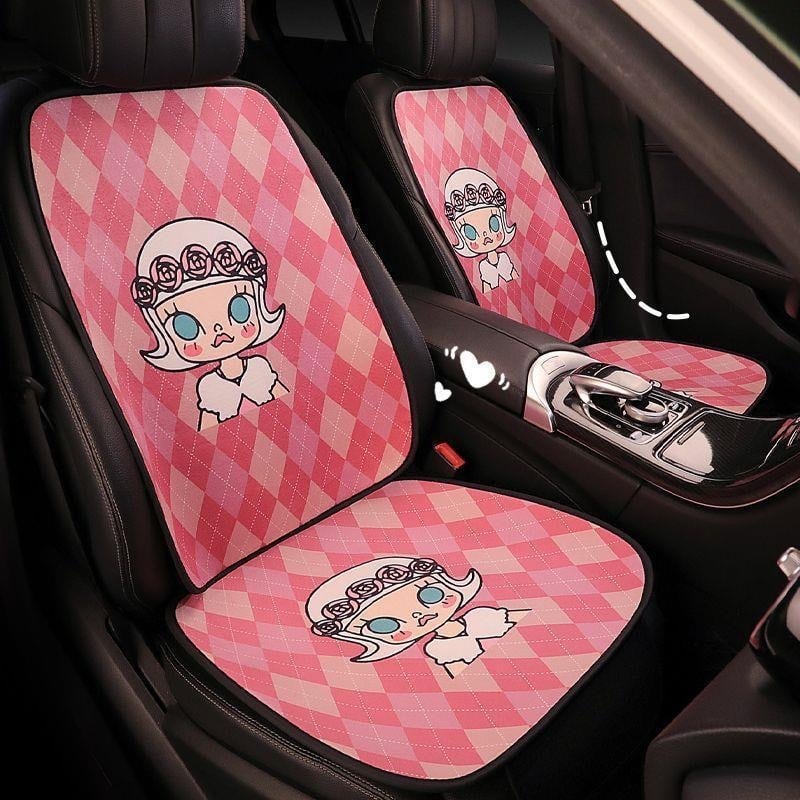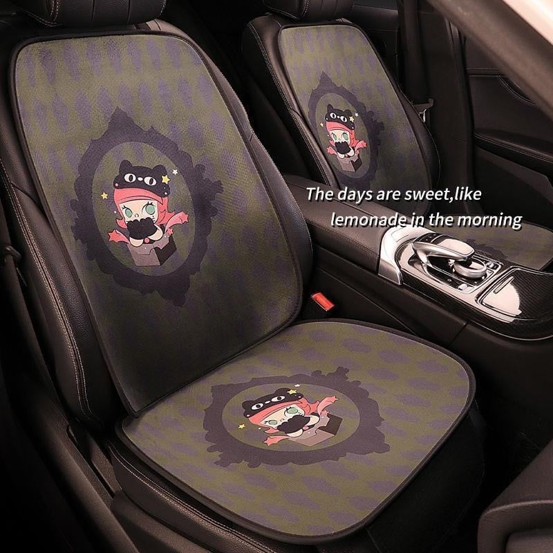 【全車7点セット・全車種対応】冷感素材 カークッション フルセット(フロント4+リア3) ポップでキュートなPOP MARTデザイン オールシーズン対応 リアシート対応 単体シートクッション 全4種展開