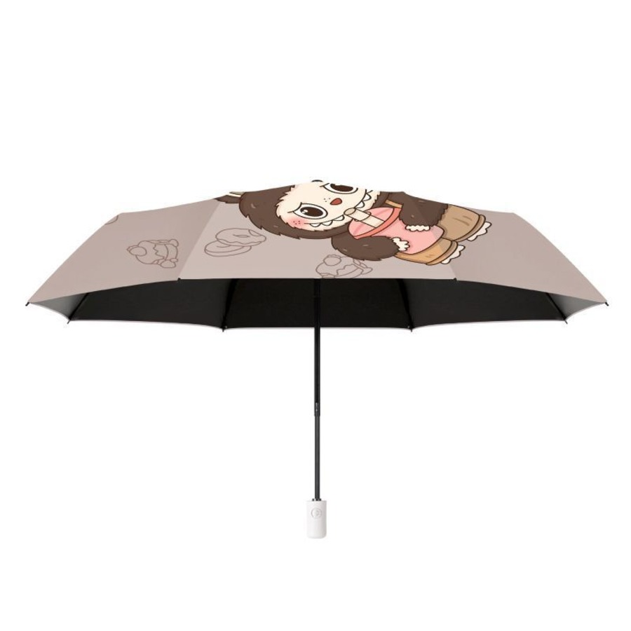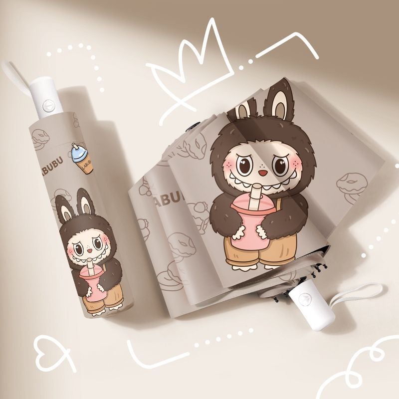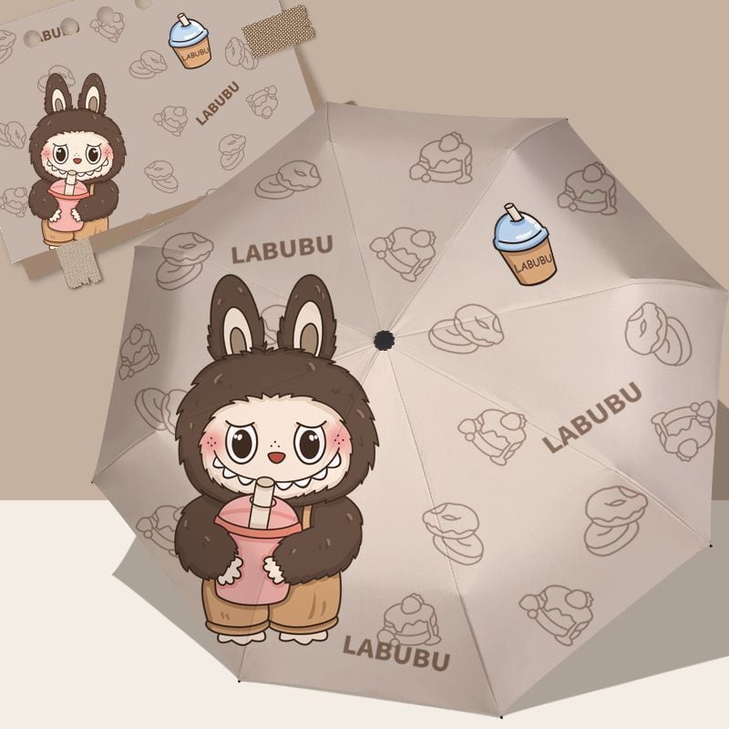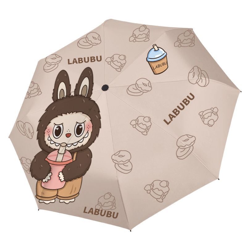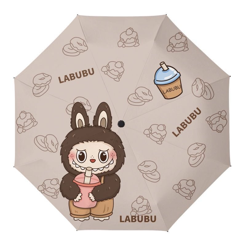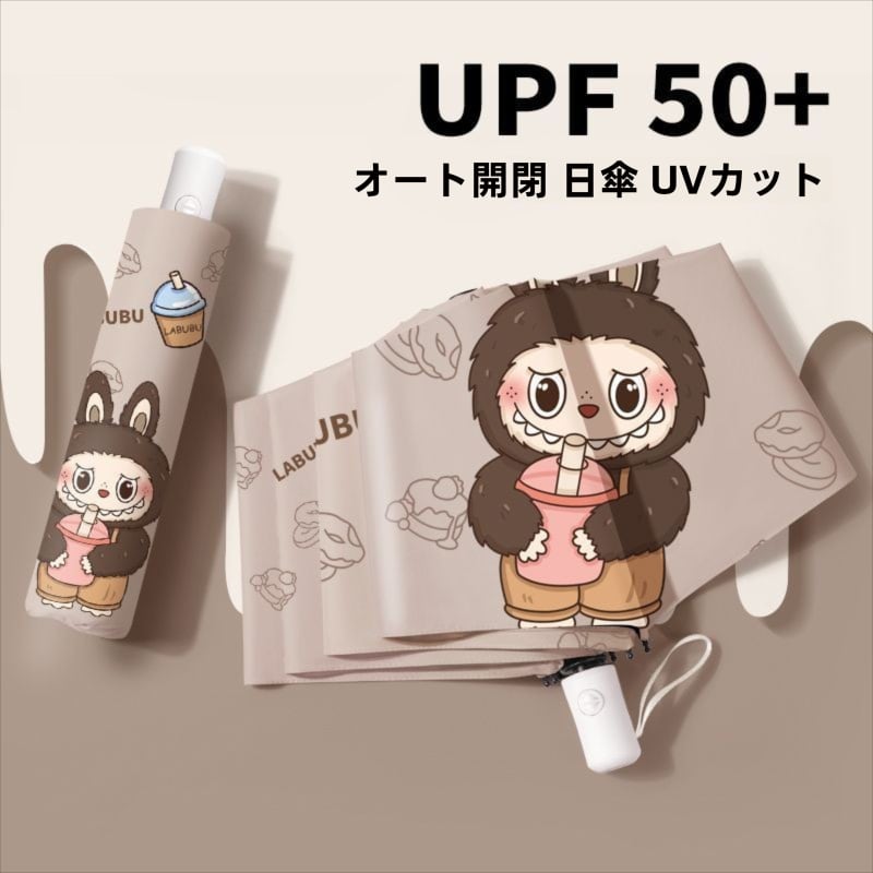 ミルクティーカラー!labubu ラブブ 折りたたみ傘 ミルクティー 晴雨兼用 日傘 雨傘 UPF50+ UVカット 黒コーティング オート開閉 かわいい ギフト対応