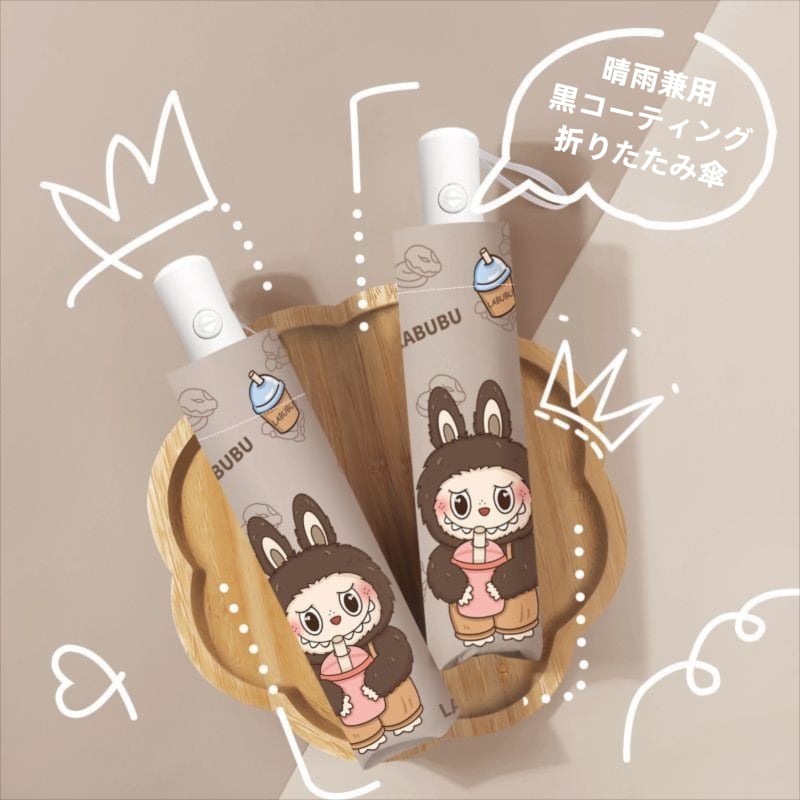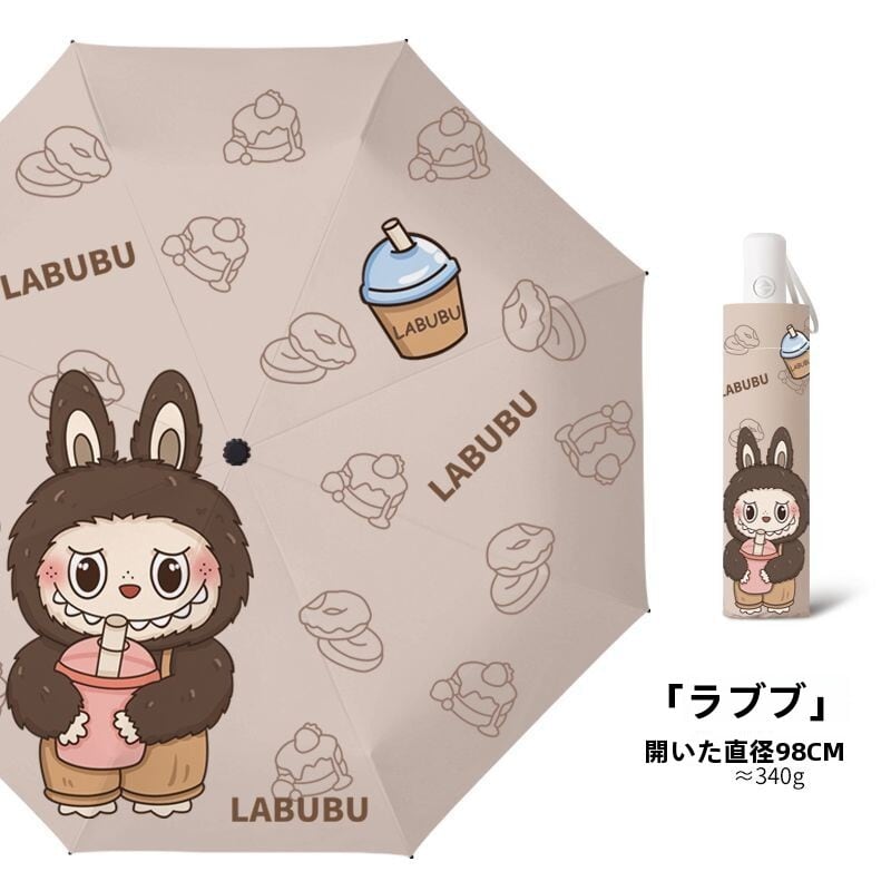 【商品名】labubu 折りたたみ傘 ミルクティー 晴雨兼用 日傘 雨傘 UPF50+