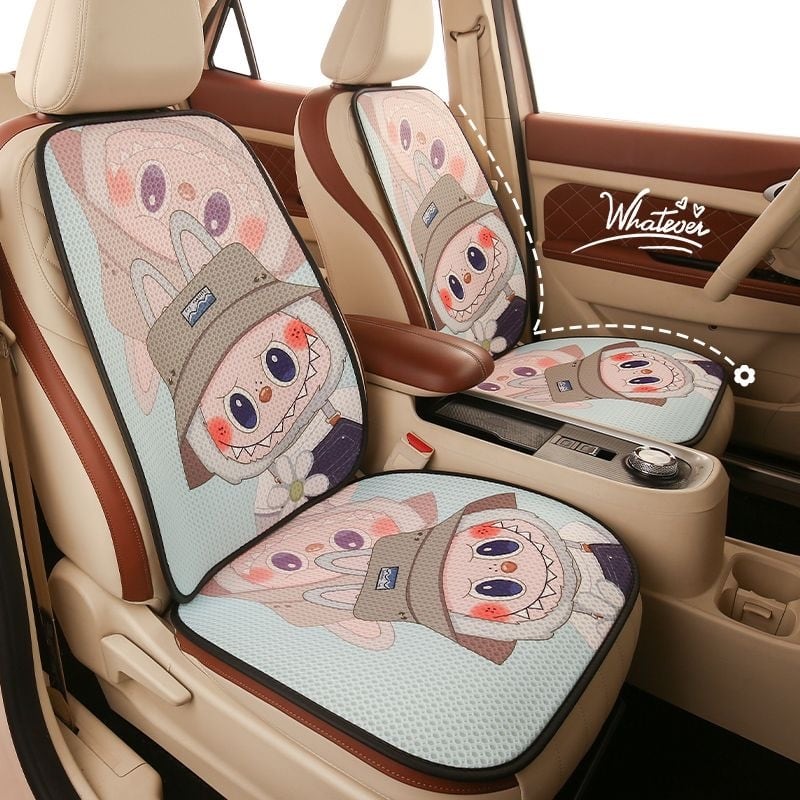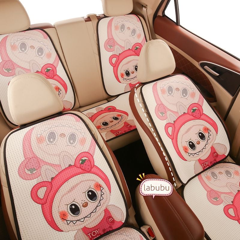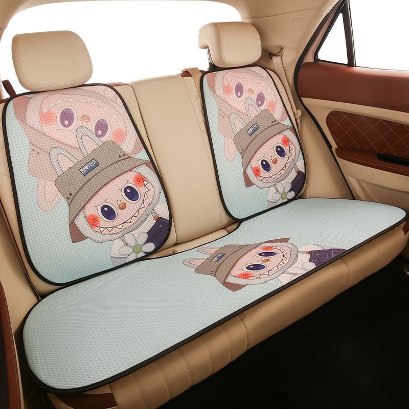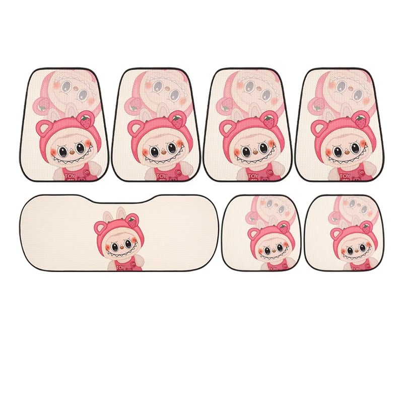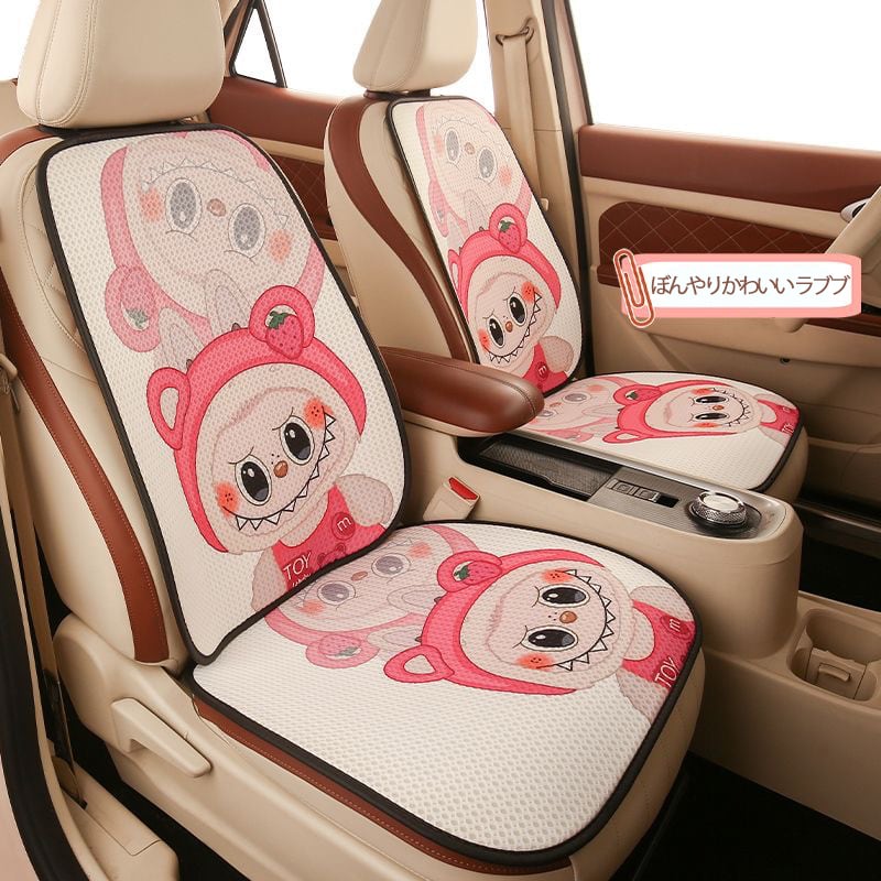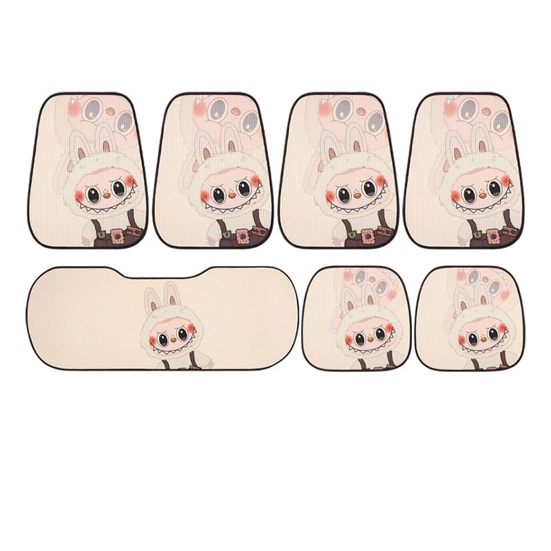 【大人気ラブブ・全車種対応】ラブブ カークッション 7点セット♡ かわいい 人気 オールシーズン使える ひんやり涼感 通気性抜群 裏面すべり止め付き