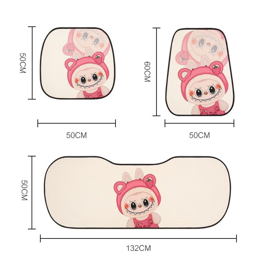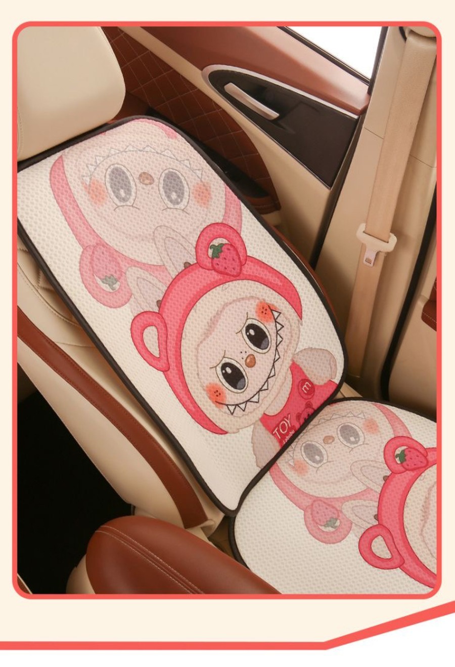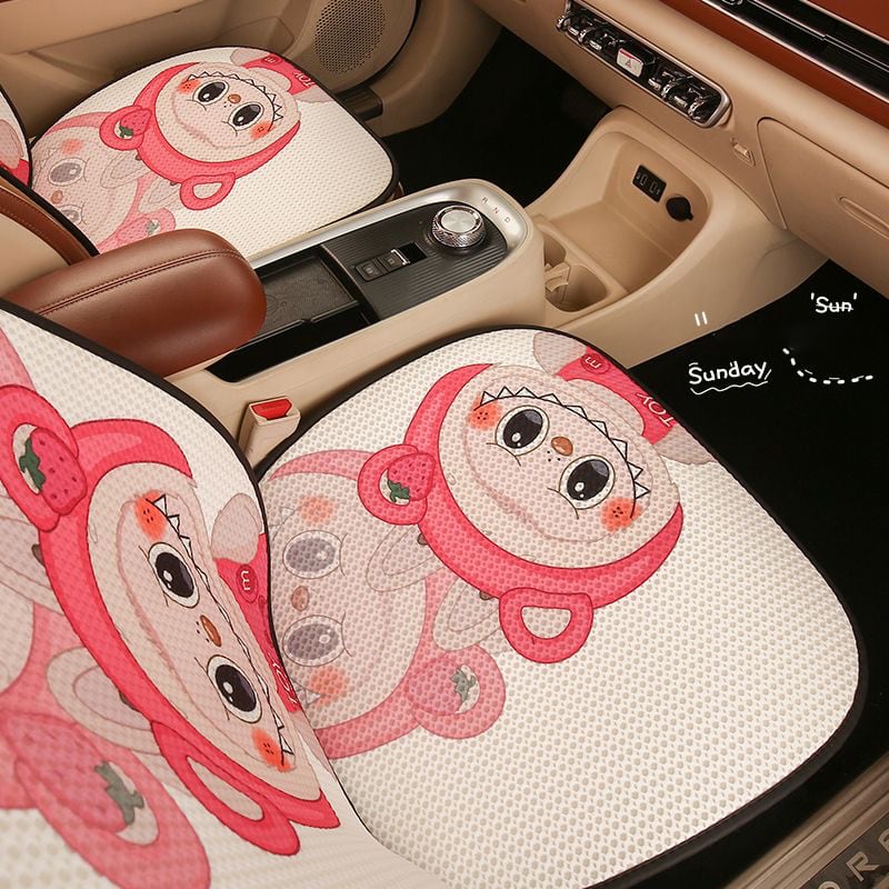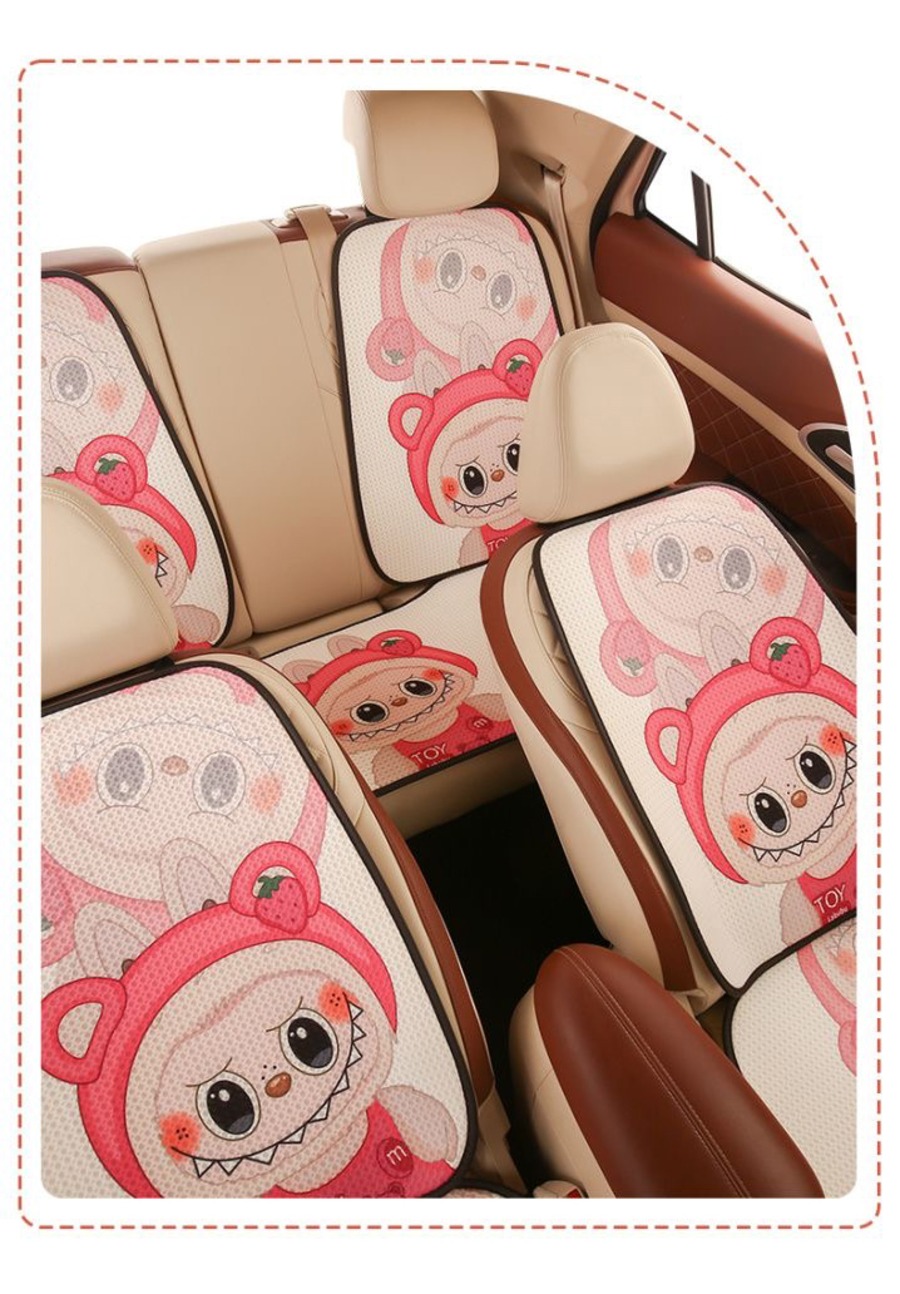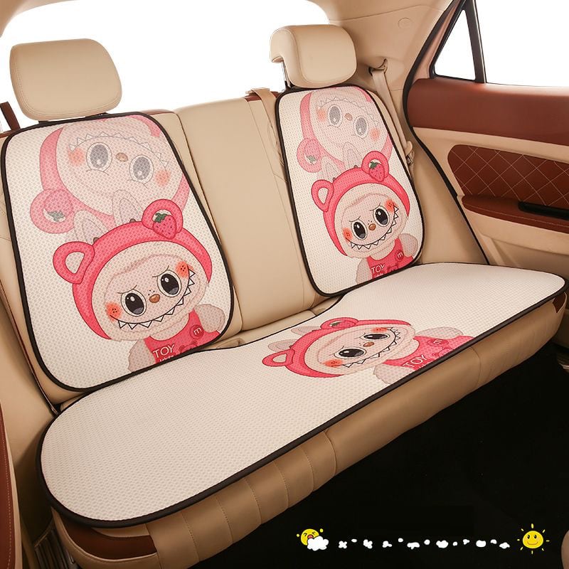 【大人気ラブブ・全車種対応】ラブブ カークッション 7点セット♡ かわいい 人気 オールシーズン使える ひんやり涼感 通気性抜群 裏面すべり止め付き