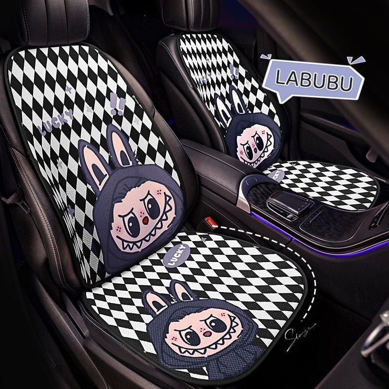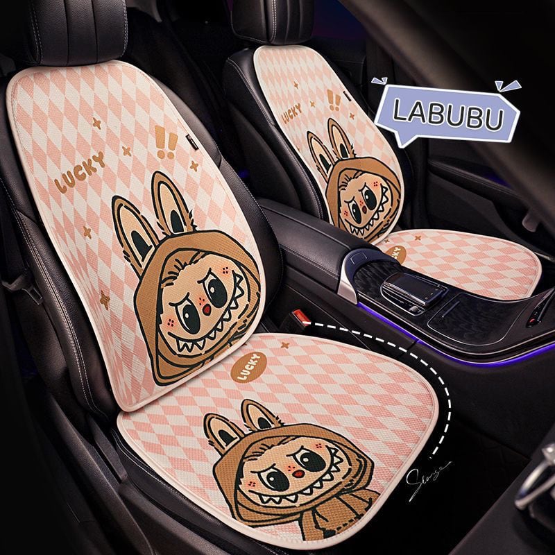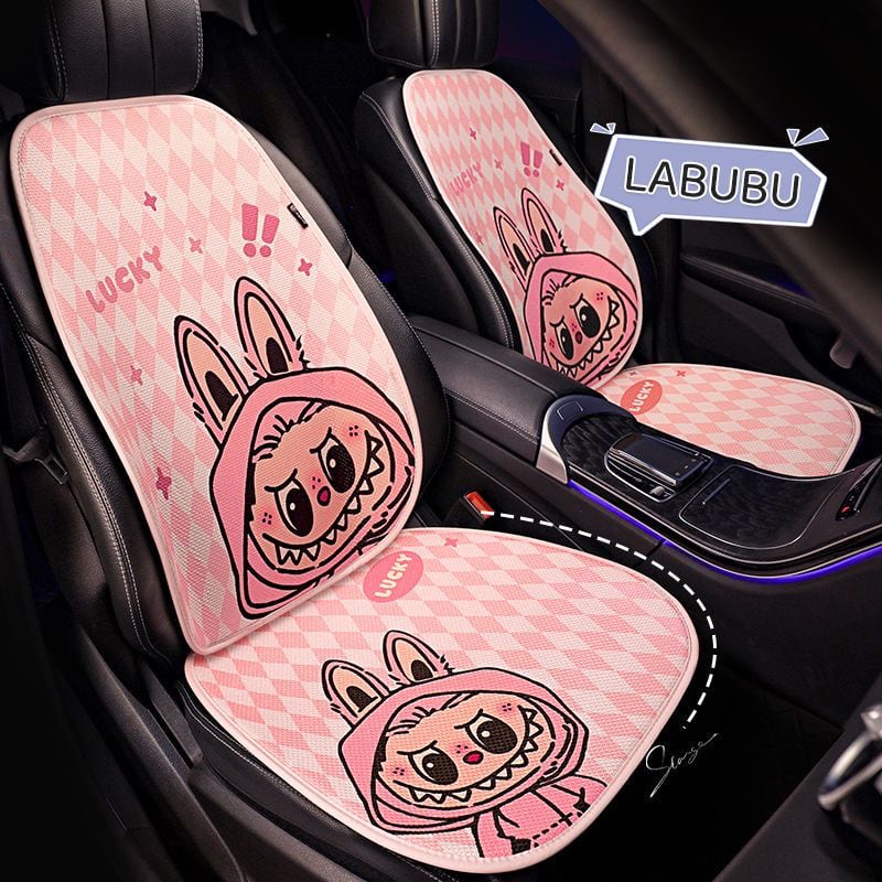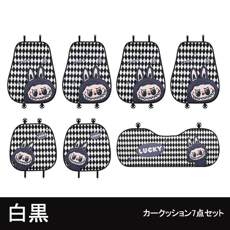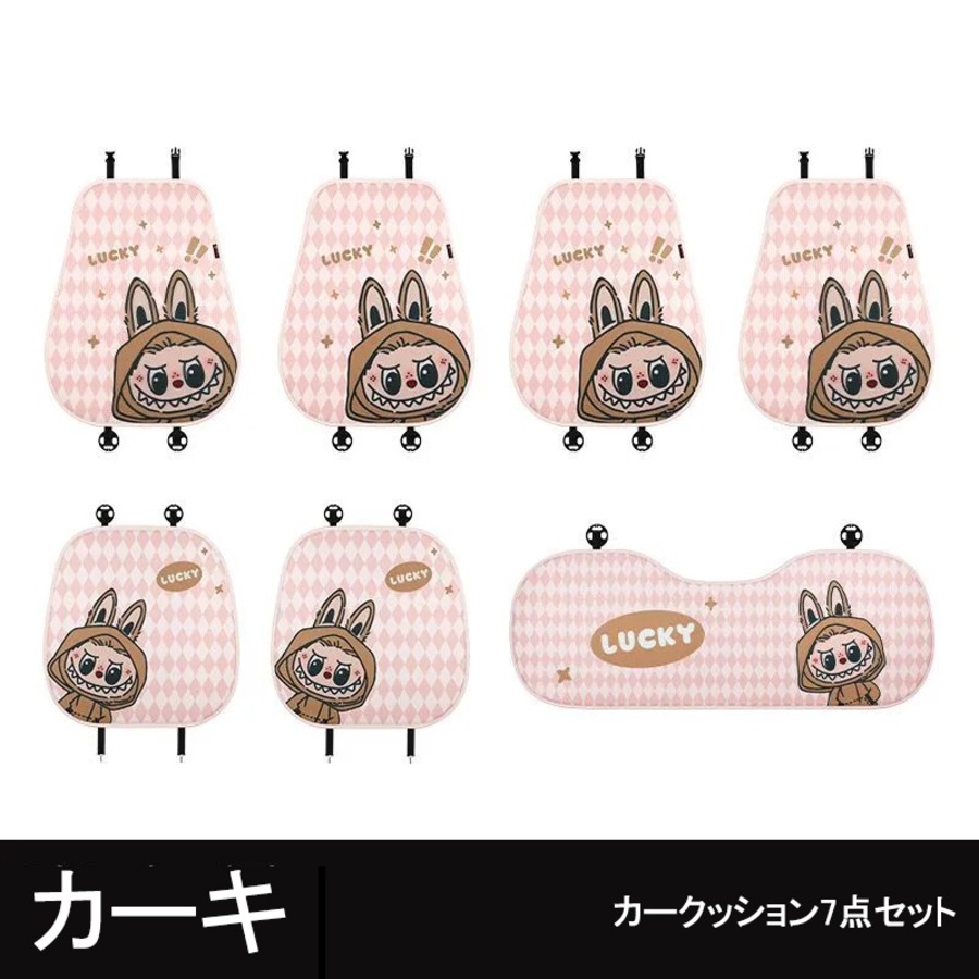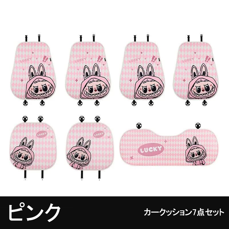 フェミニンで快適なドライブ空間!labubu ラブブ カーシートカバー 7点フルセット 四季対応 通気性メッシュ素材 3色展開 かわいい 女性向け 快適&保護力抜群