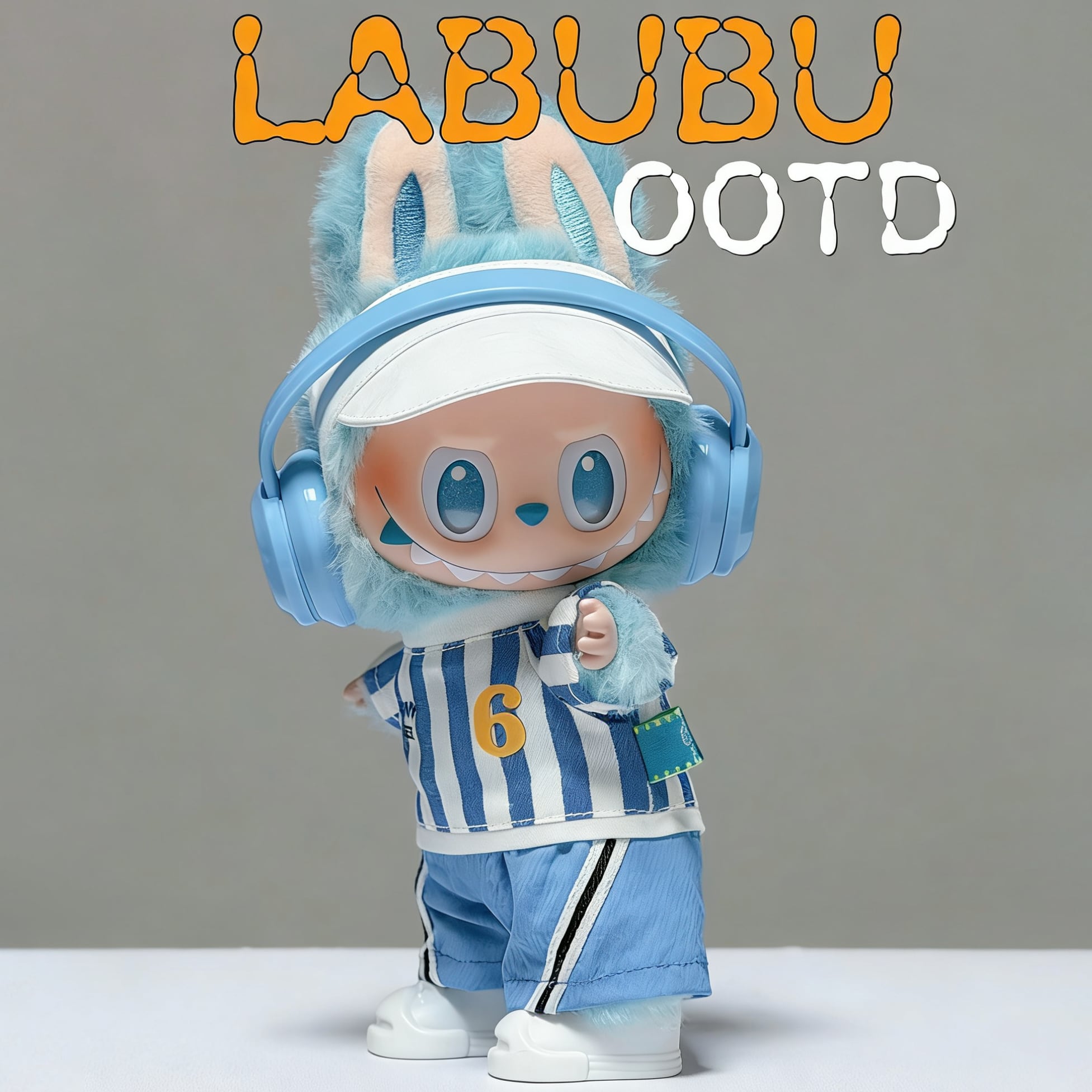 【ラブブ 2026 Summer Collection】Labubu ブルー×ホワイトストライプのユニフォーム風コーデ 爽やか&かわいい フルセット 高品質
