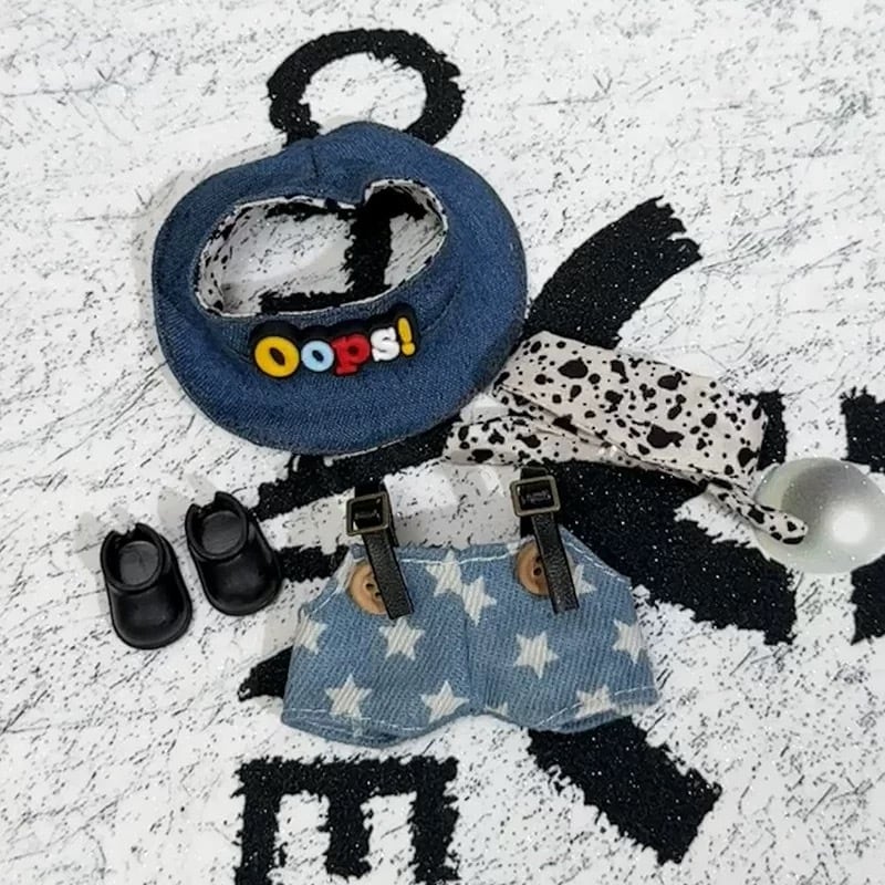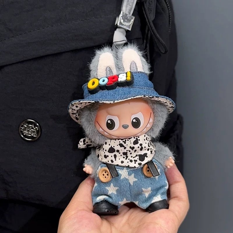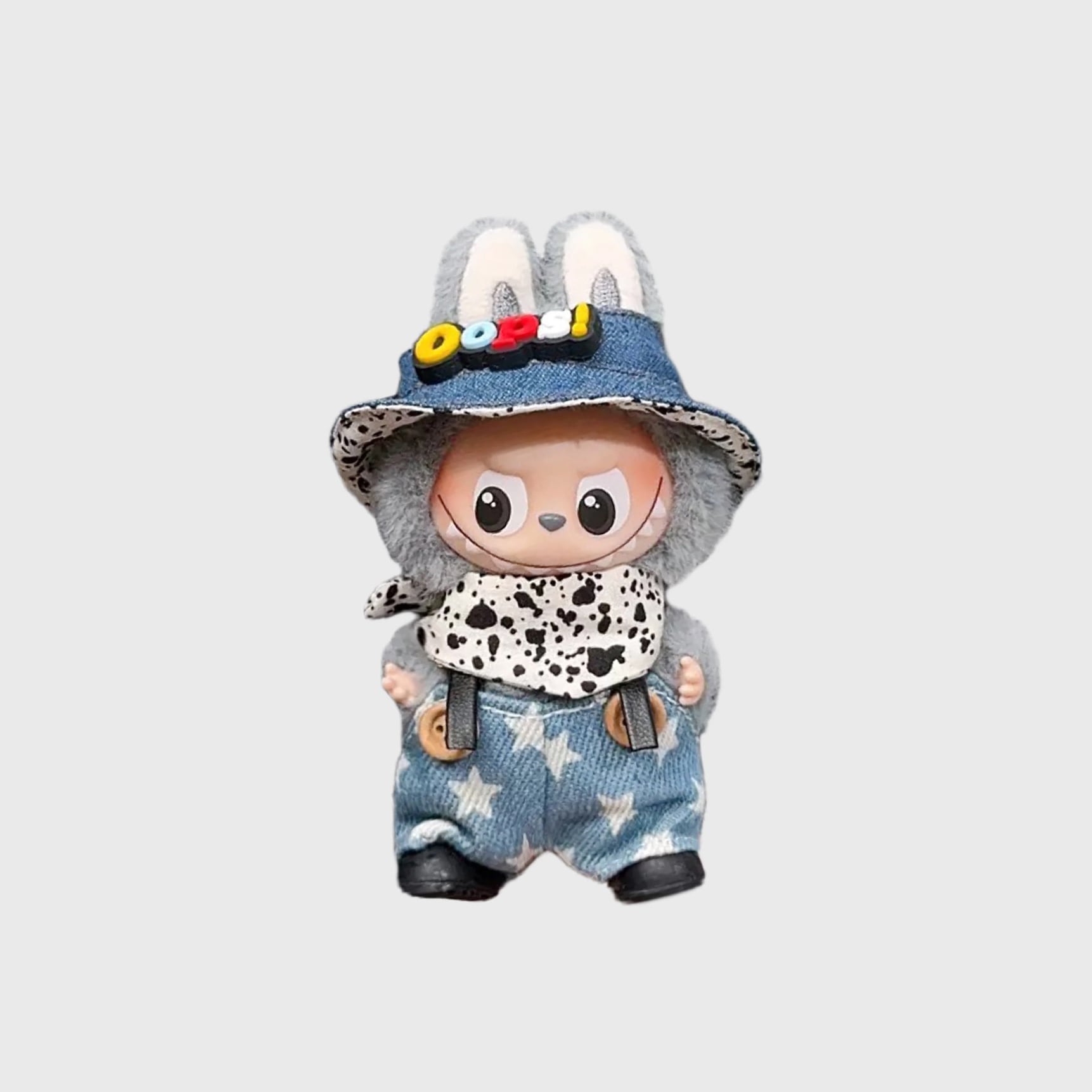 oopsシリーズ♪ ラブブ4.0 10cm デニムつなぎが可愛い! 帽子&青サスペンダーパンツ(デニム)&マフラー&黒靴 こだわり4点フルセット