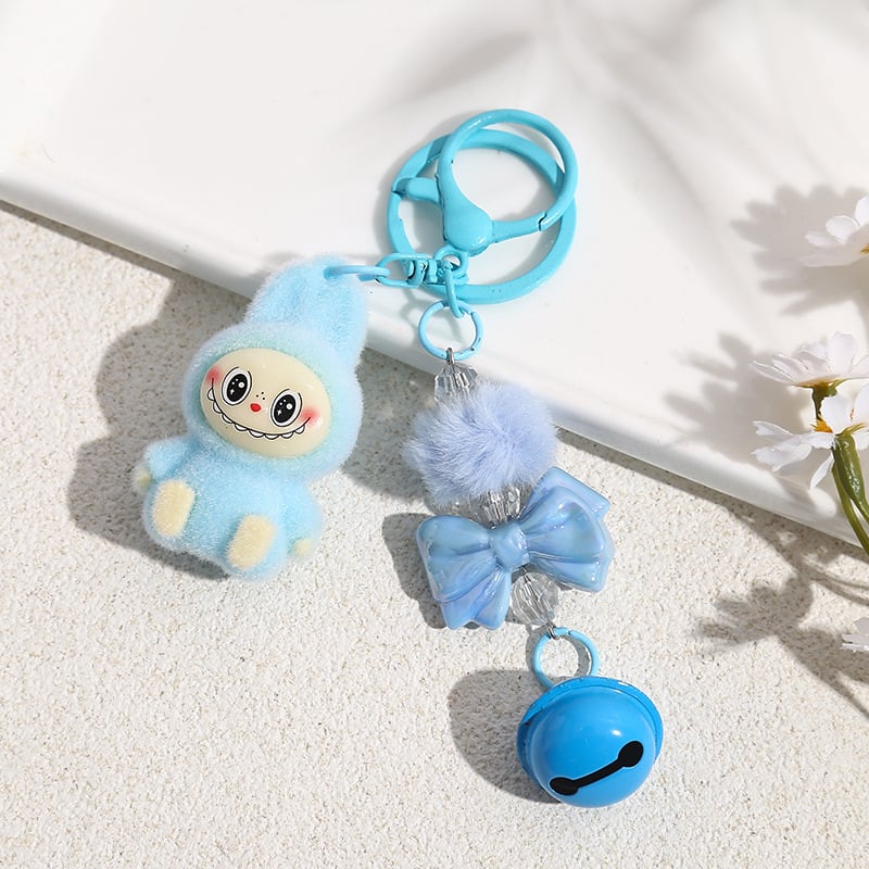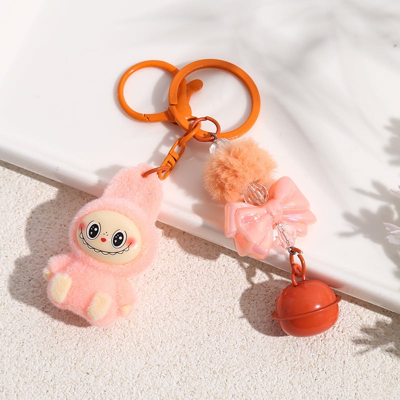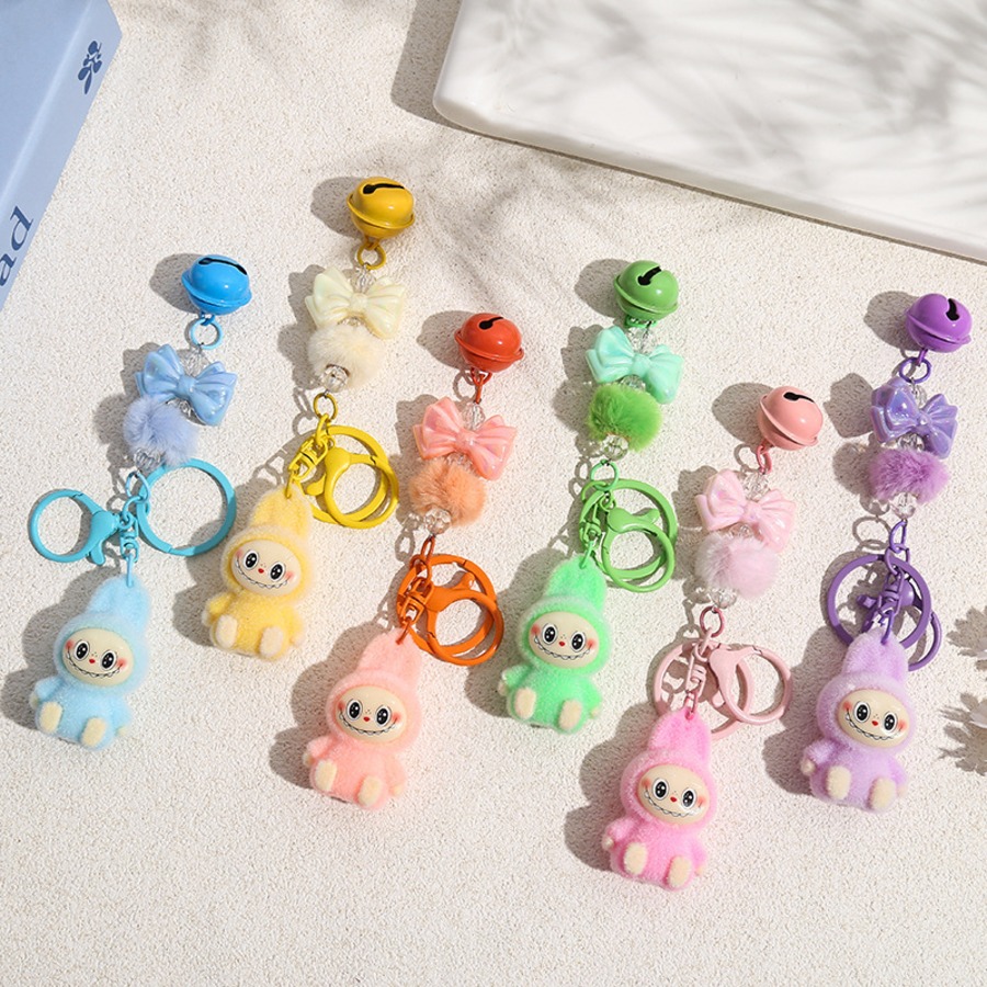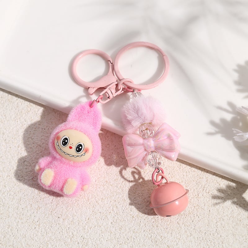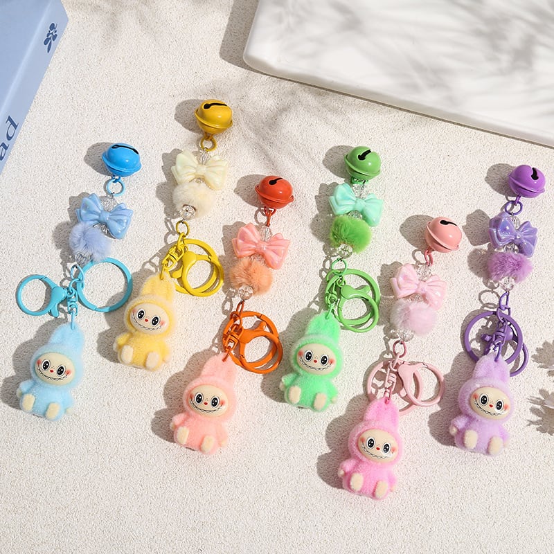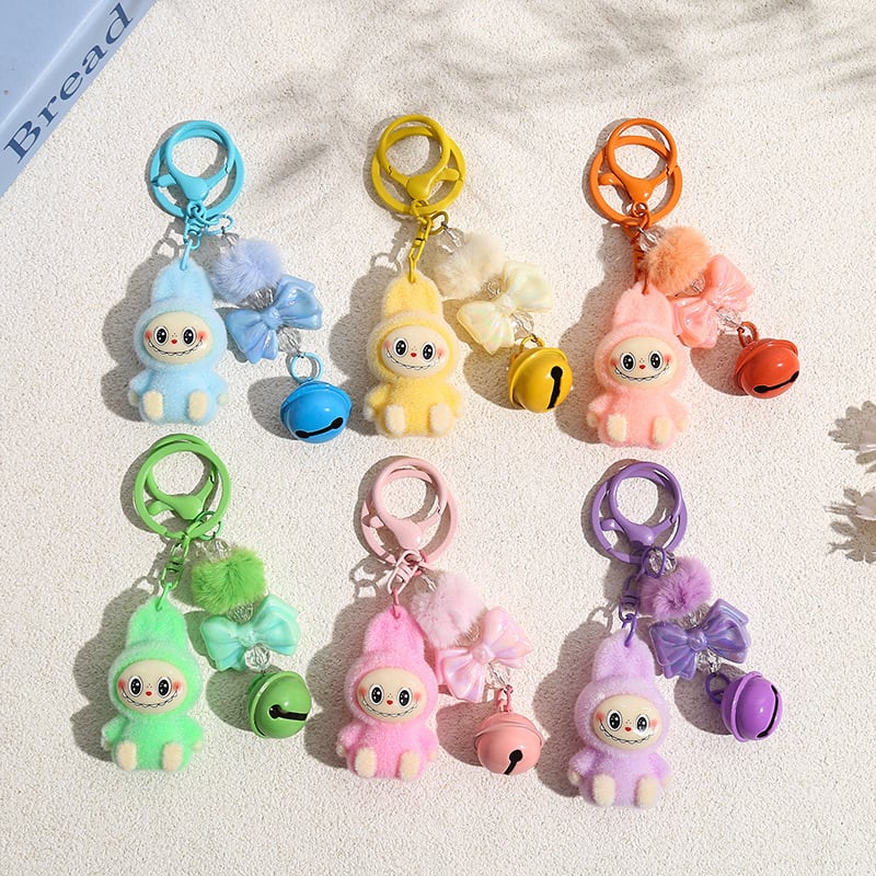 LABUBU ラブブ キーホルダー フロッキー素材が可愛い! リボンポンポン付きバッグチャーム 6色から選べる♡ 友チョコ・彼チョコにも