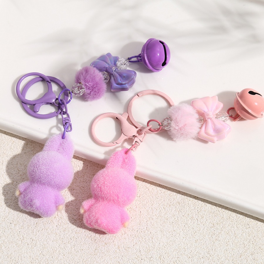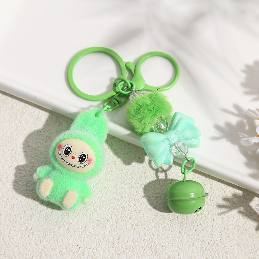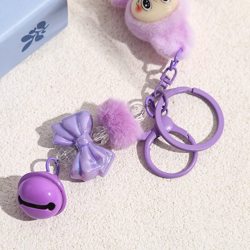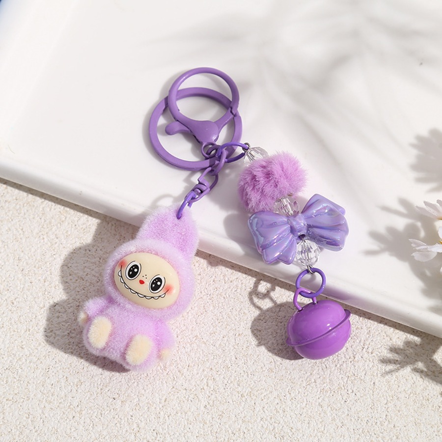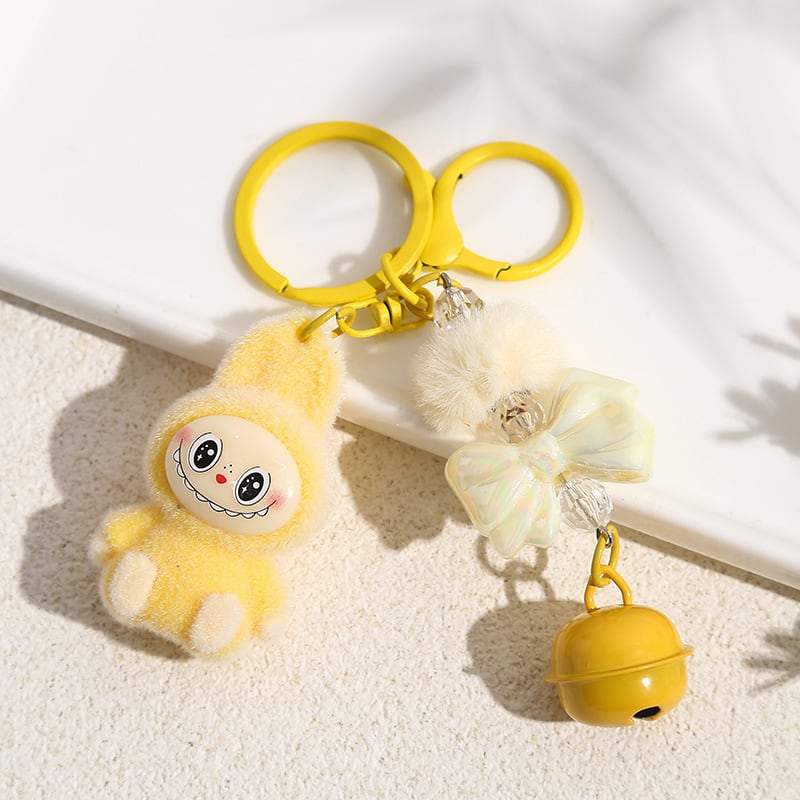 LABUBU ラブブ キーホルダー フロッキー素材が可愛い! リボンポンポン付きバッグチャーム 6色から選べる♡ 友チョコ・彼チョコにも
