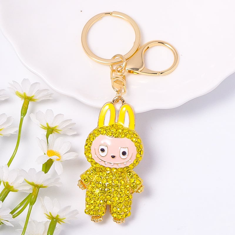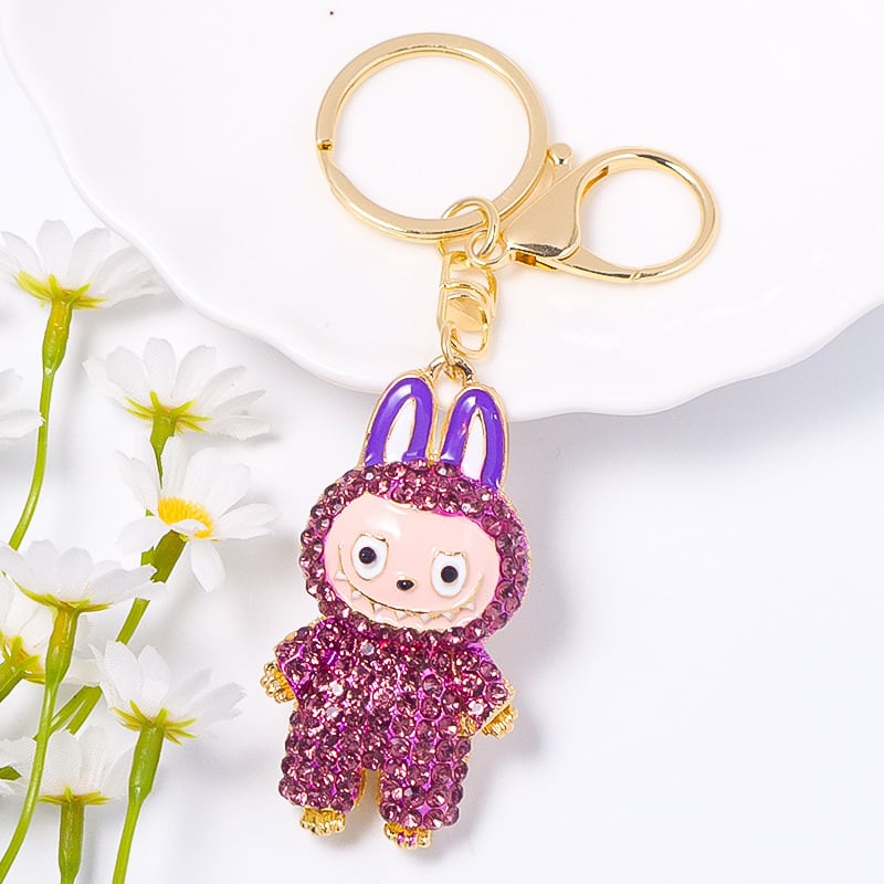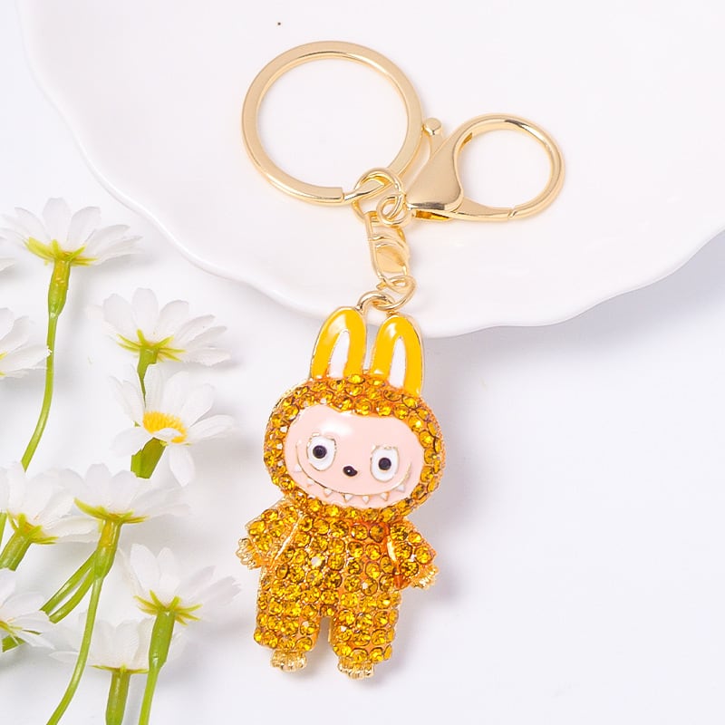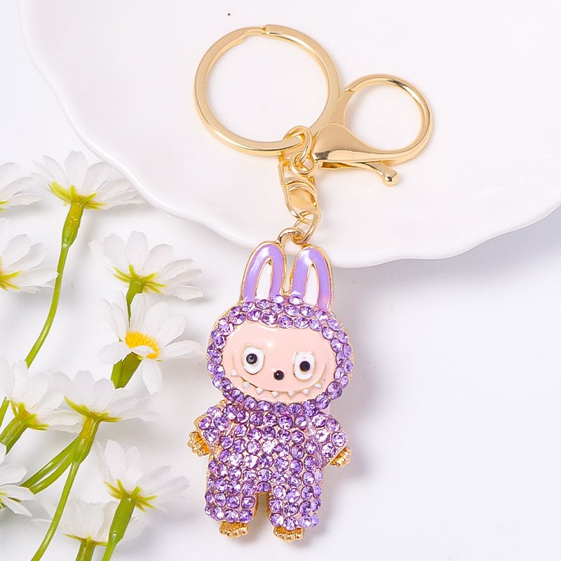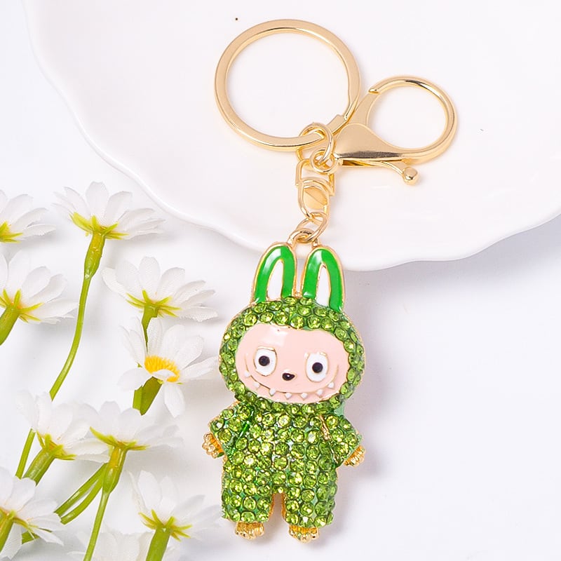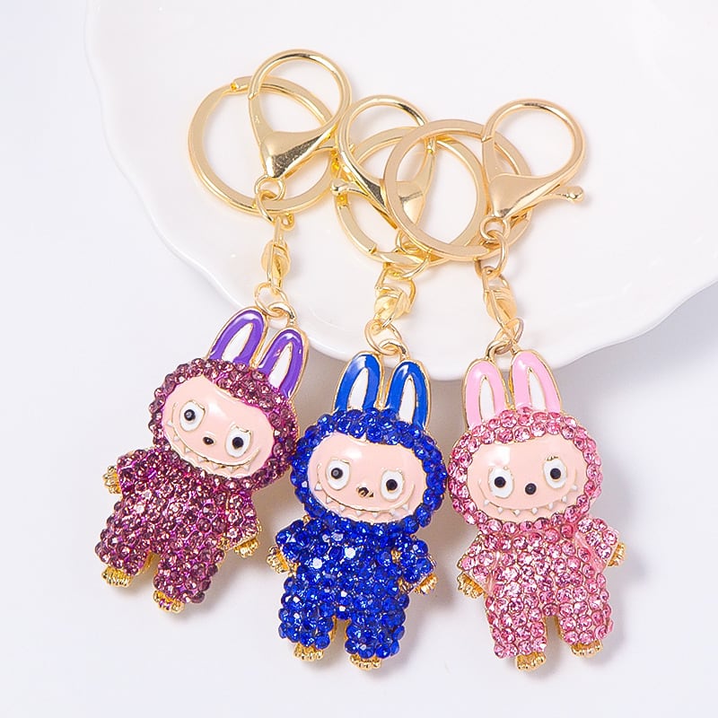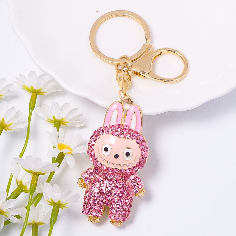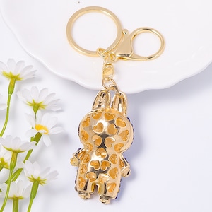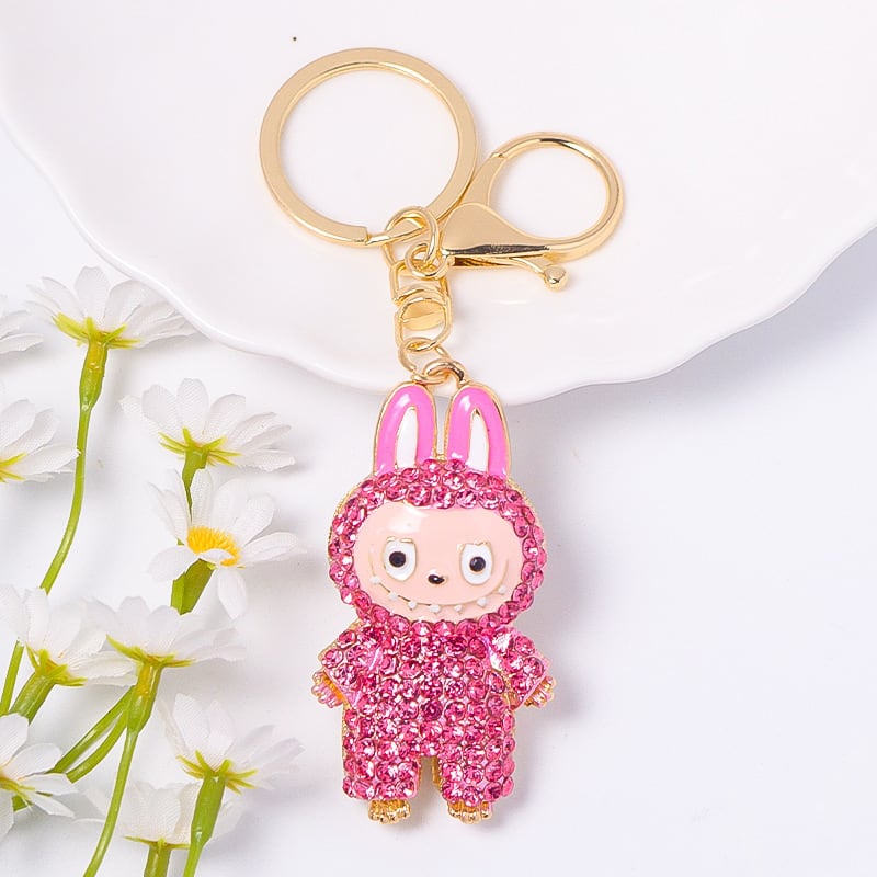 【商品名】合金×フルストーン 裏ハートくり抜きデザイン LABUBU キーホルダー
