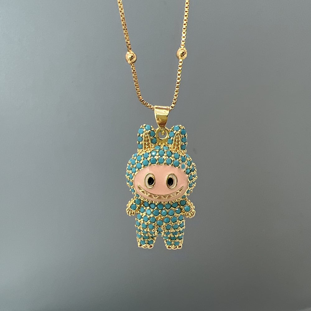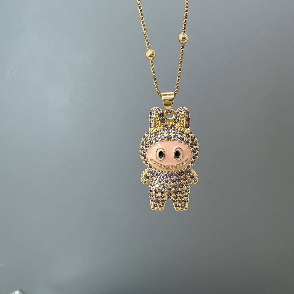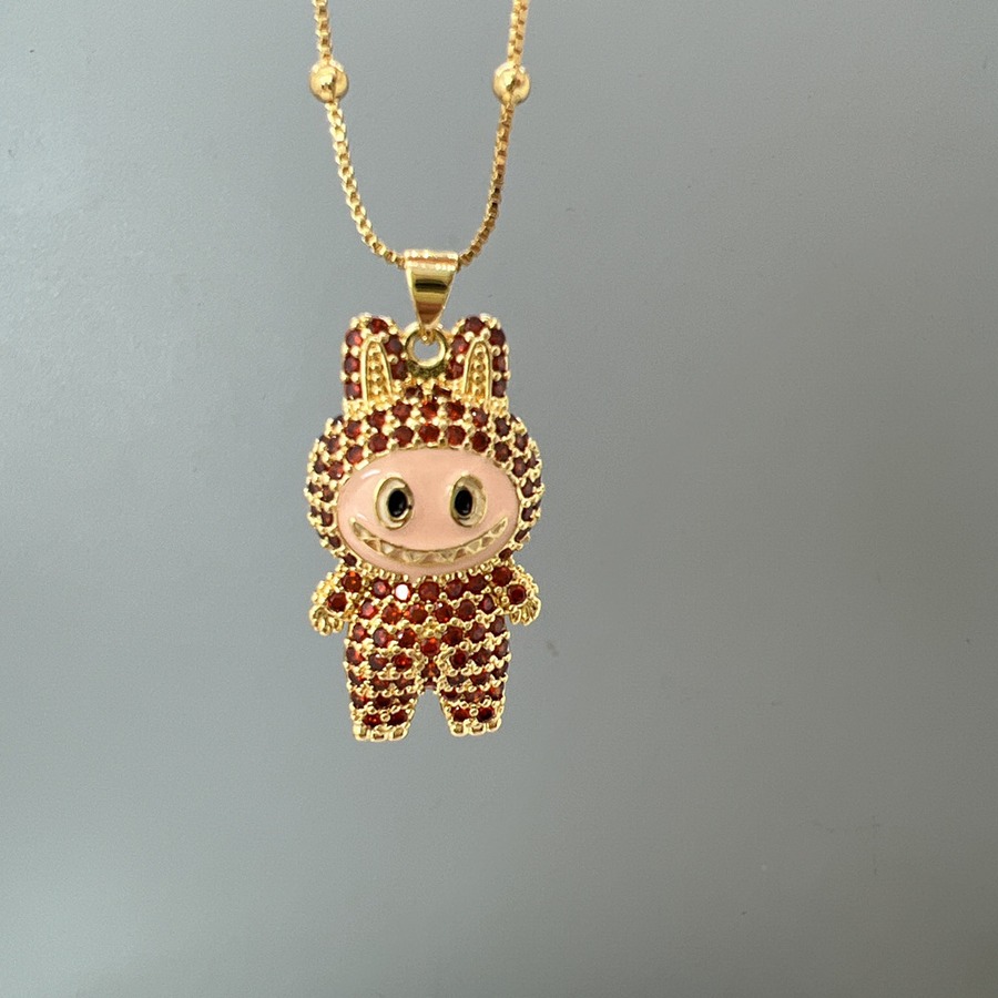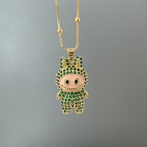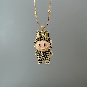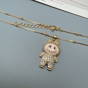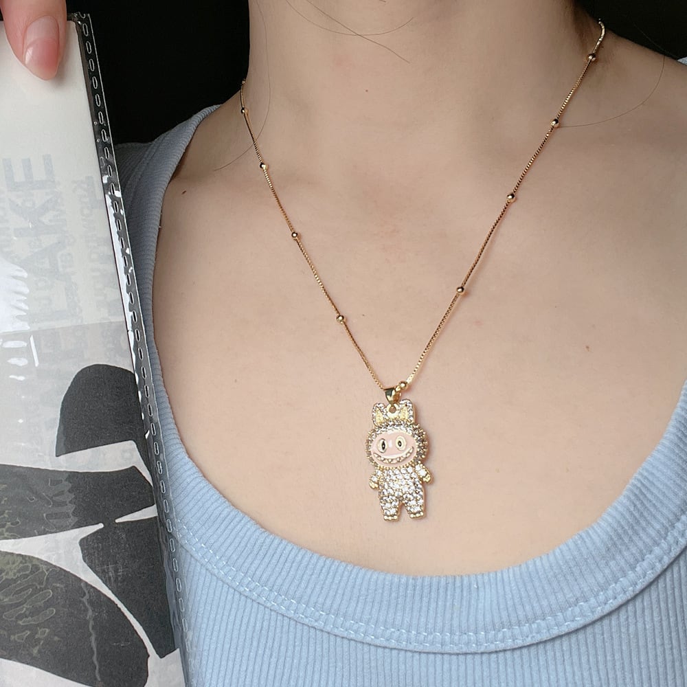 【ギフト包装可】LABUBU ラブブ ペンダントネックレス♪ キュートなデザイン ジルコニアがキラキラ 6色展開 サイズ調節可能 ネックレス ジルコニアが上品に輝く 5色展開 友チョコ・プチギフトにも