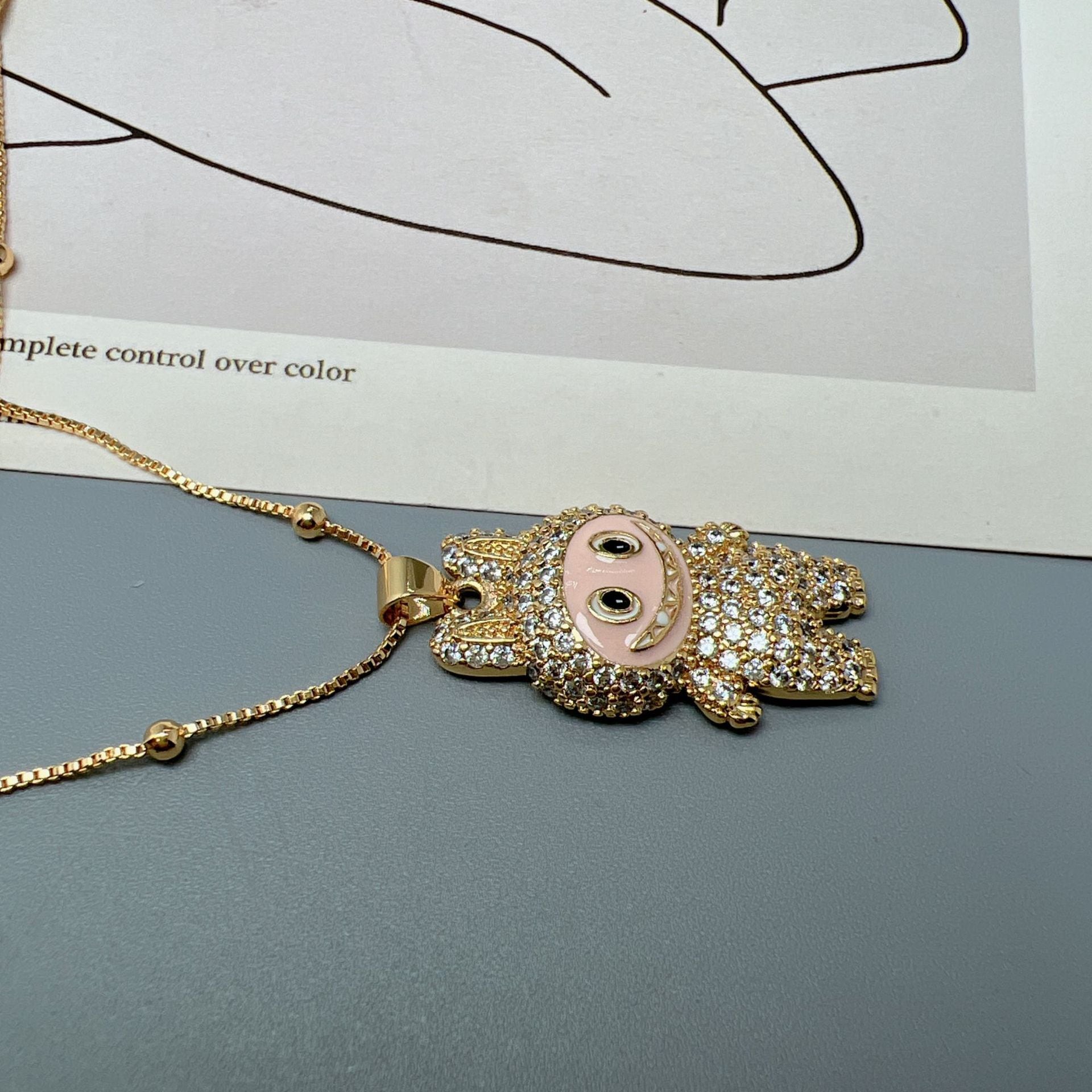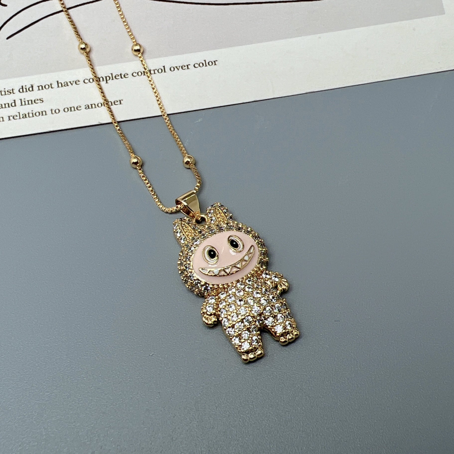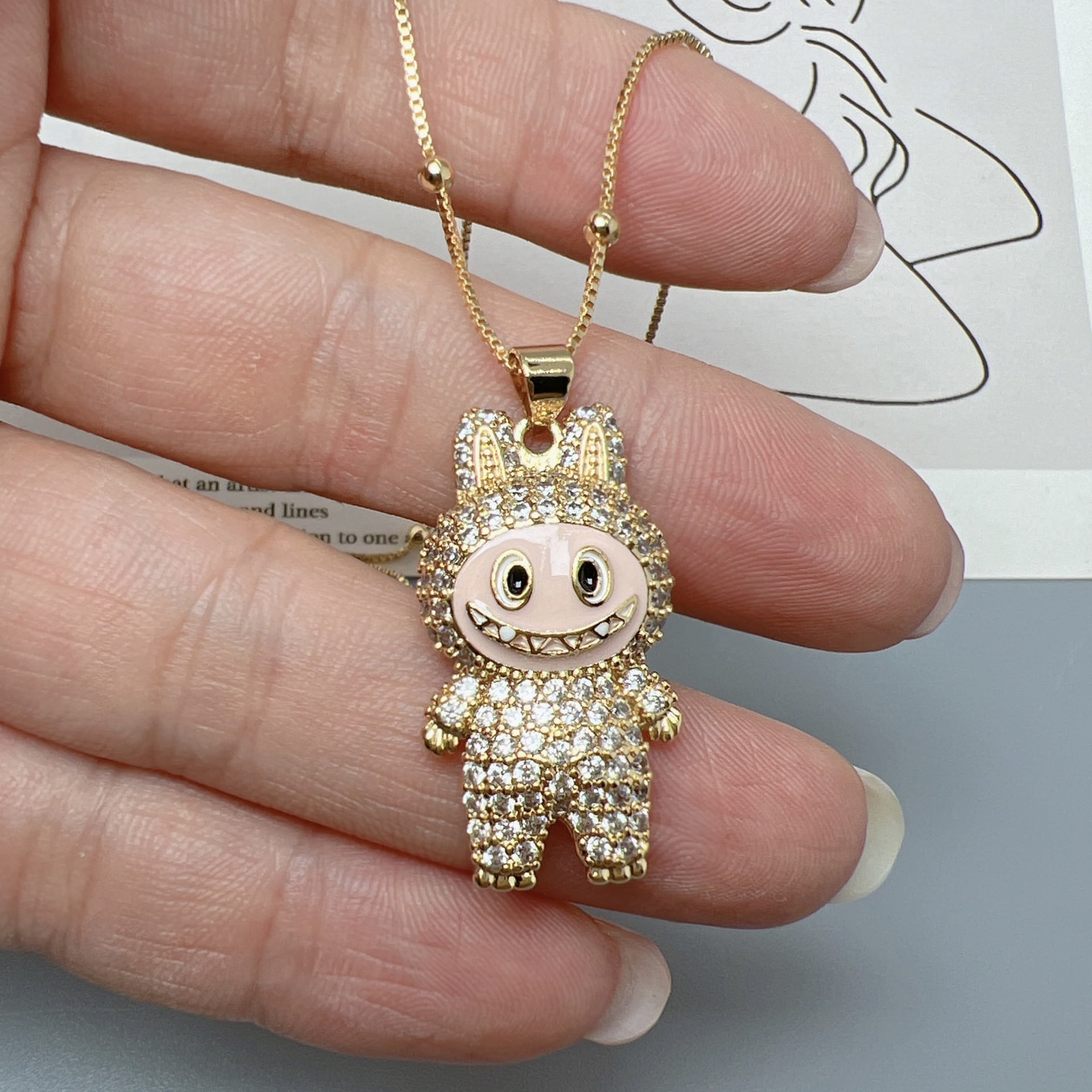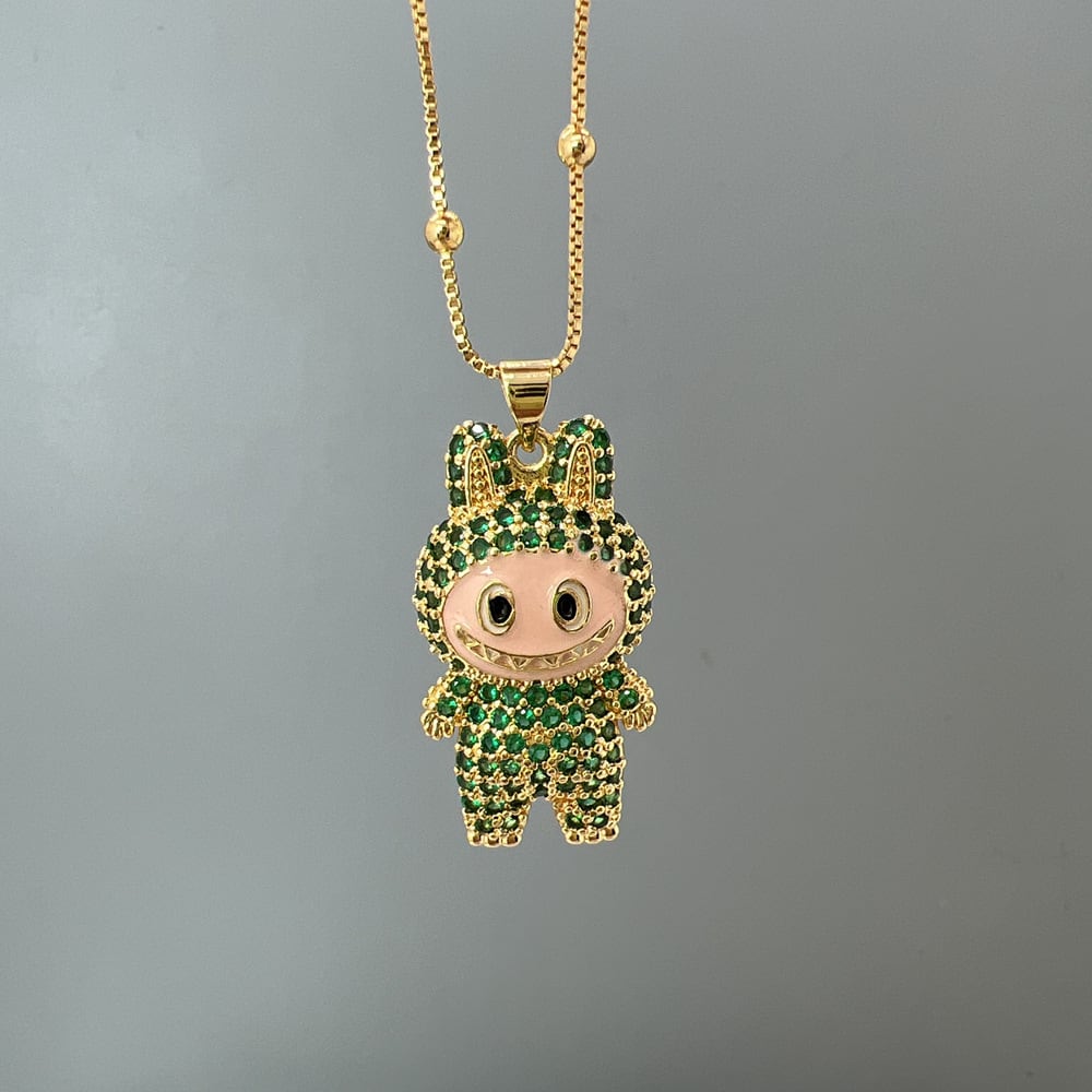 【ギフト包装可】LABUBU ラブブ ペンダントネックレス♪ キュートなデザイン ジルコニアがキラキラ 6色展開 サイズ調節可能 ネックレス ジルコニアが上品に輝く 5色展開 友チョコ・プチギフトにも