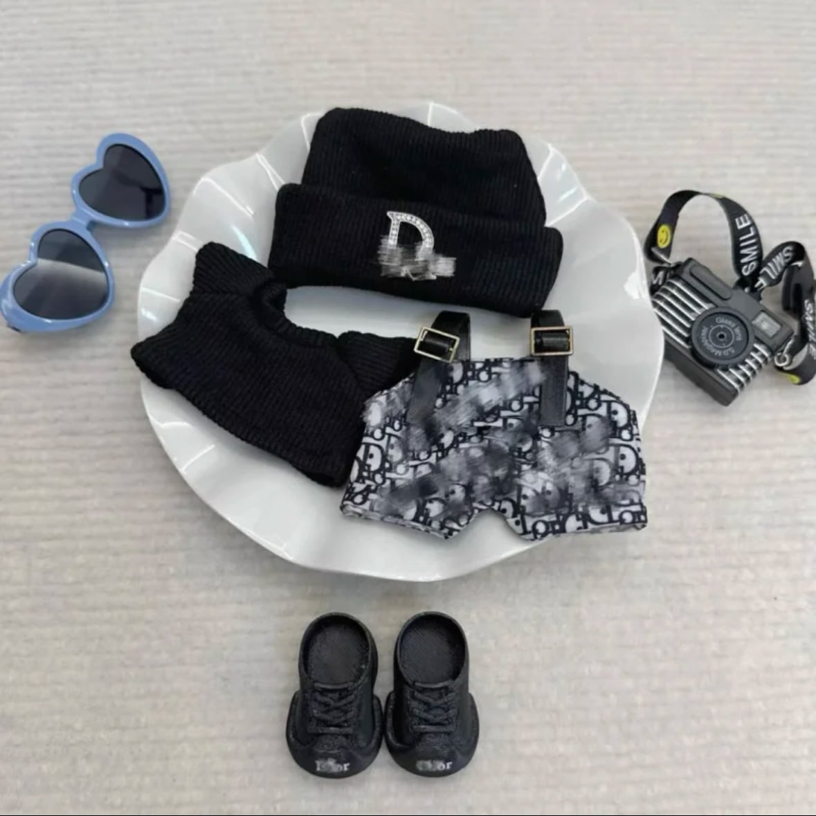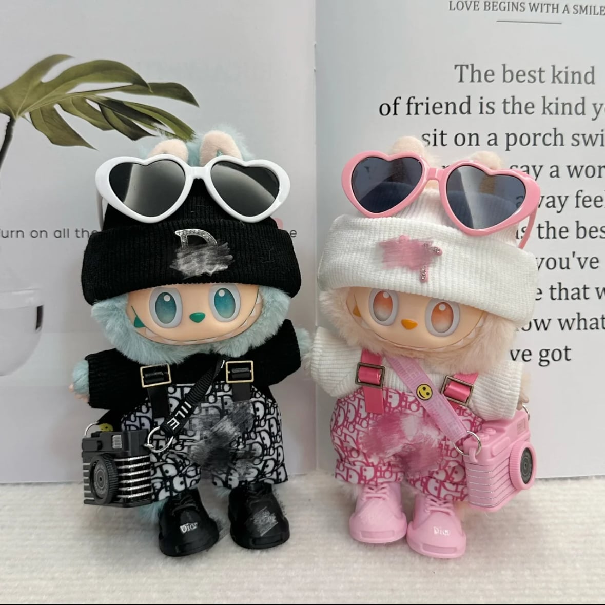 LABUBU ハートメガネでさらに可愛く♪ぴったり♡17cmラブブ用 おしゃれ6点セット ピンク/ブラック カメラ&靴付き
