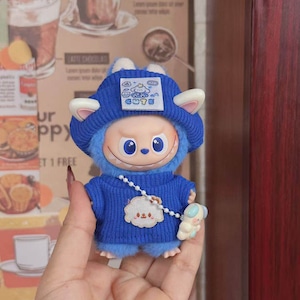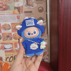 萌え萌え!10cm Labubu 4.0 専用 可愛い ニットブルーコーデ 3点セット キュート ハイクオリティ