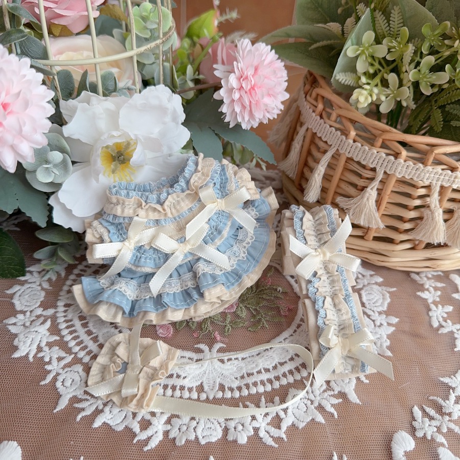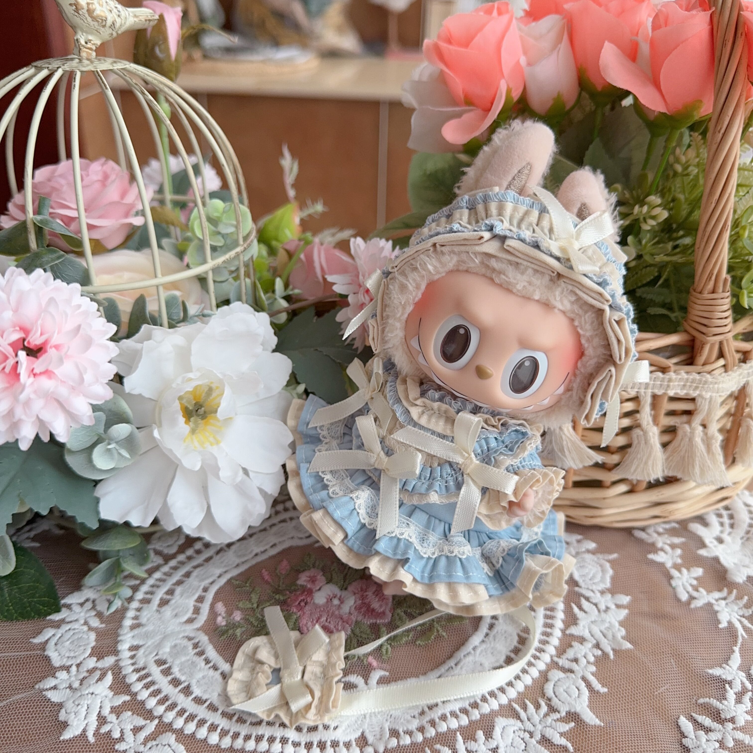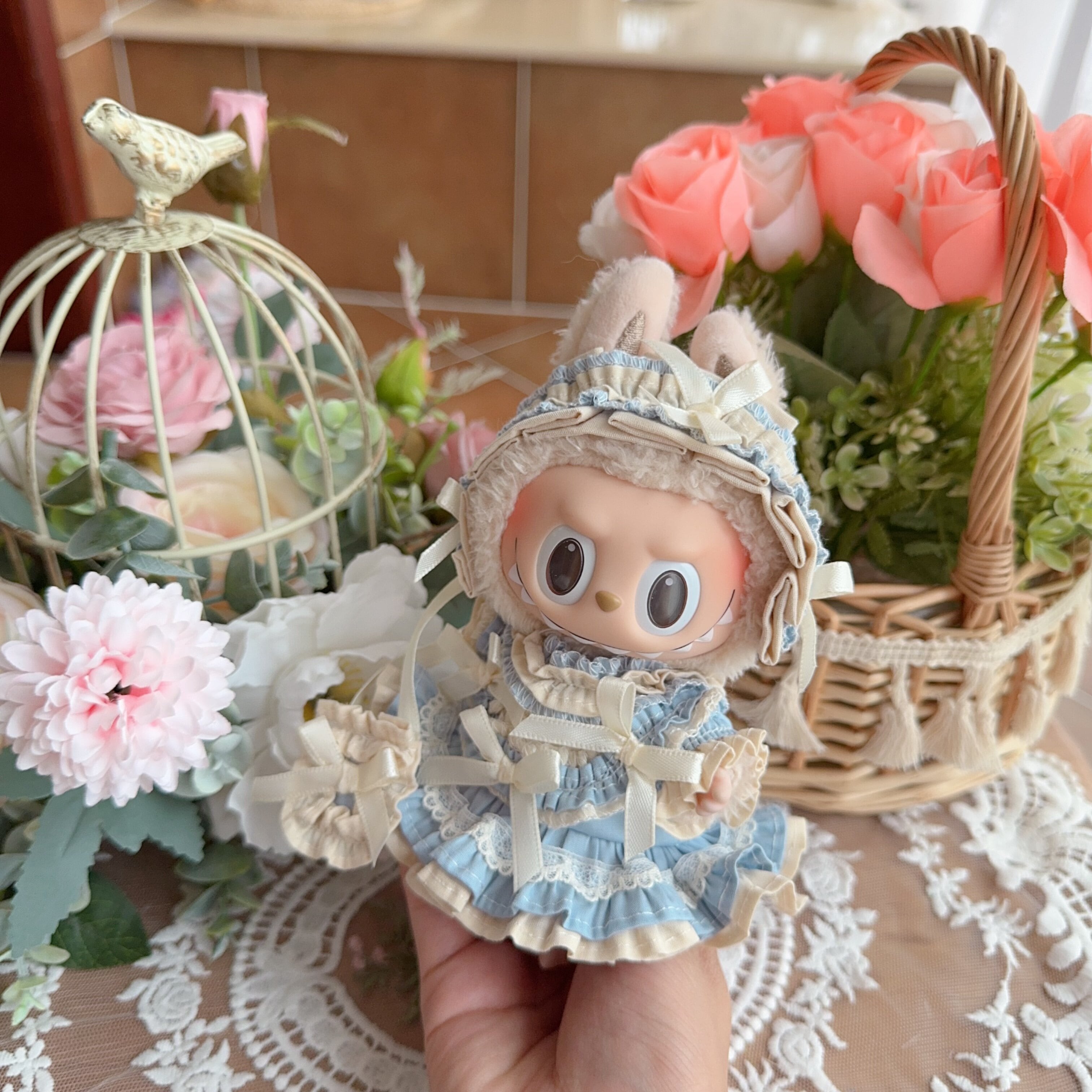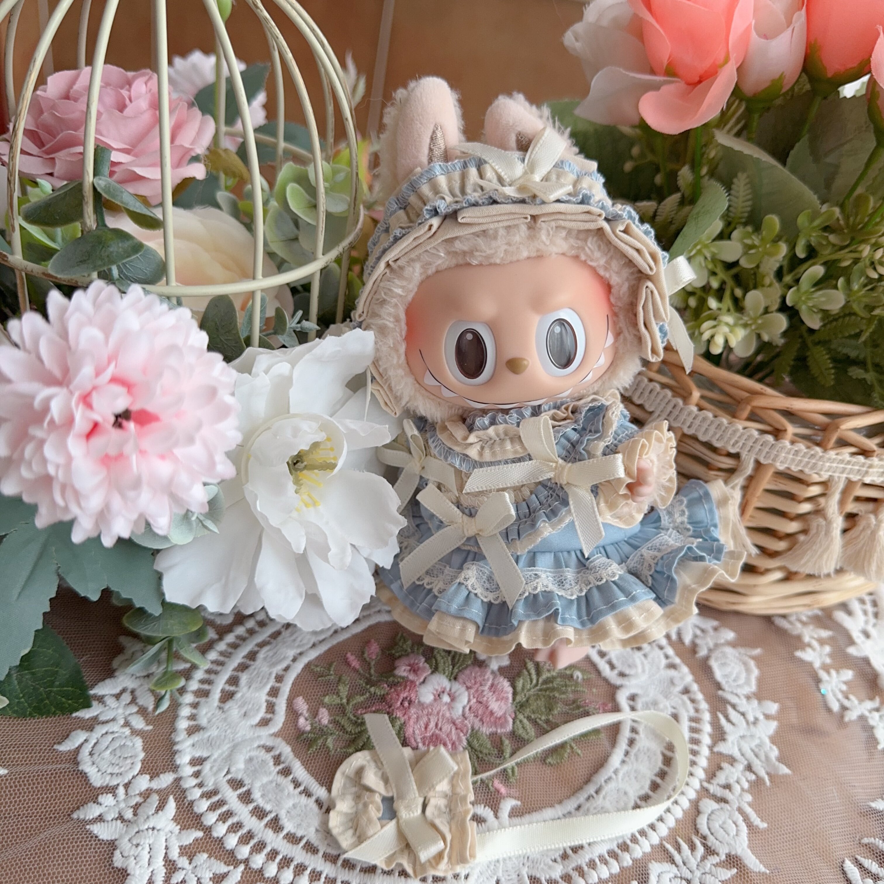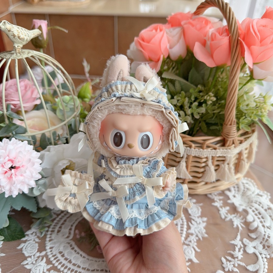 可愛い&上品 特別な一着!ハンドメイド 17cm Labubu 専用 ブルーお嬢様ドレス プリンセスコーデ