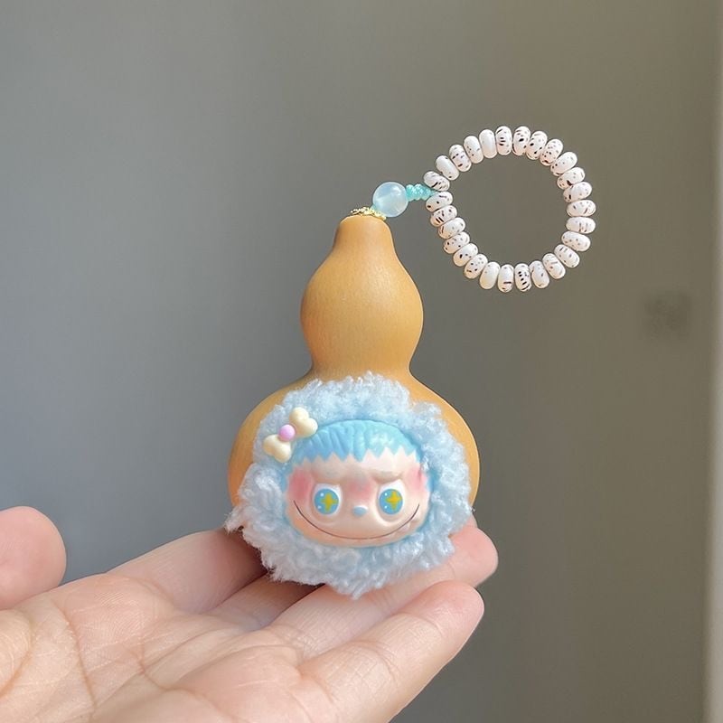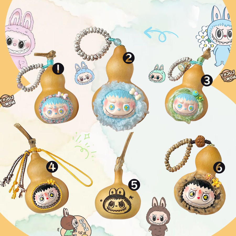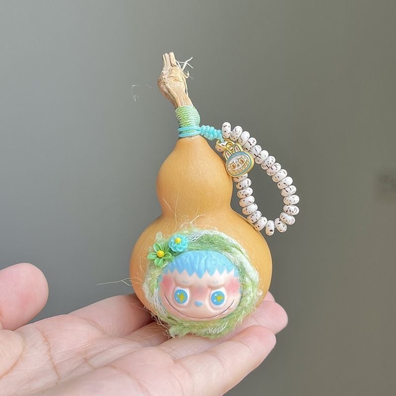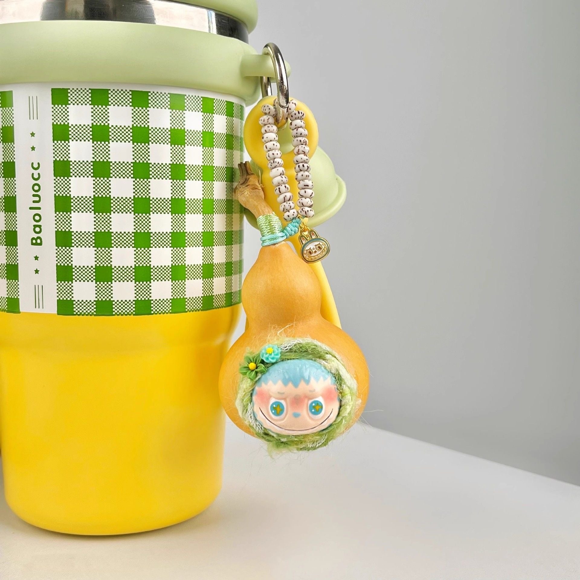 【商品名】ラブブと楽しむ、手作りの小さな瓢箪カーアクセサリー。日々の運転にそっと彩りを。POP MARTグッズ × 手捻りひょうたん