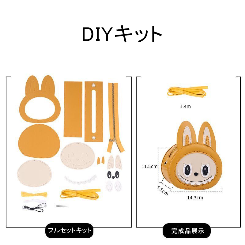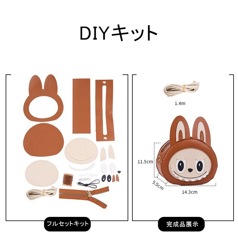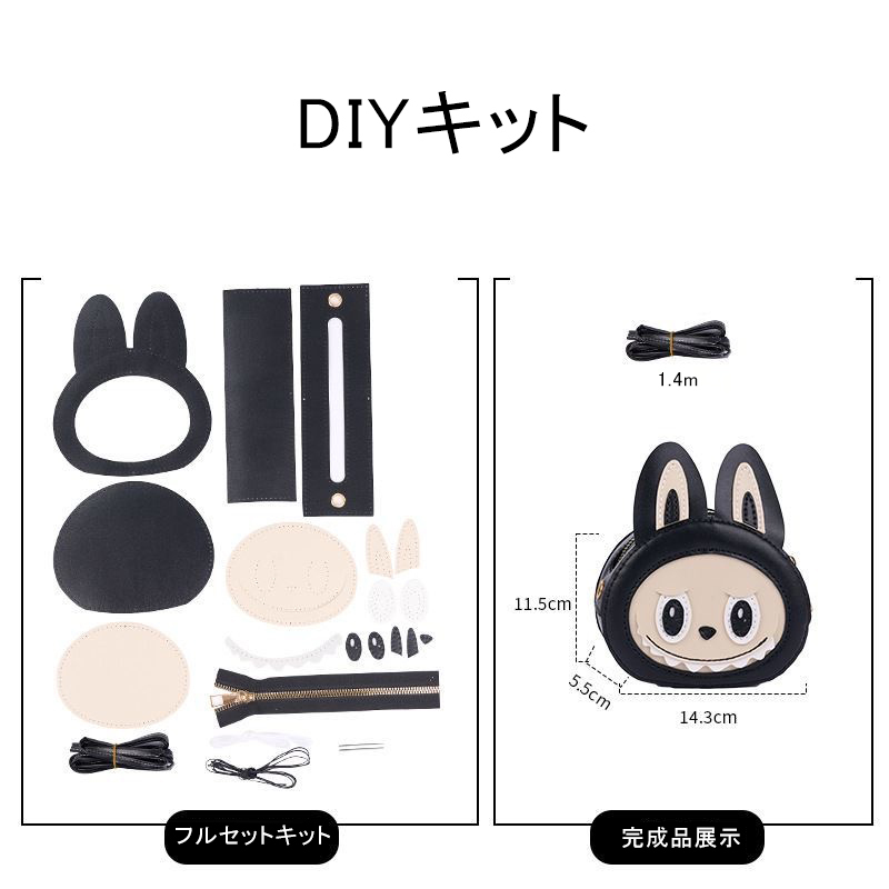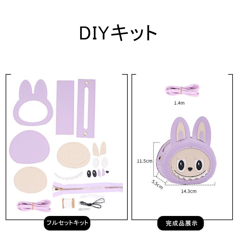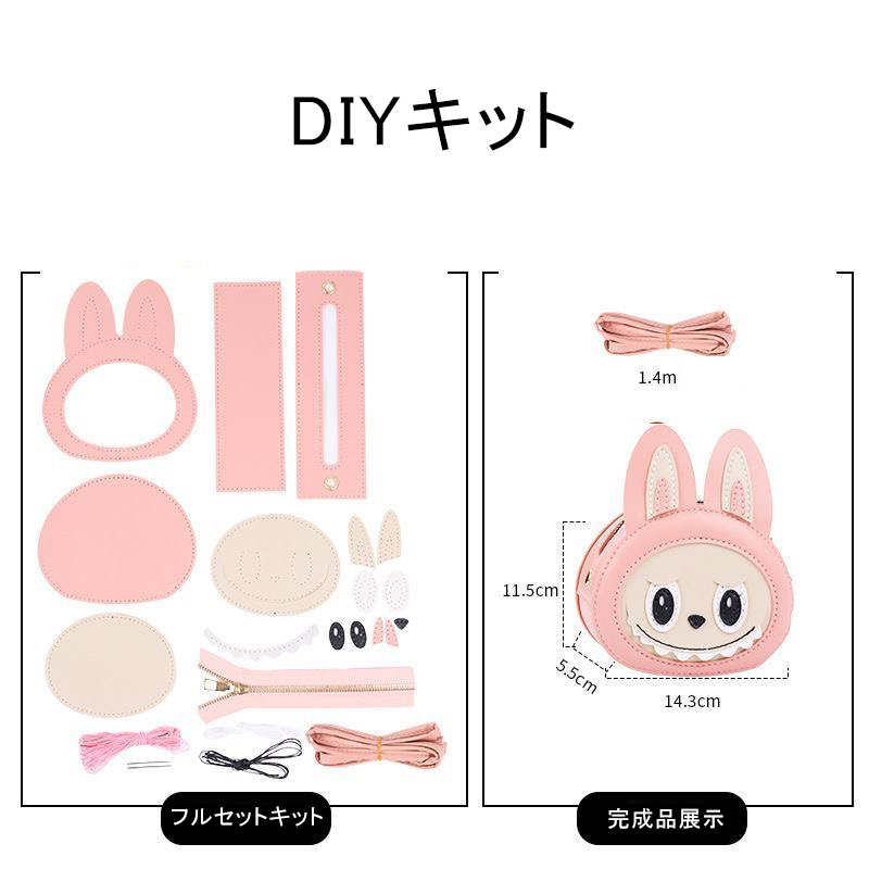 初心者向け!labubu ラブブ 革製 7色展開 ヘッドDIYバッグキット ハンドメイド 手作り体験 友達・彼女へのサプライズギフトに最適
