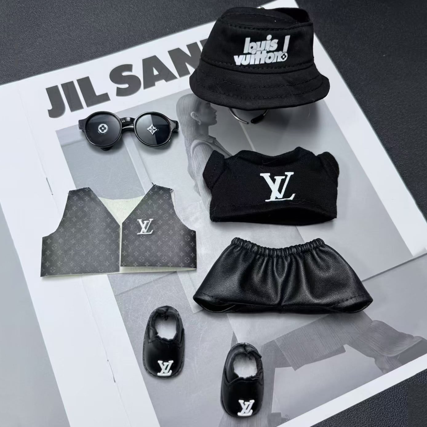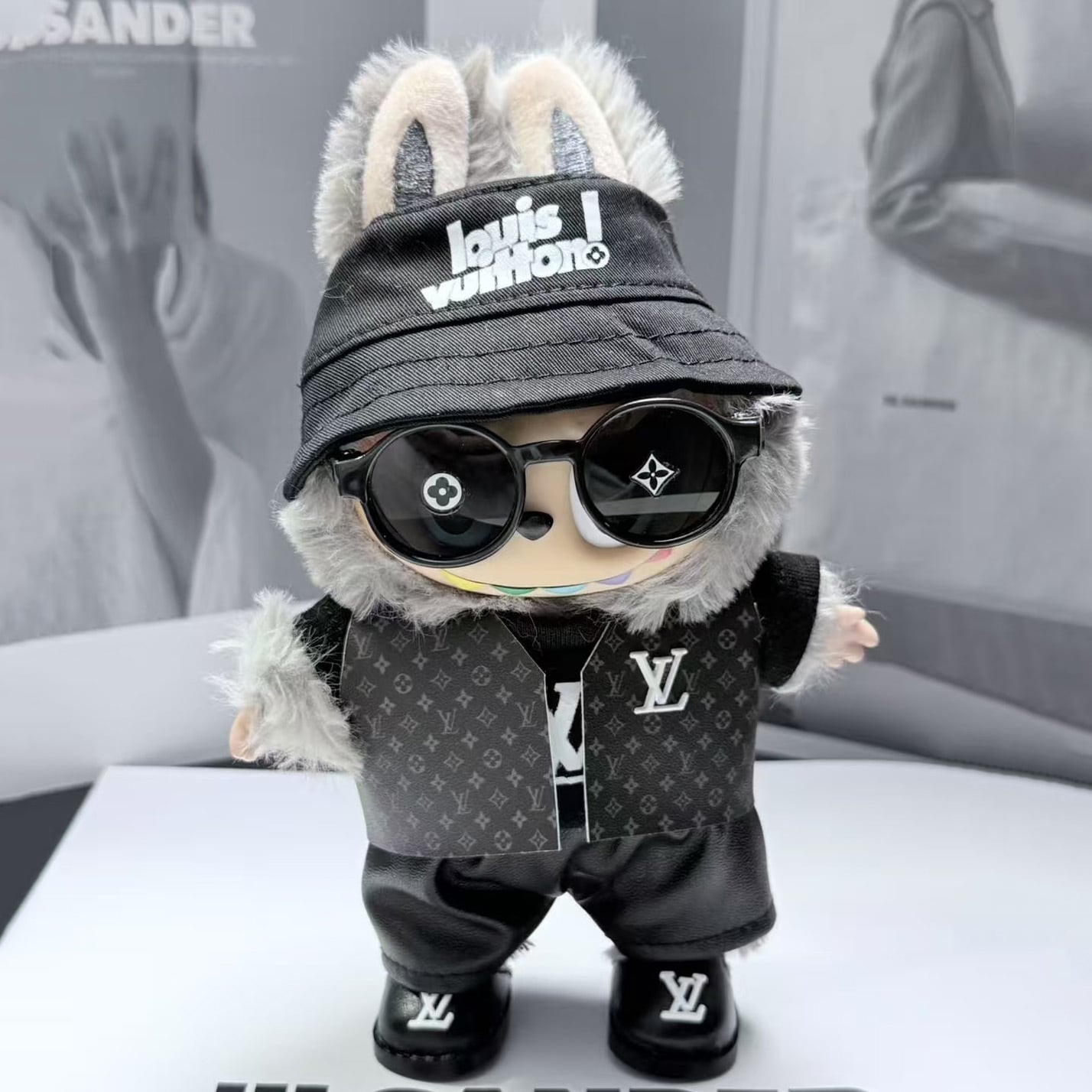【2026ファッションシリーズ】少量製作♡ ブラックレザーが引き締める、カッコ可愛いオールブラックコーデ!ラブブ Labubu 17cm用 ブラックレザーセット カッコ可愛い クール 着せ替えドール服