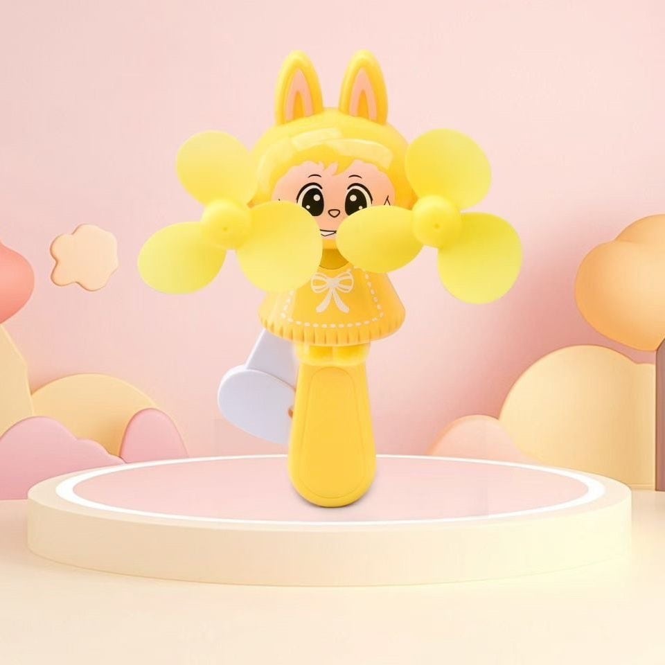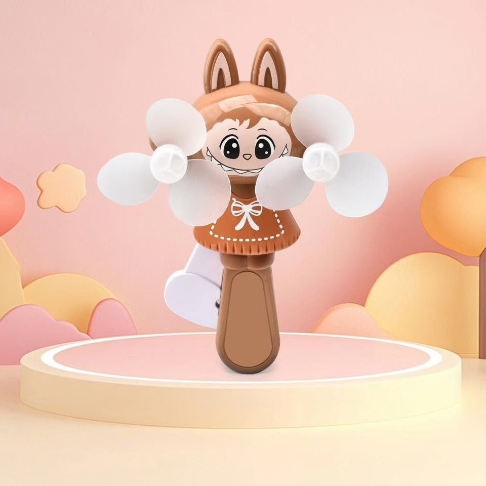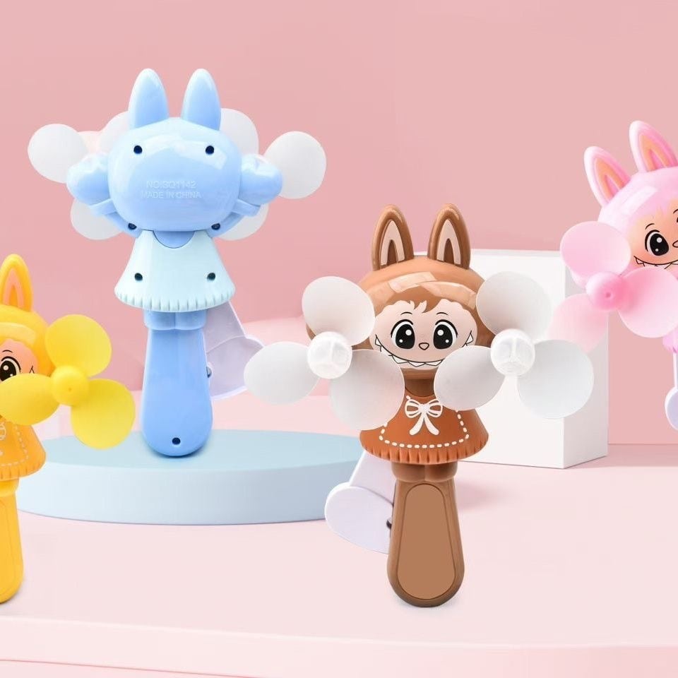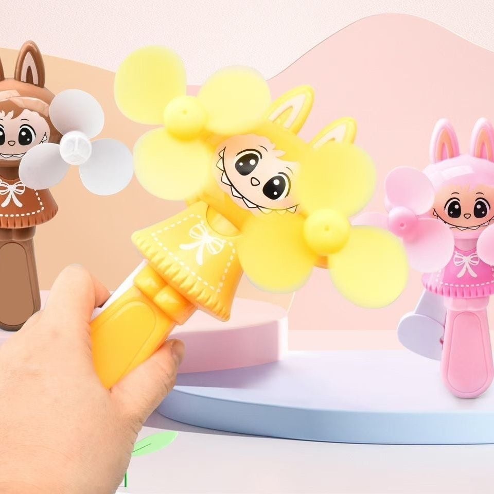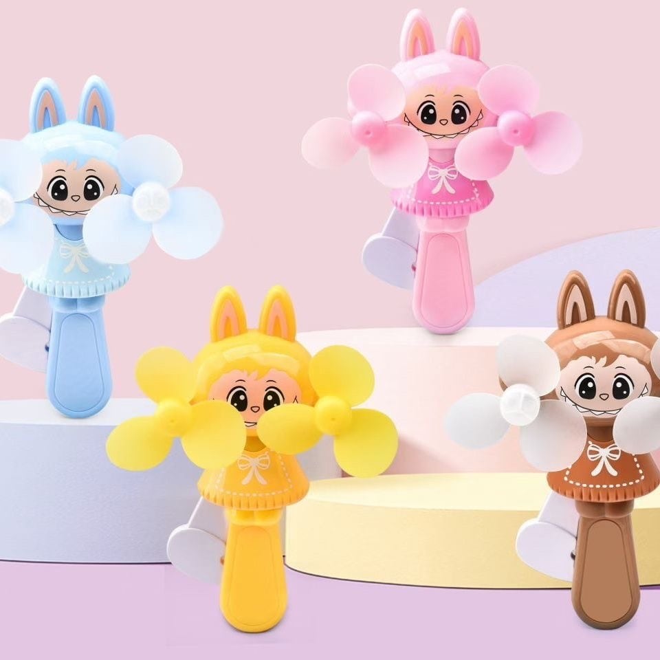 LABUBU ラブブ ハンドプレスファン♡ミニサイズ 手動双葉扇 携帯便利 4色カラー展開 かわいいキャラクターファン 電池いらず 通園・通学・プレゼントに