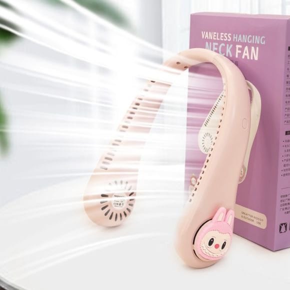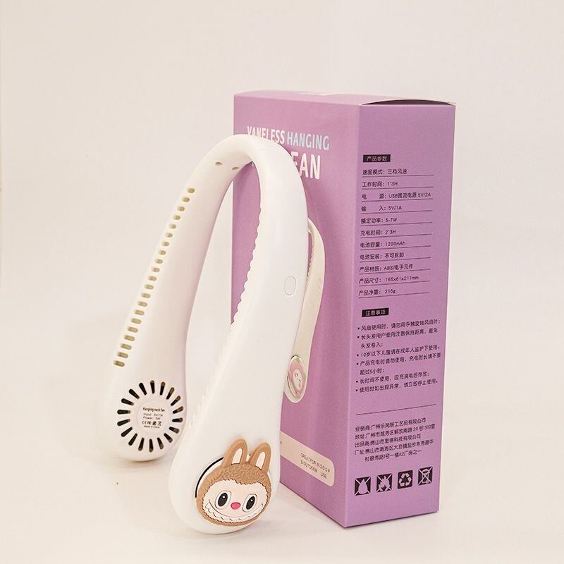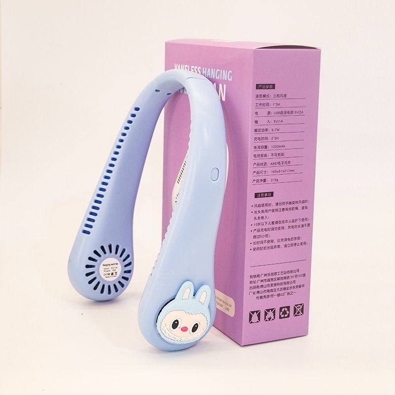 涼しい ラブブ ネックファン USB充電式 首かけファン 携帯便利 アウトドア対応 4色展開 屋外・通勤・スポーツ観戦に最適 かわいいラブブデザイン