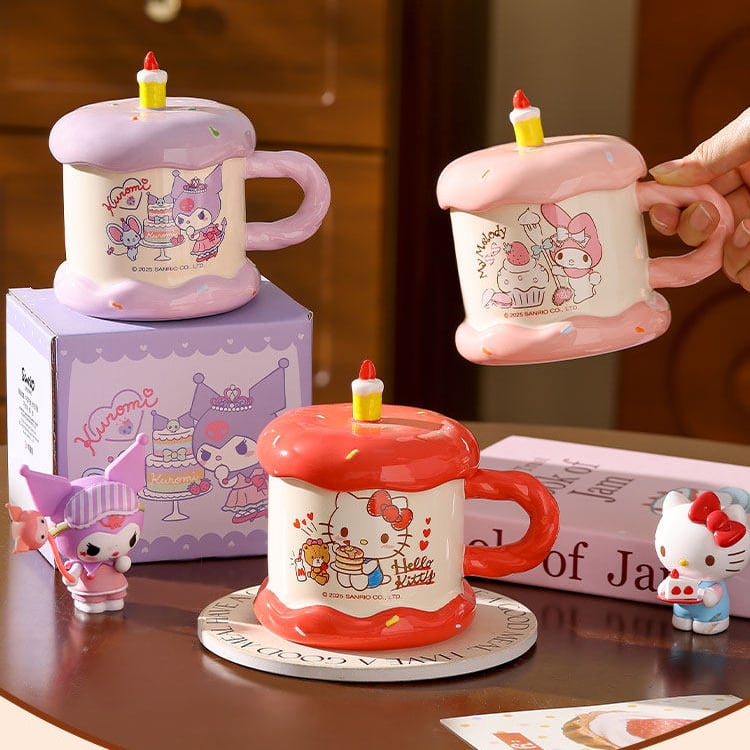 【ケース+手提げバッグ+スプーン付き】380ml 可愛い マグカップ ケーキシリーズ ハローキティ/マイメロディ/クロミ/シナモロール風 高品質 陶器 かわいい ギフトに最適