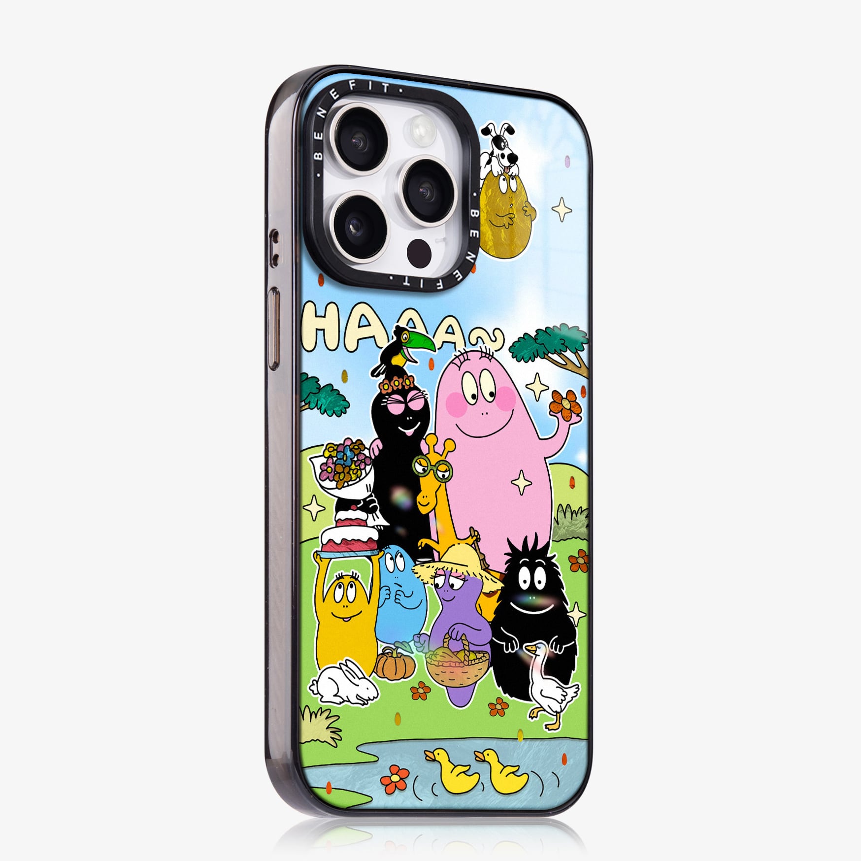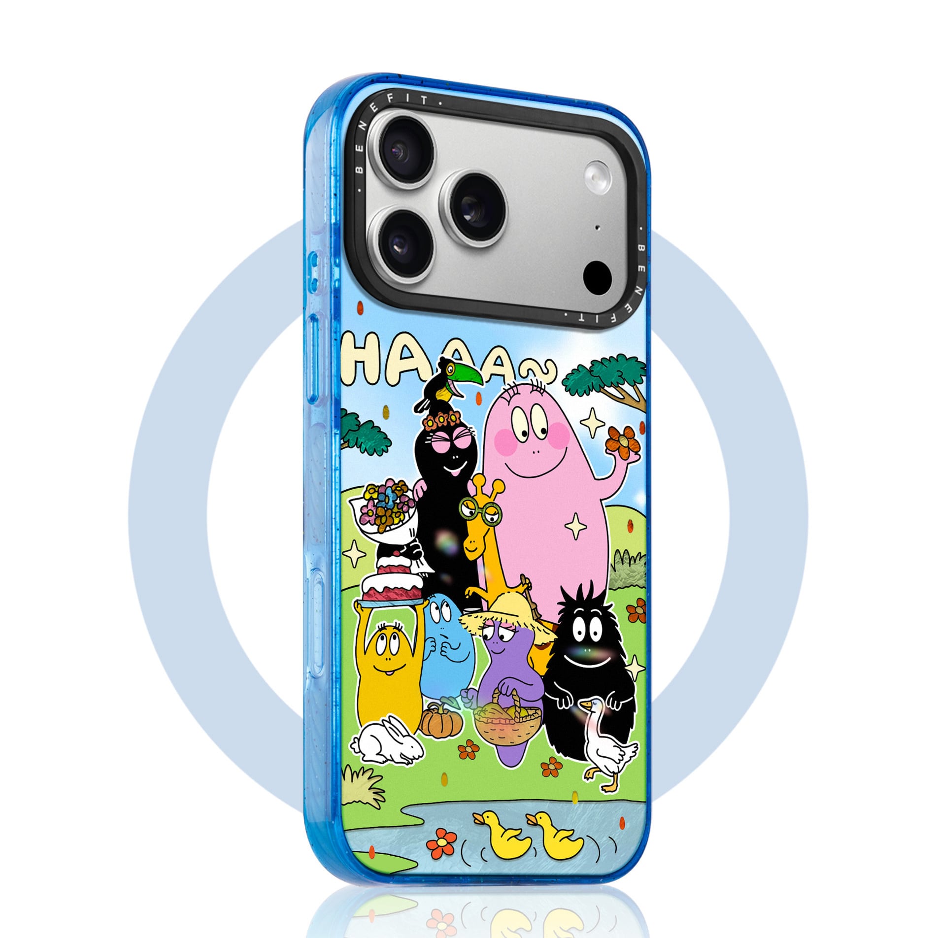【商品名】Barbapapa風 磁気スマホケース かわいいキャラクター iPhone17 Pro Max- iPhone12 対応 氷河パターン 耐衝撃 カラフルフレーム